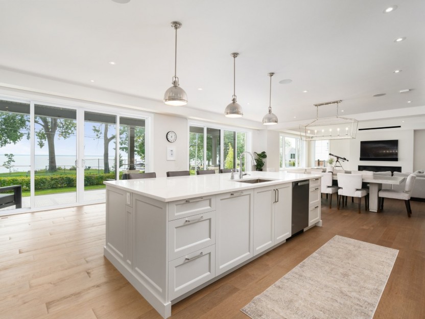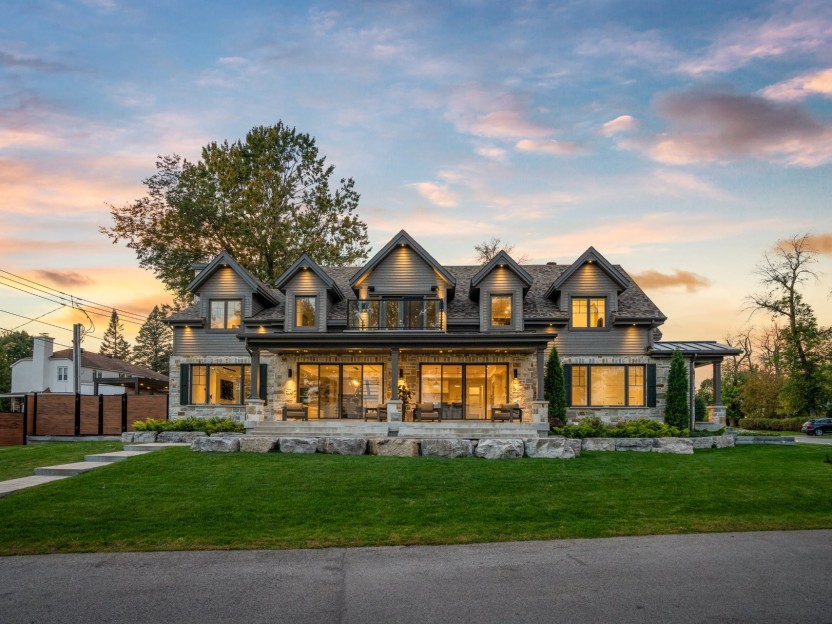 Experience unparalleled waterfront living on a private peninsula with 360-degree views of Lac St-Louis, gated entrance, and a stunning unist...