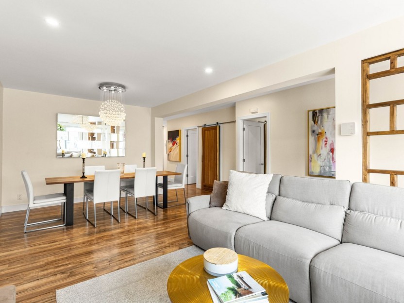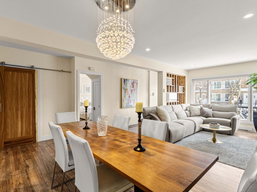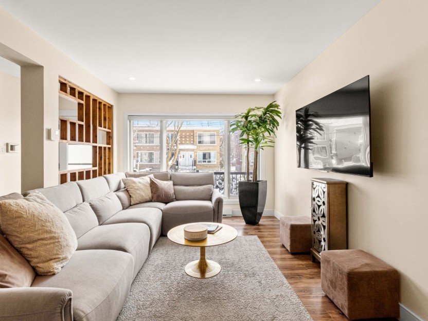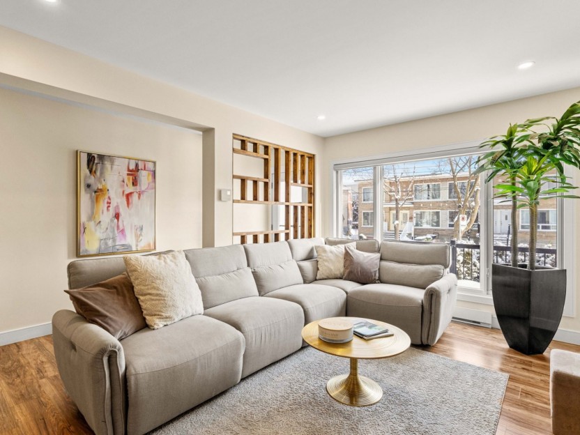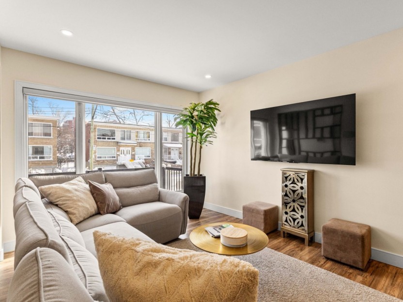Fully furnished 5½ corner unit in a triplex, steps from the REM in St-Laurent! This middle floor unit is fully renovated with top-quality fi...