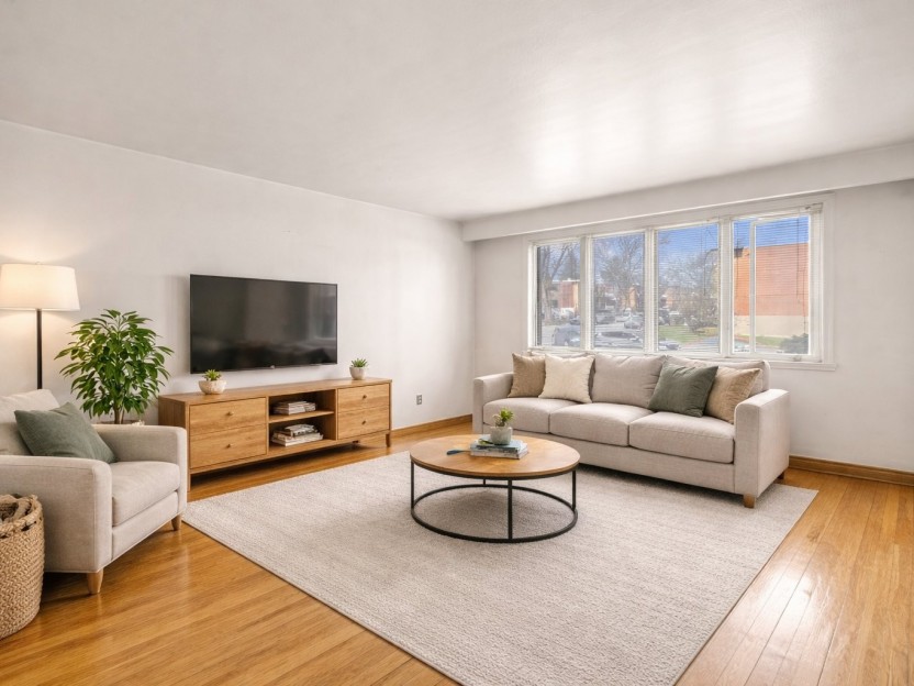 Fully furnished 5½ corner unit in a triplex, steps from the REM in St-Laurent! This middle floor unit is fully renovated with top-quality fi...