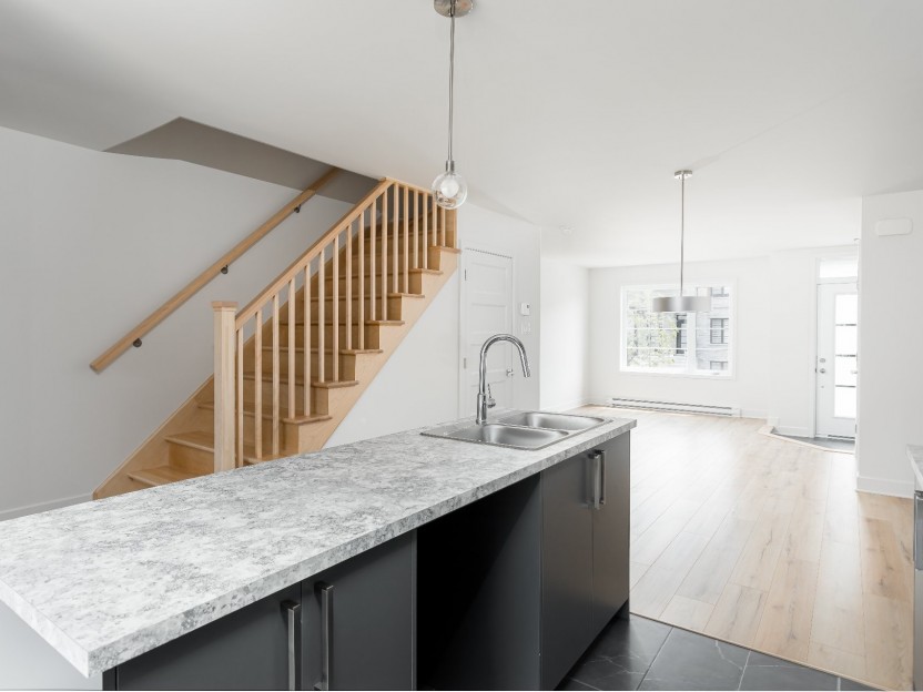 Modern townhouse located in the new project Axe.b by les Habitations Sylvain Ménard. This brand new 2022 build townhouse features an open co...