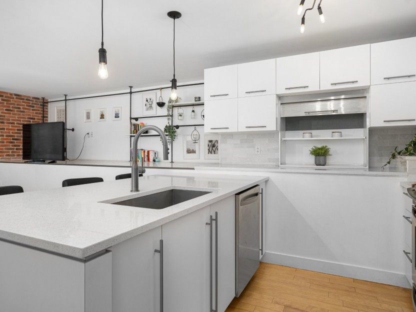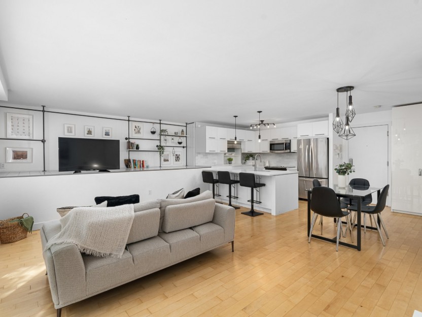Charmant condo de 2 chambres avec concept à aire ouverte, plafonds 9', grandes f...