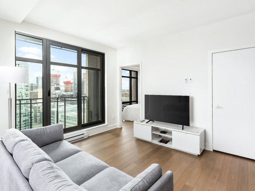 Unité de coin partiellement meublé moderne au YUL avec 2 chambres, 1 salle de ba...