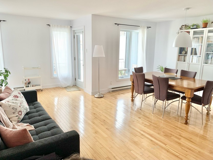 Bright two-bedroom condo in the St-Henri district! Spacious open concept with an...