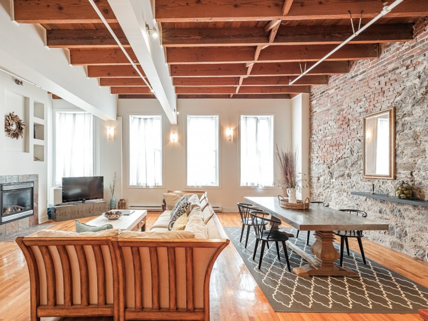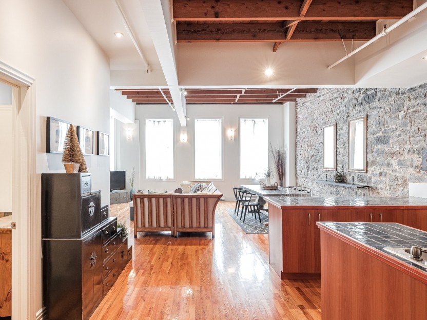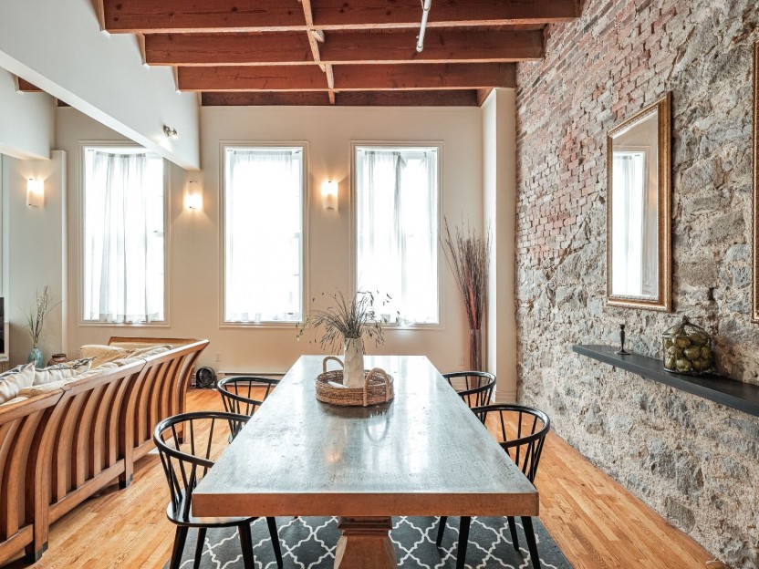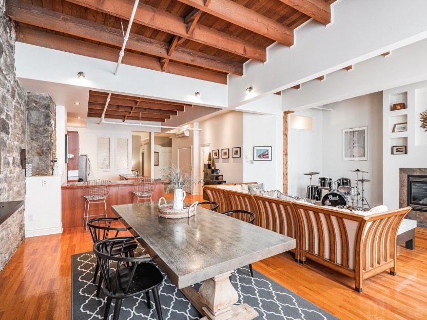 Iconic top-floor loft on Place d'Youville in Old Montreal. Soaring 15' ceilings,...
