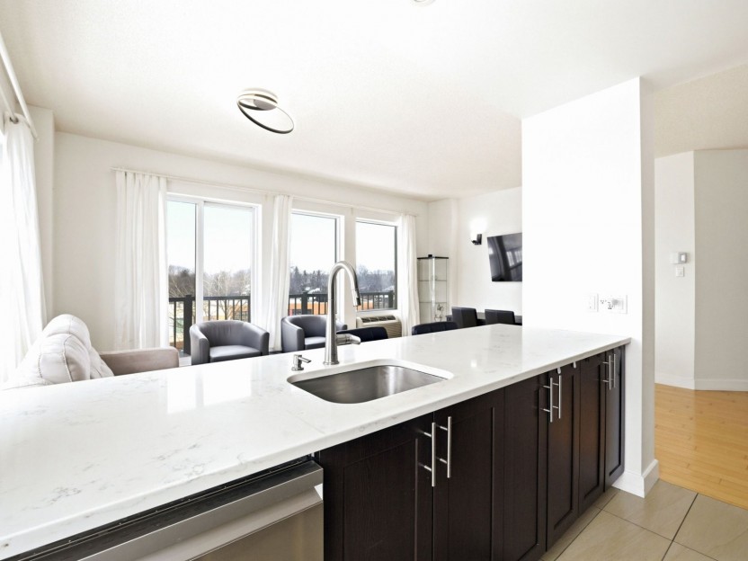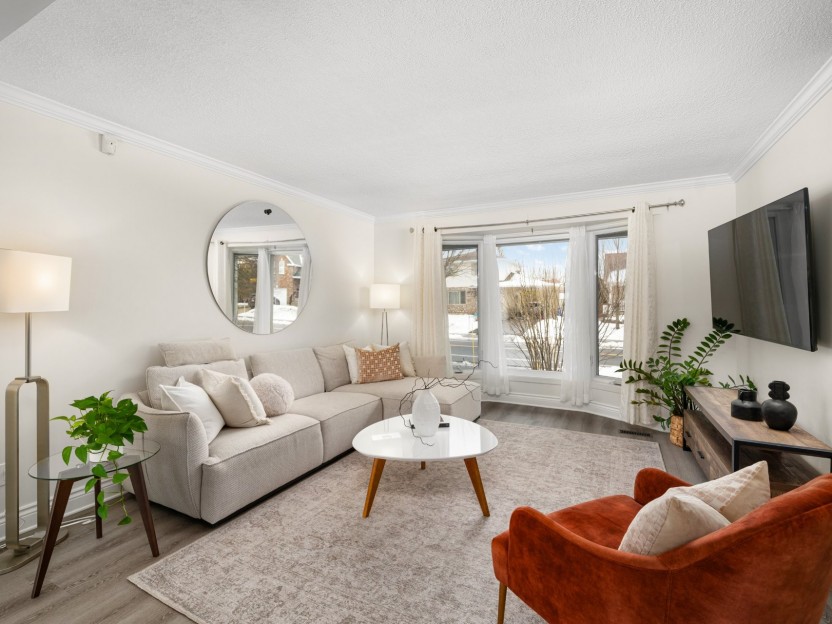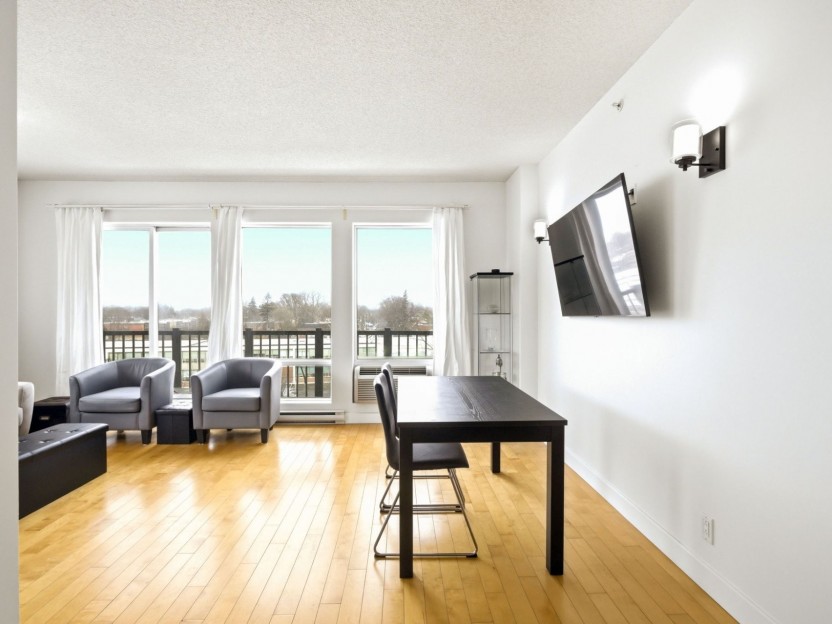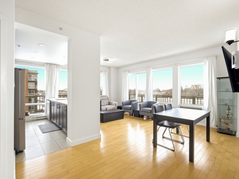 Bright corner unit in the heart of Dorval Village featuring 2 bedrooms and 2 bat...