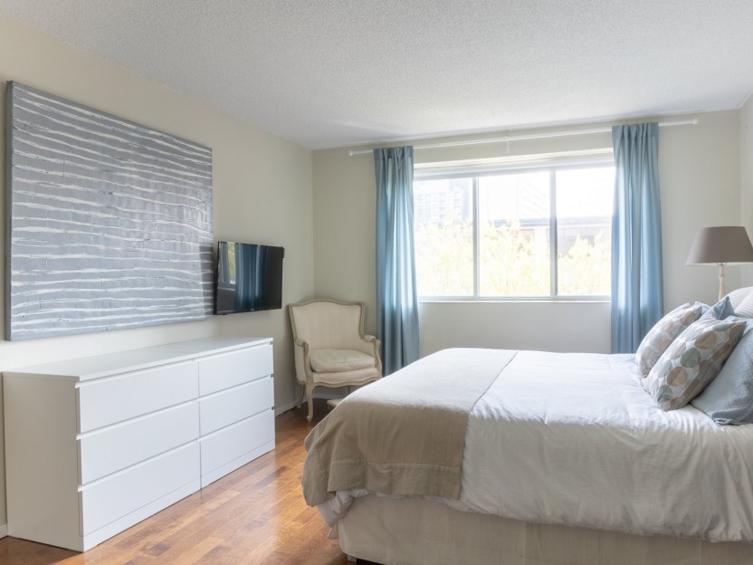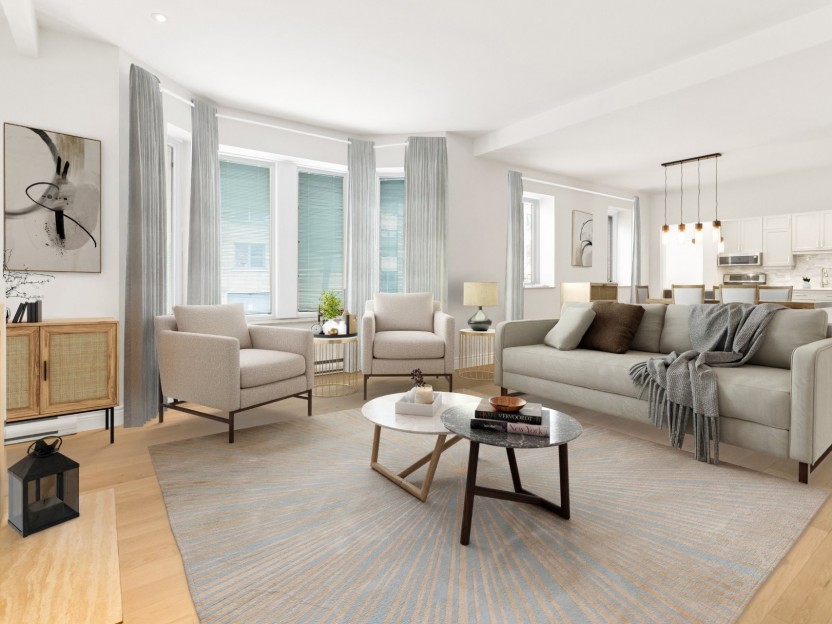 Bright condo for rent featuring 2 closed bedrooms, an open-concept living area,...
