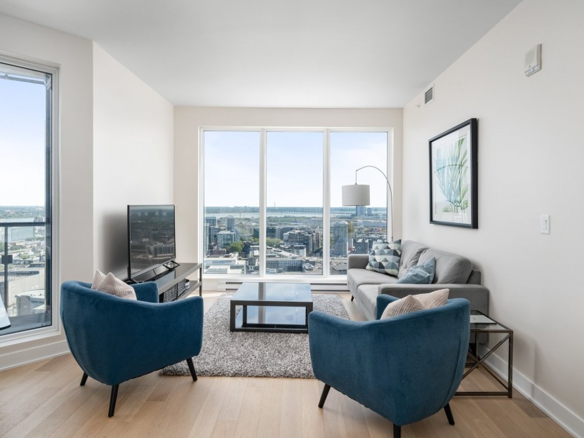 Corner unit on the 34th floor of the prestigious Tour des Canadiens, Phase 3. Th...
