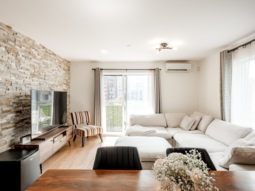 Magnificent condo located in the heart of downtown Laval, offering a warm and in...