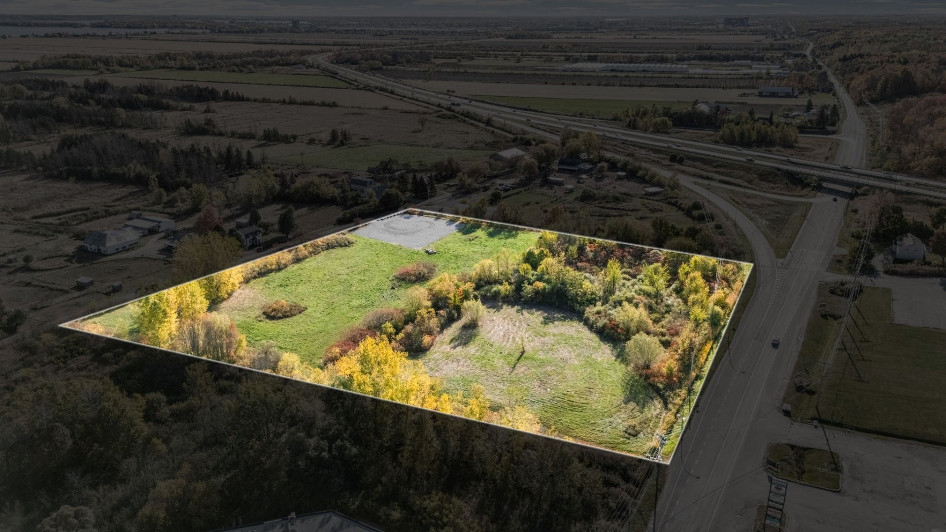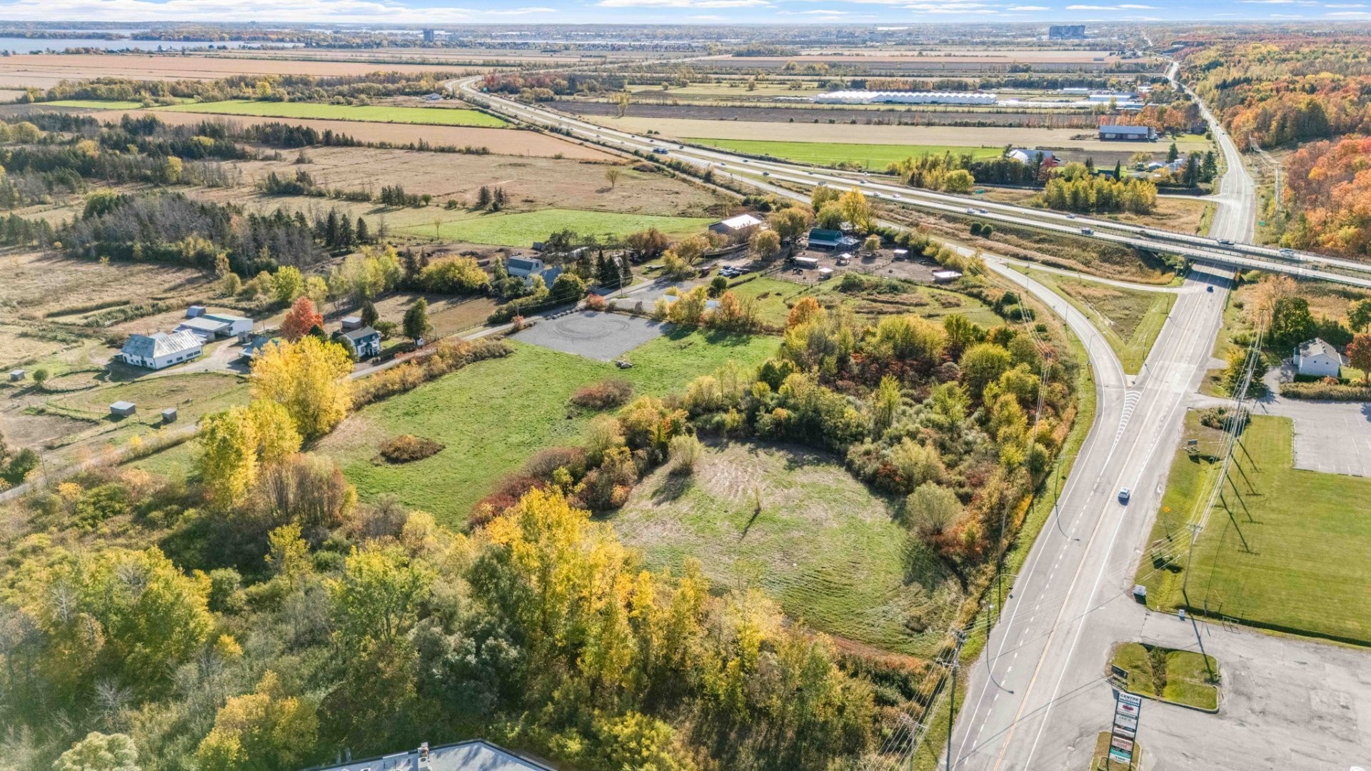 This expansive property, located at Exit 28 of Highway #40, is strategically positioned between Vaudreuil West, Saint-Lazare, and Hudson, offering easy access to key areas. With the new hospital set to open just 6 km away in 2026, this land is perfectly situated for growth and development.