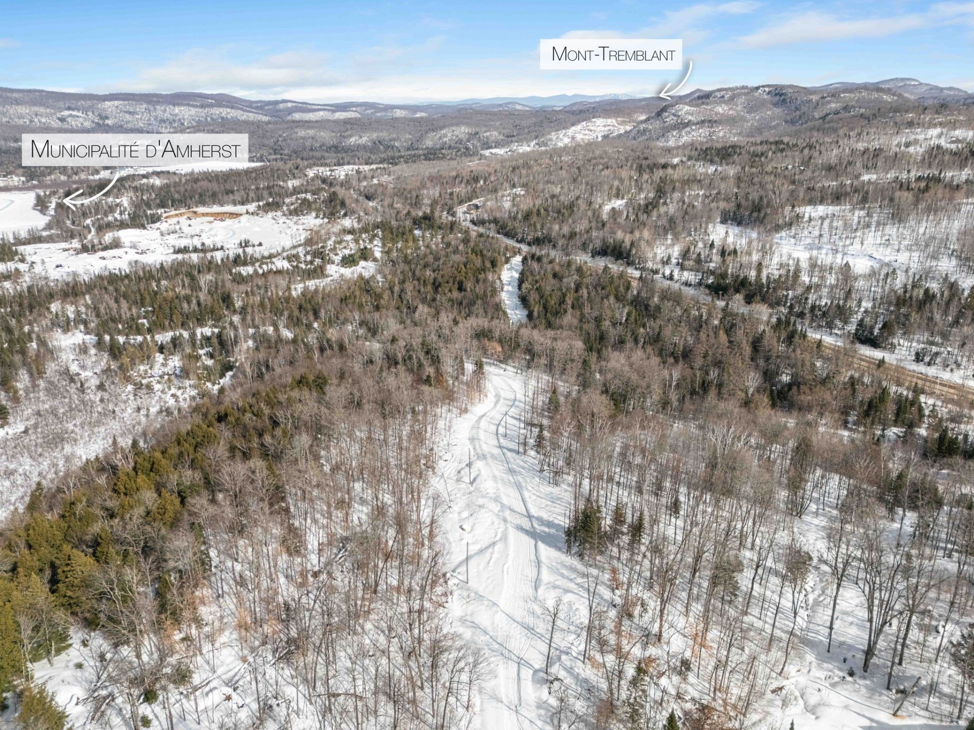 An exceptional lot of over 162,000 sq ft (more than three acres) located right in the sought-after municipality of Amherst. Nestled in a peaceful natural setting just minutes from Mont-Tremblant, this site offers the ideal setting to bring your real estate project to life. Zoned for short-term rentals, it offers remarkable investment potential. A rare opportunity on the market for lovers of nature, privacy, and unique projects.