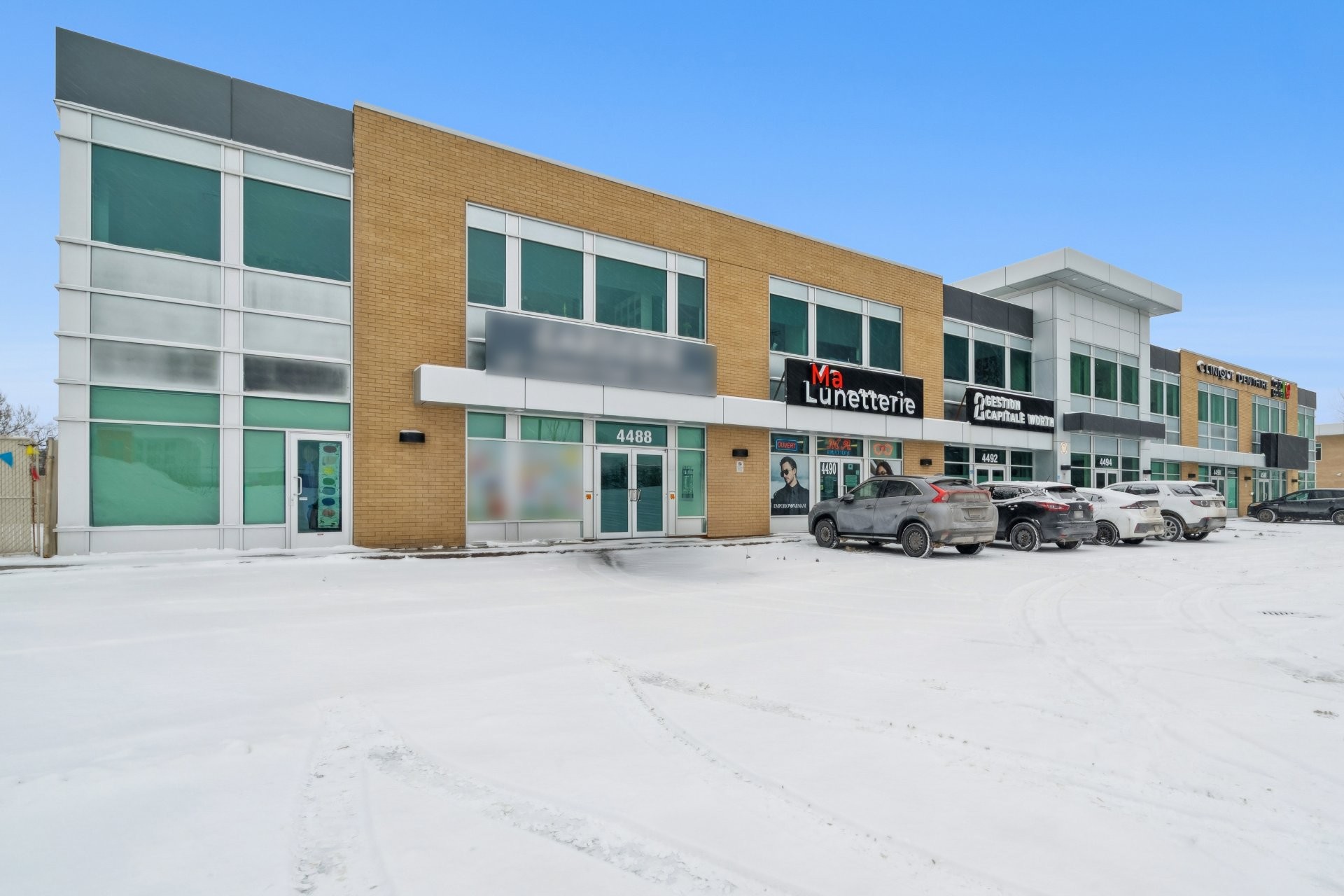 Commercial condo for sale in Chomedey approximately 3,273 sq.ft. Corner unit on the ground floor (RDC). Built in 2011. Exceptional visibility from the A-440 highway. Large fenestration and high ceilings providing maximum natural light. Ideal for a retail business or professional office requiring high visibility and easy access for clients and/or employees and parking. Strategically located along the A-440, between the A-13 and A-15 highways. Currently owner-occupied.