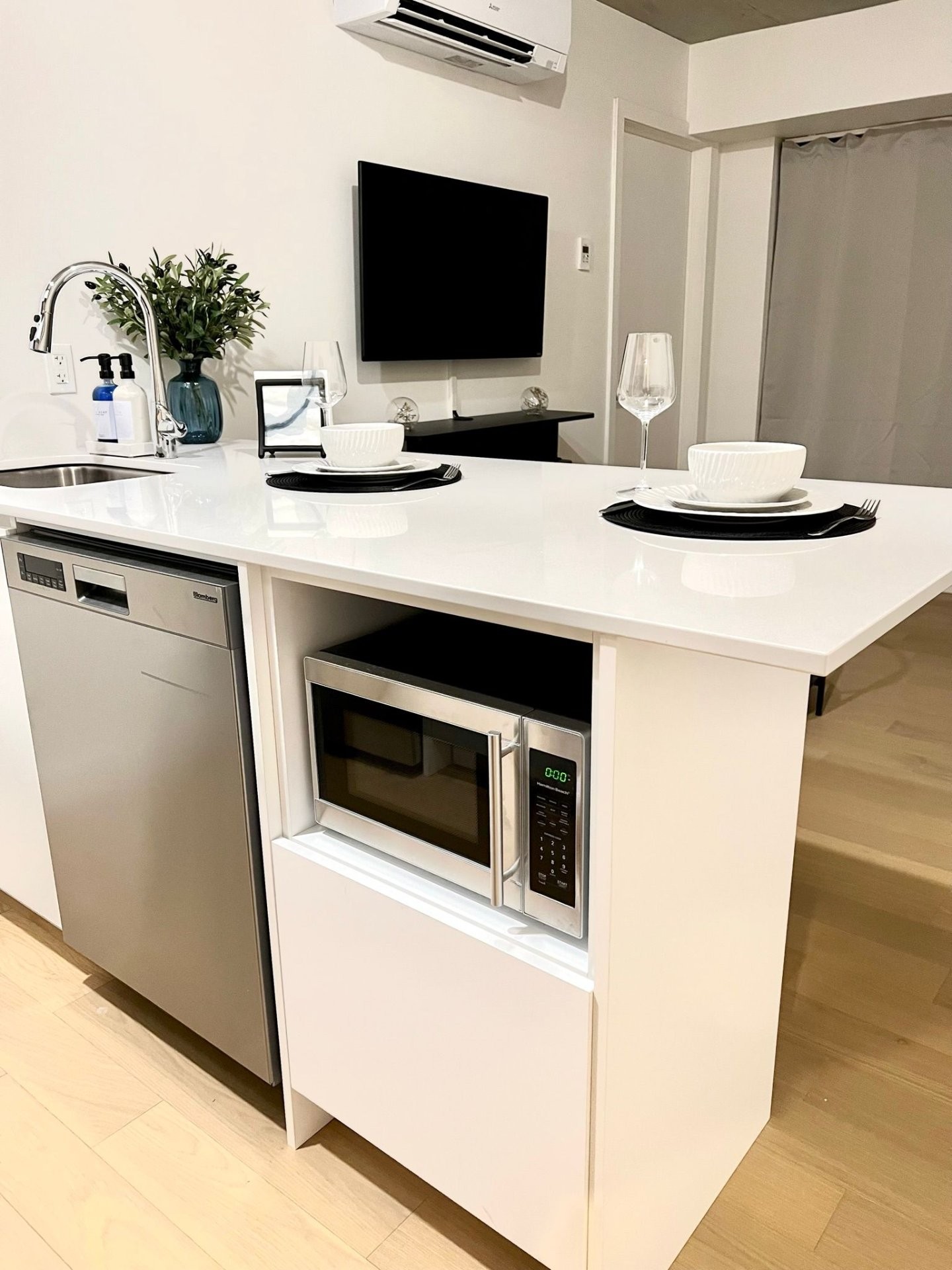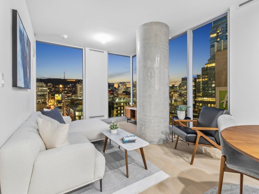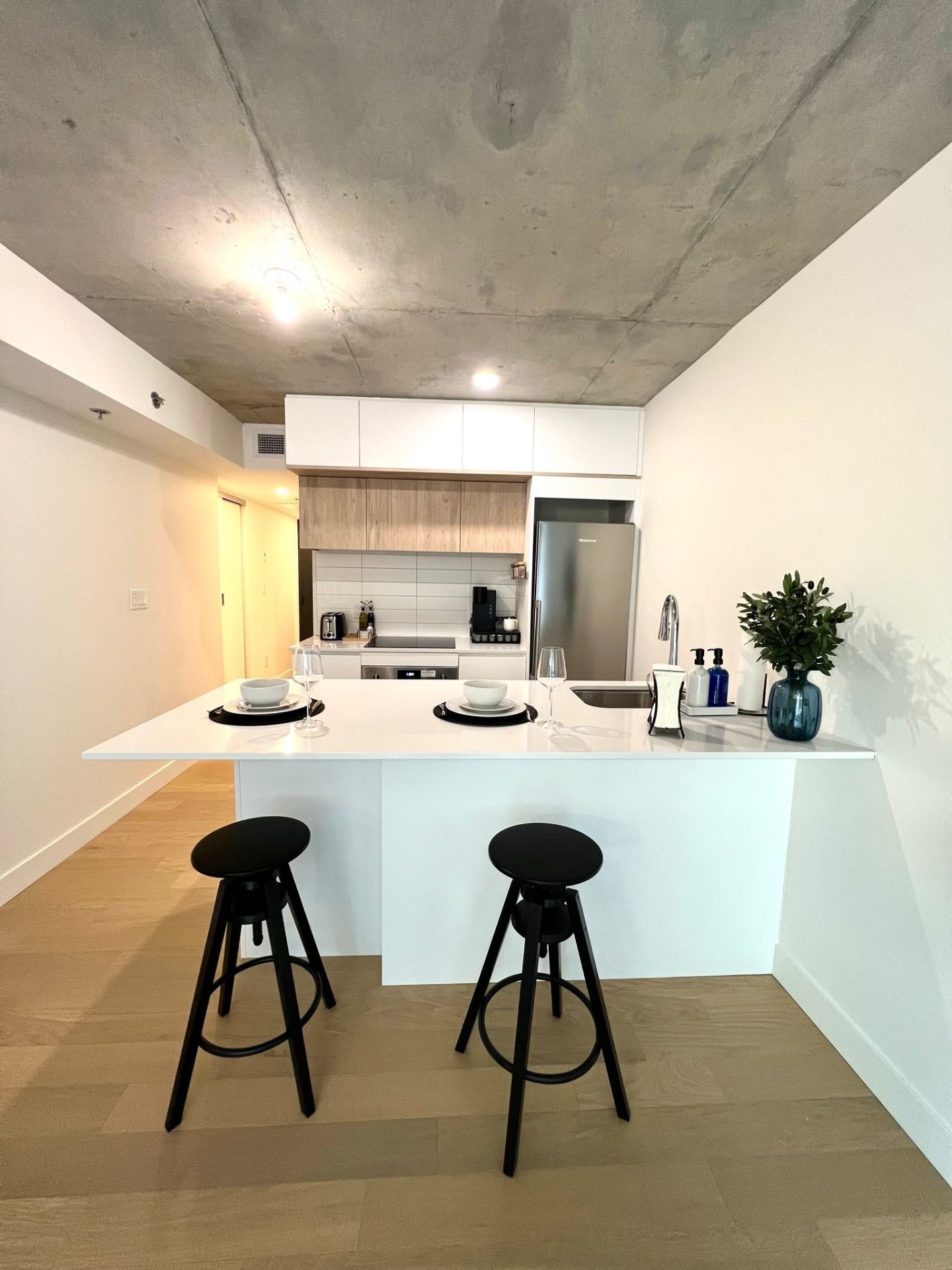 Condo haut de gamme, luxueux, 2 chambres, 2 salles de bain, unité de coin. Très lumineux et ENTIÈREMENT MEUBLÉ au milieu du centre-ville et...