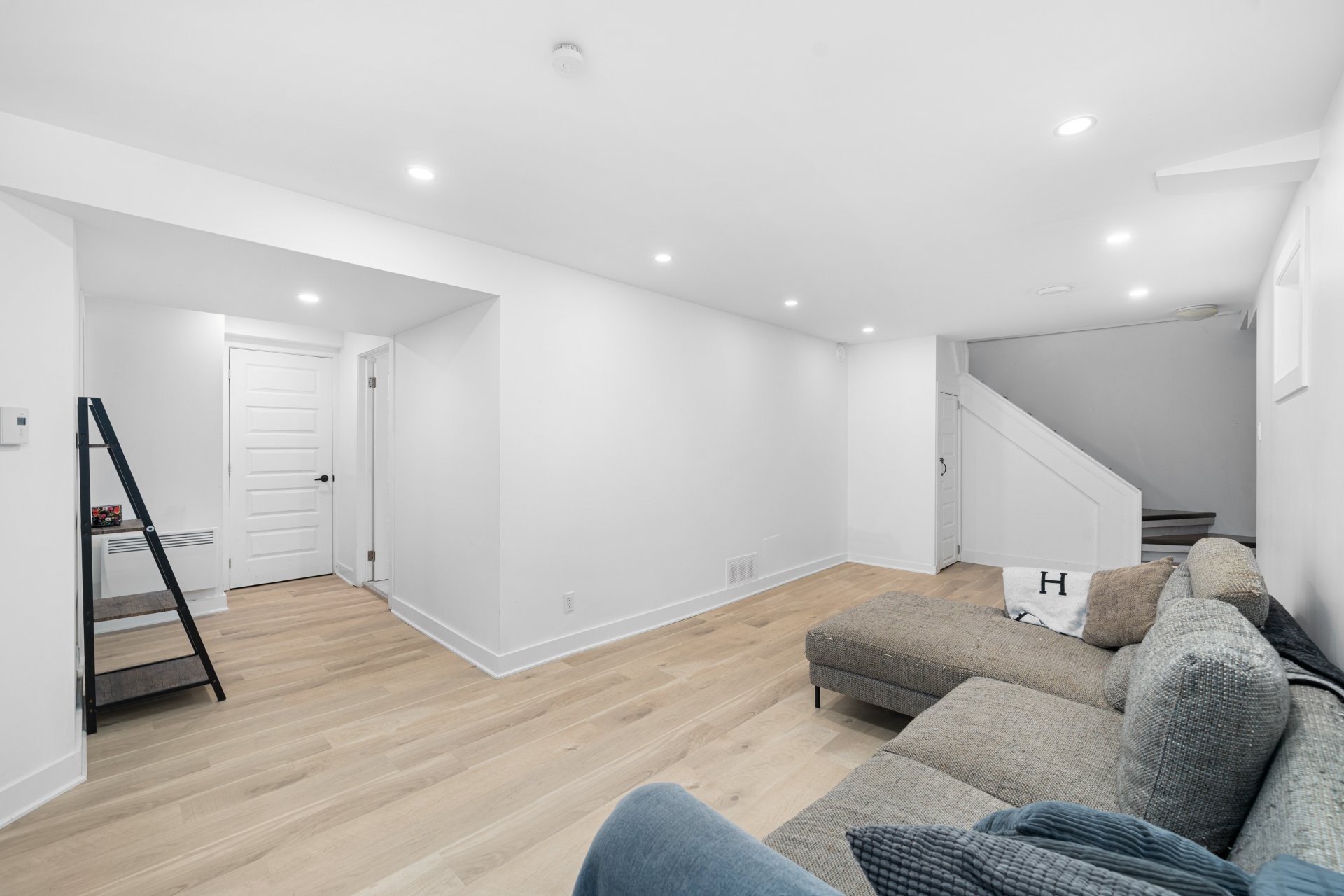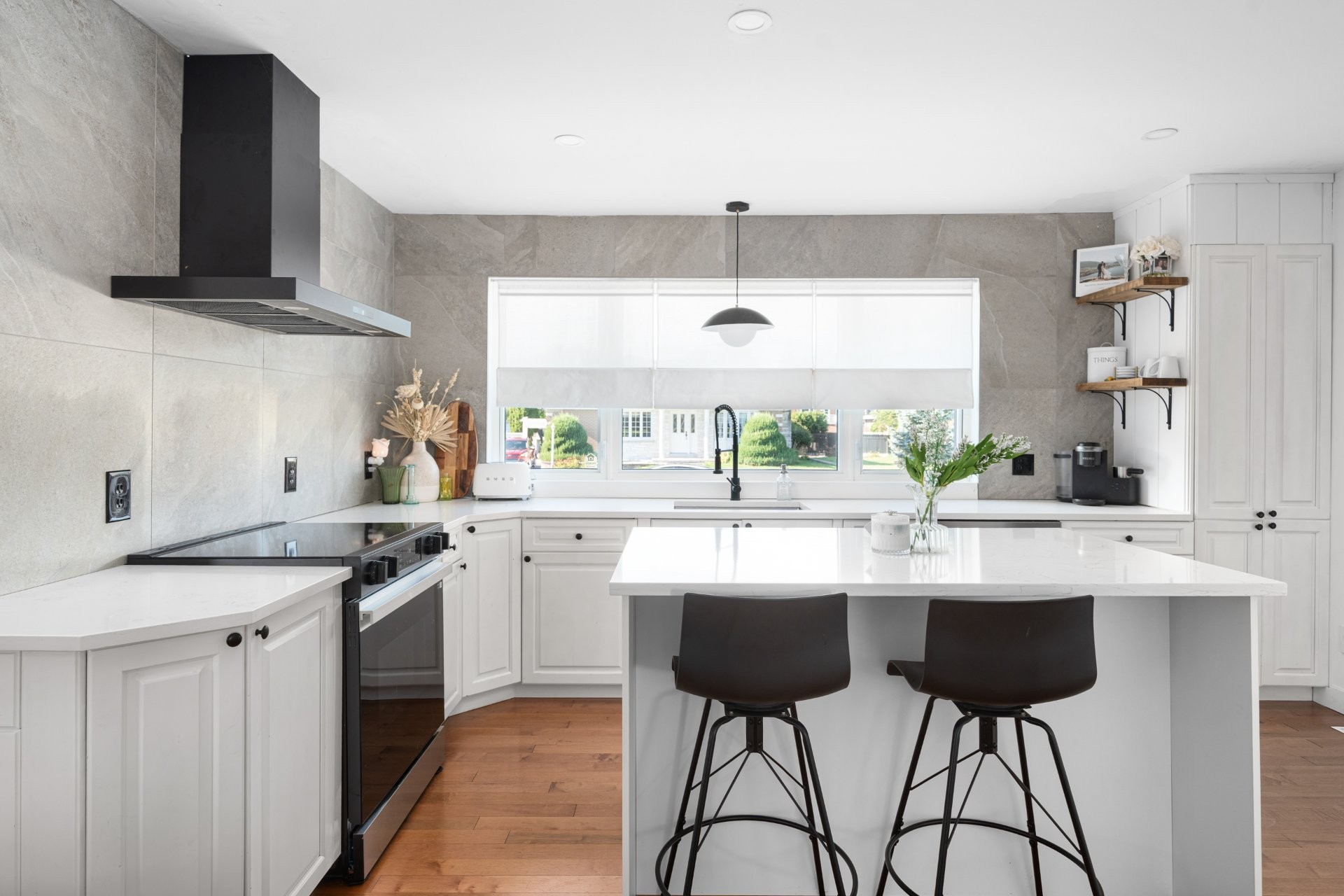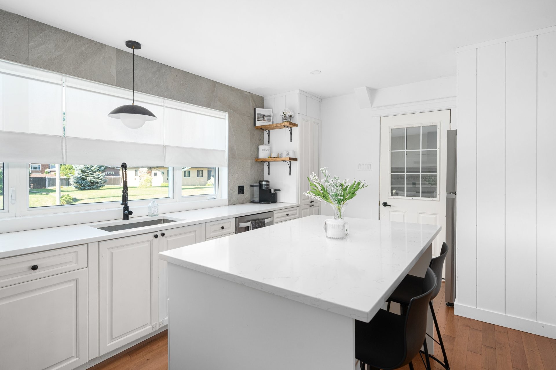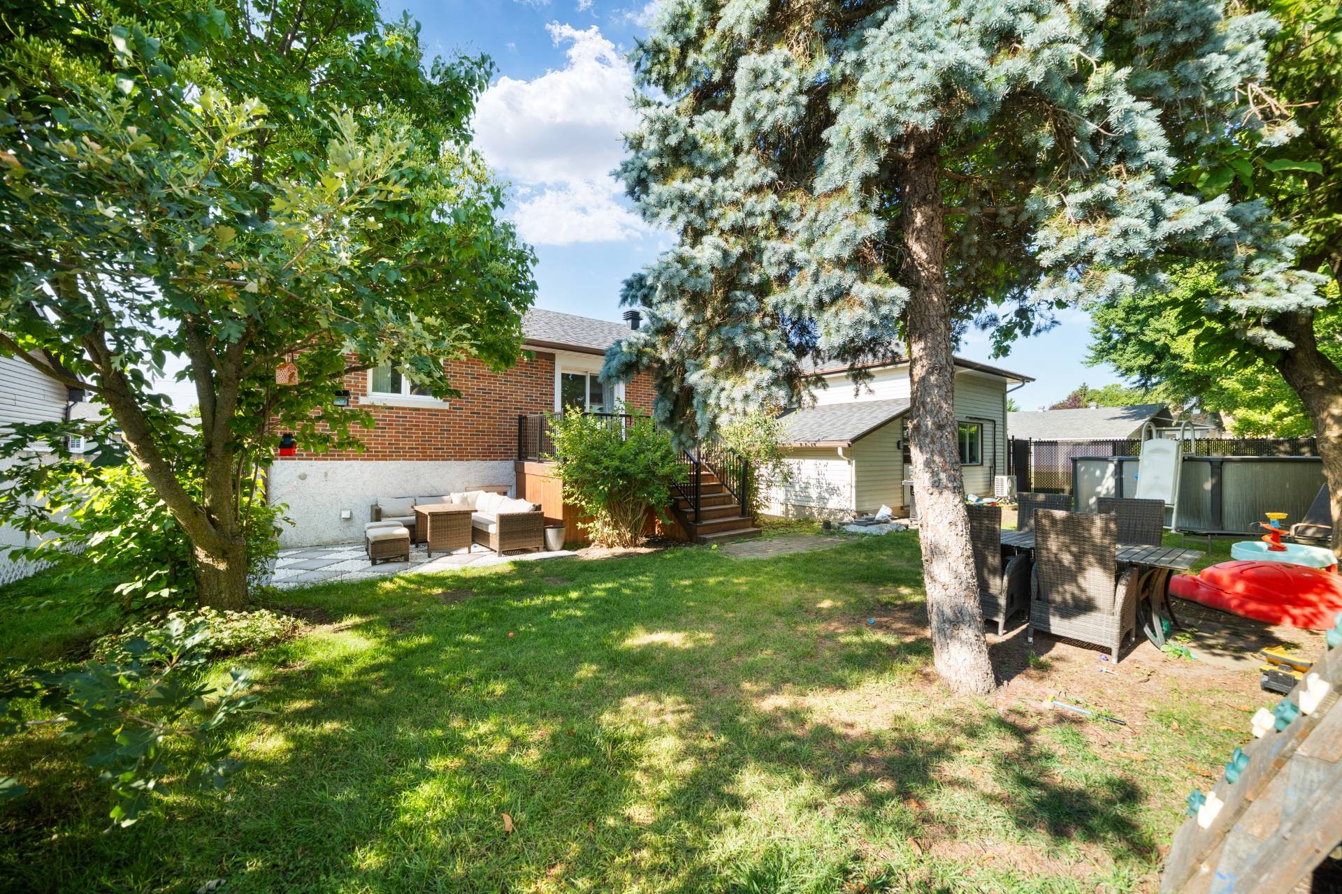 This turnkey bungalow has been fully renovated. It offers a modern kitchen with quartz countertops and a new island, hardwood floors on the main level, and bright, spacious bedrooms. Outside, you'll find an intimate backyard with mature trees, a paved landing, and an above-ground pool, plus a rare 36-ft garage for extra storage. The basement is fully finished with 2 bedrooms, a large family room, and a full bathroom. Located on a quiet street with generously sized lots and close to all services, this home blends comfort and convenience.