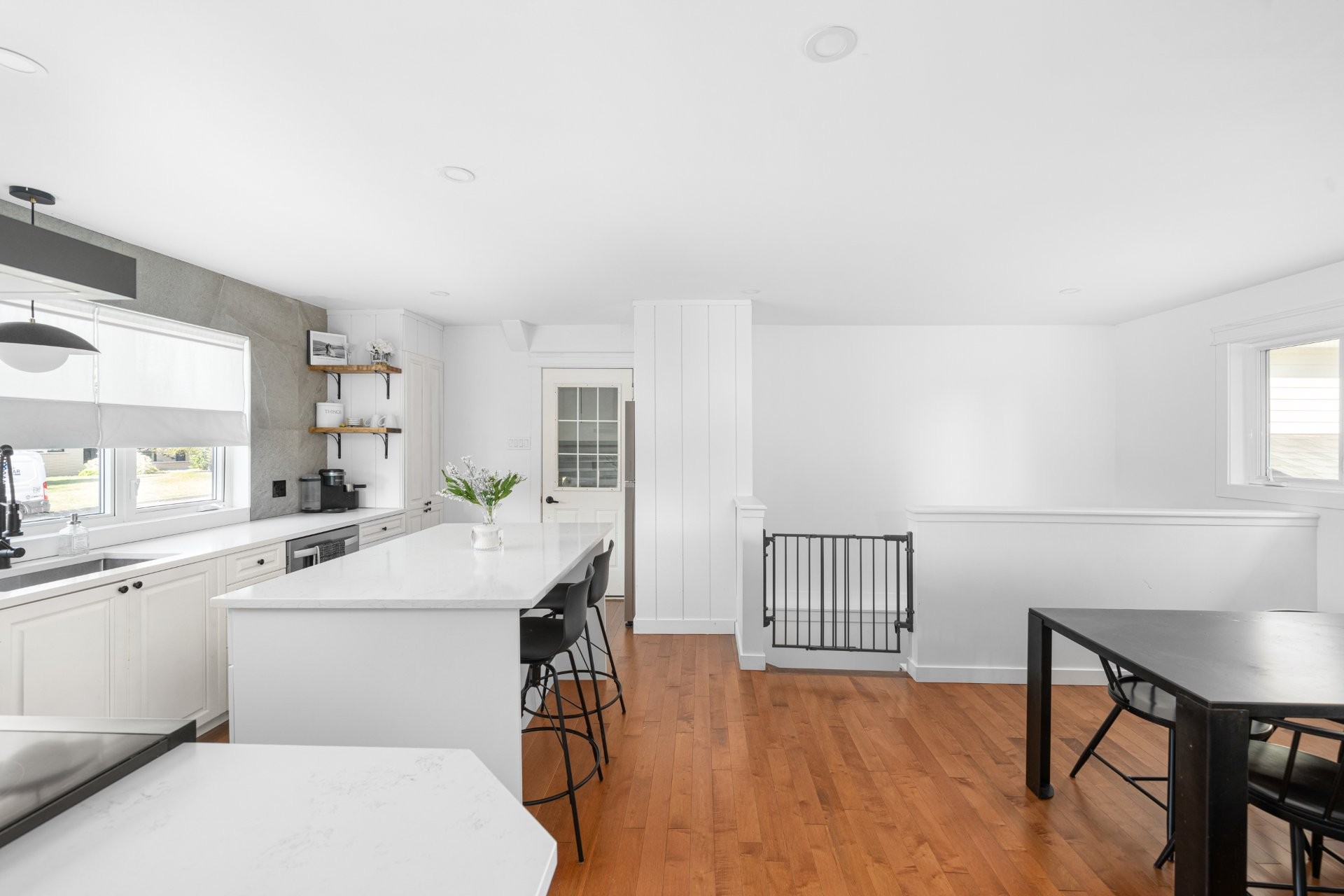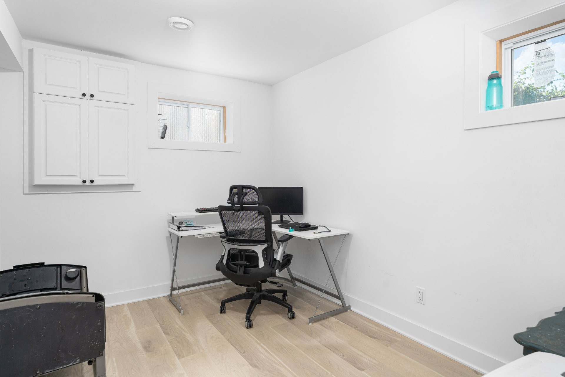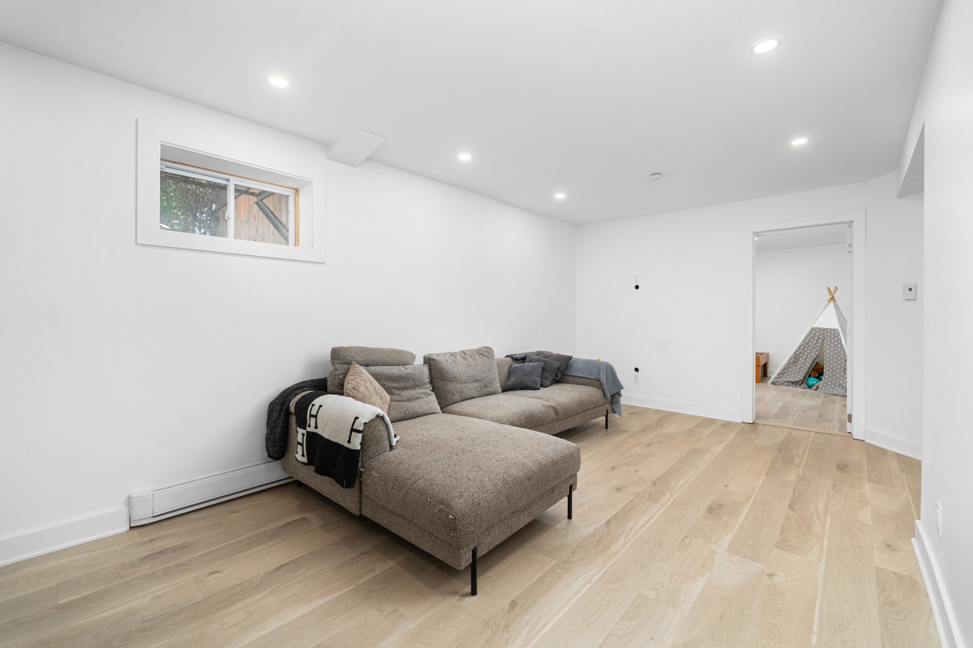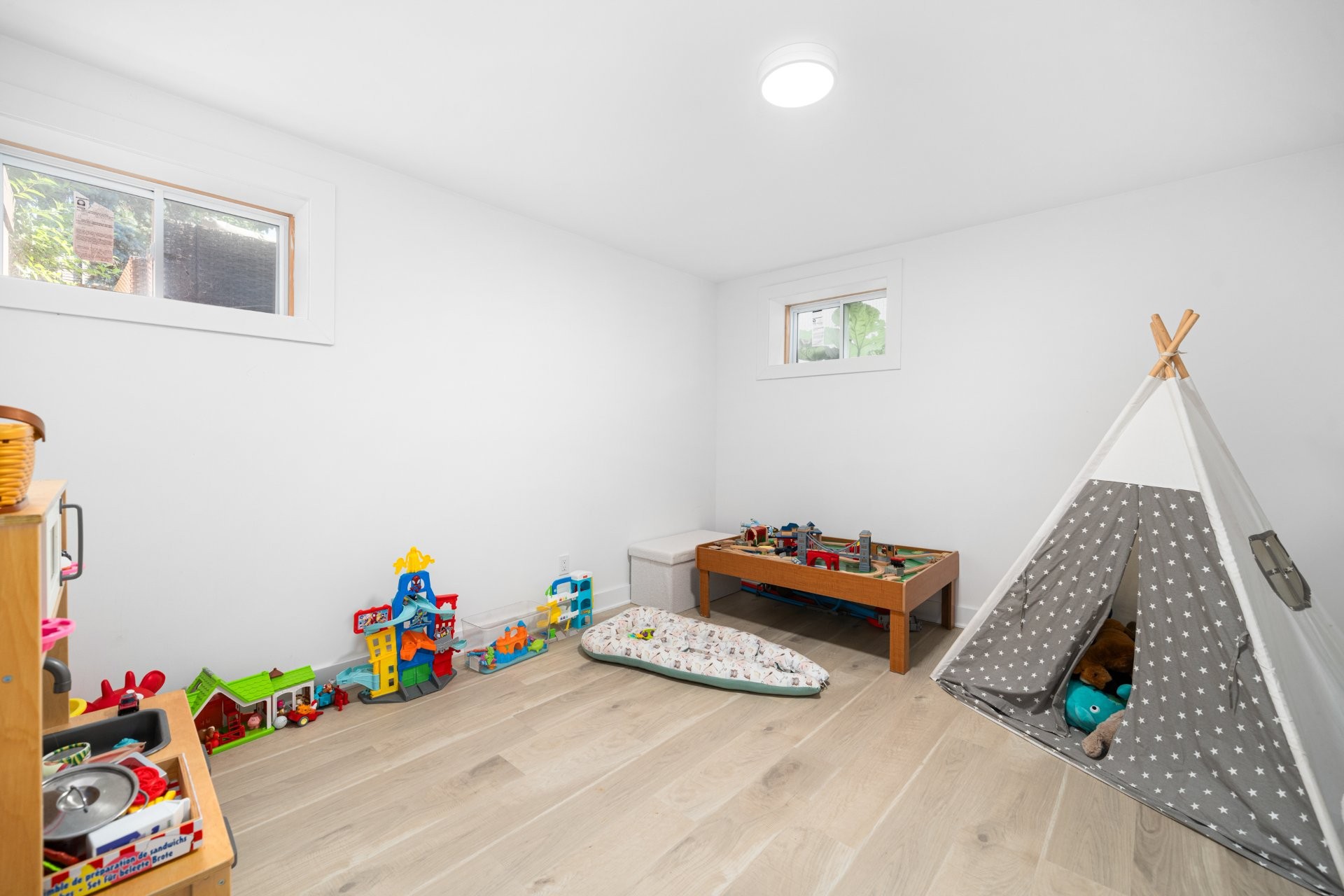 This turnkey bungalow has been fully renovated. It offers a modern kitchen with quartz countertops and a new island, hardwood floors on the main level, and bright, spacious bedrooms. Outside, you'll find an intimate backyard with mature trees, a paved landing, and an above-ground pool, plus a rare 36-ft garage for extra storage. The basement is fully finished with 2 bedrooms, a large family room, and a full bathroom. Located on a quiet street with generously sized lots and close to all services, this home blends comfort and convenience.