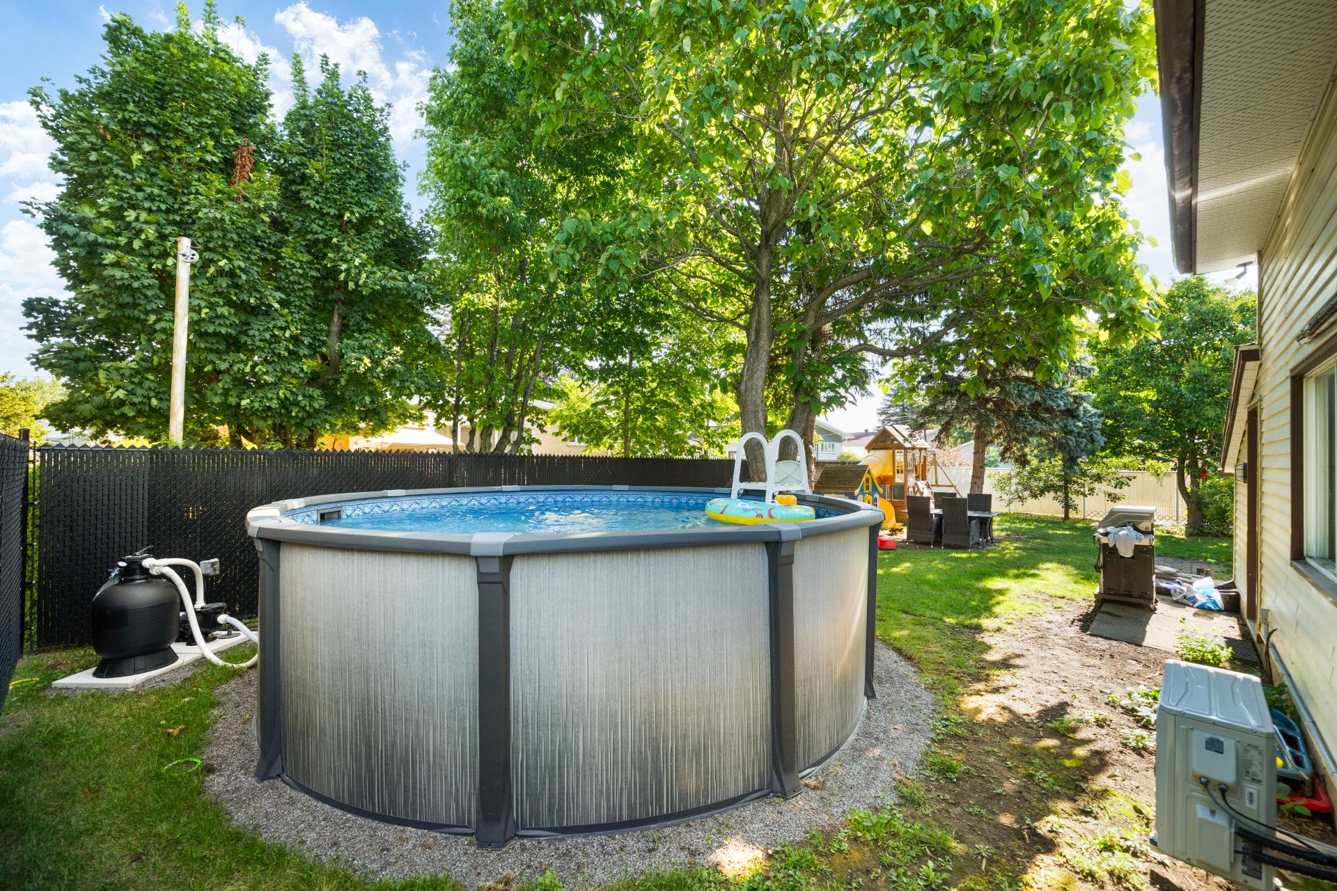 Curtain rod Blinds (kitchen + secondary bedroom), Light fixtures, Above-ground pool, Entryway mirror, Wall shelves in dinning room and bathroom basement, Central vacuum, 1x Garage door opener remote