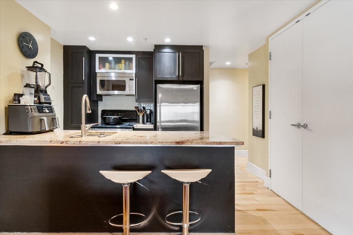 Condo rénové avec une chambre à coucher, une salle de bain + salle d'eau idéalement situé au coeur de Montréal. Avec un aménagement à aire o...