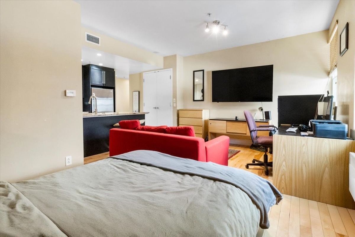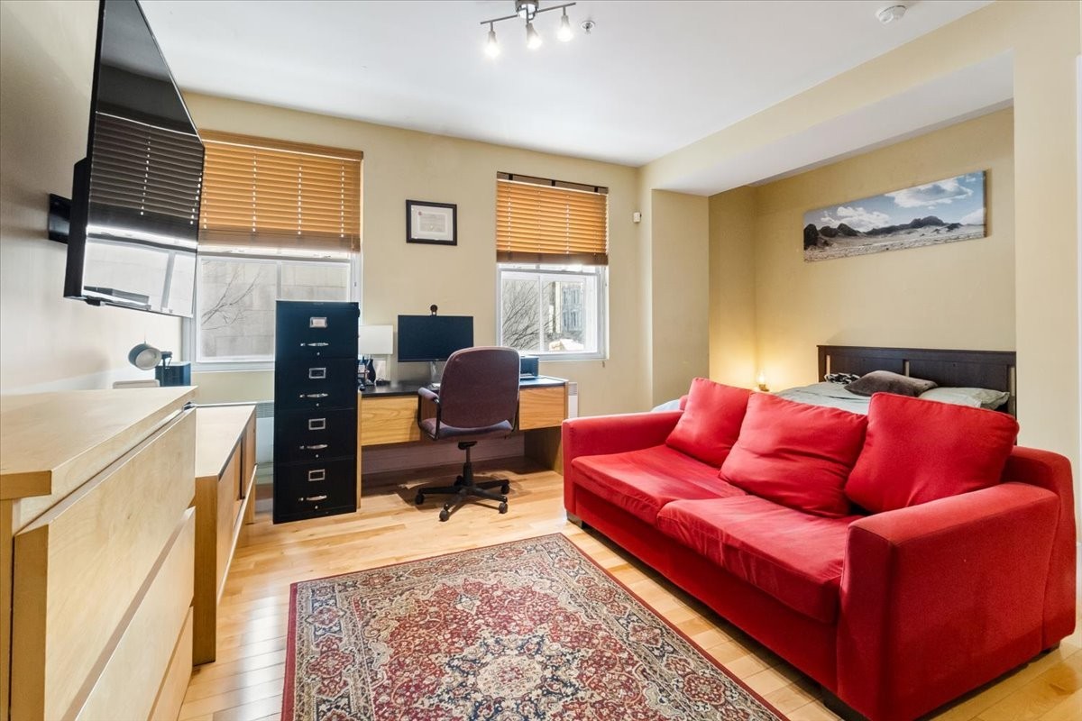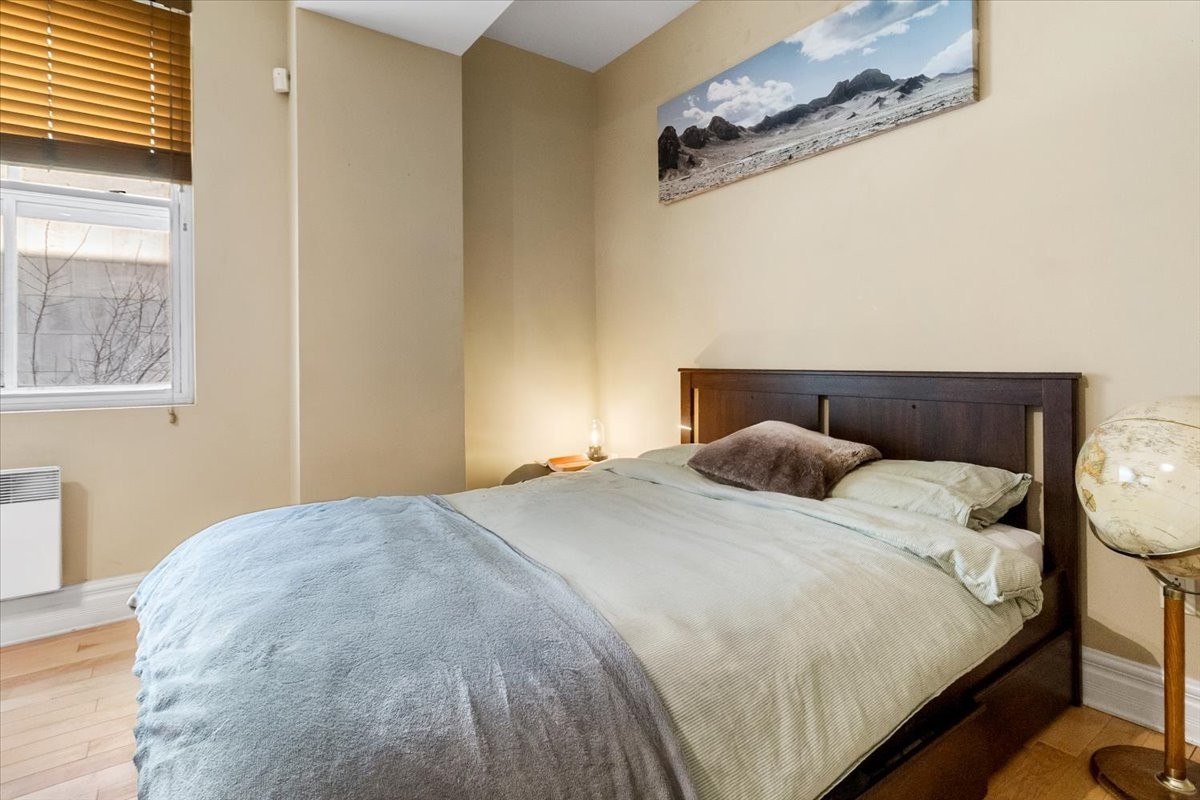 Nestled in the heart of Old Montréal, this open-concept loft built in 2005 perfectly balances modern design with historic charm. The expansive layout seamlessly unites living and sleeping areas, enhanced by large windows that flood the space with natural light. Ideal for both entertaining and a refined, quiet lifestyle, the loft features a sleek kitchen with contemporary cabinetry, stainless steel appliances, and a functional island. The minimalist living area offers flexibility for relaxation or work. Steps from cobblestone streets, iconic landmarks, cafés, and amenities--this is urban living at its most authentic and vibrant.