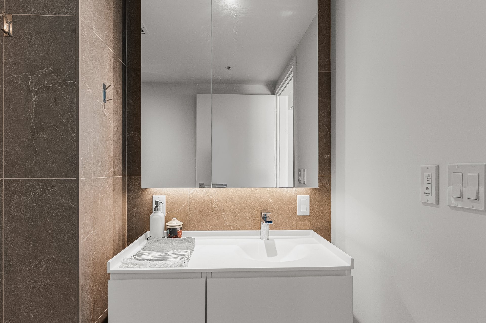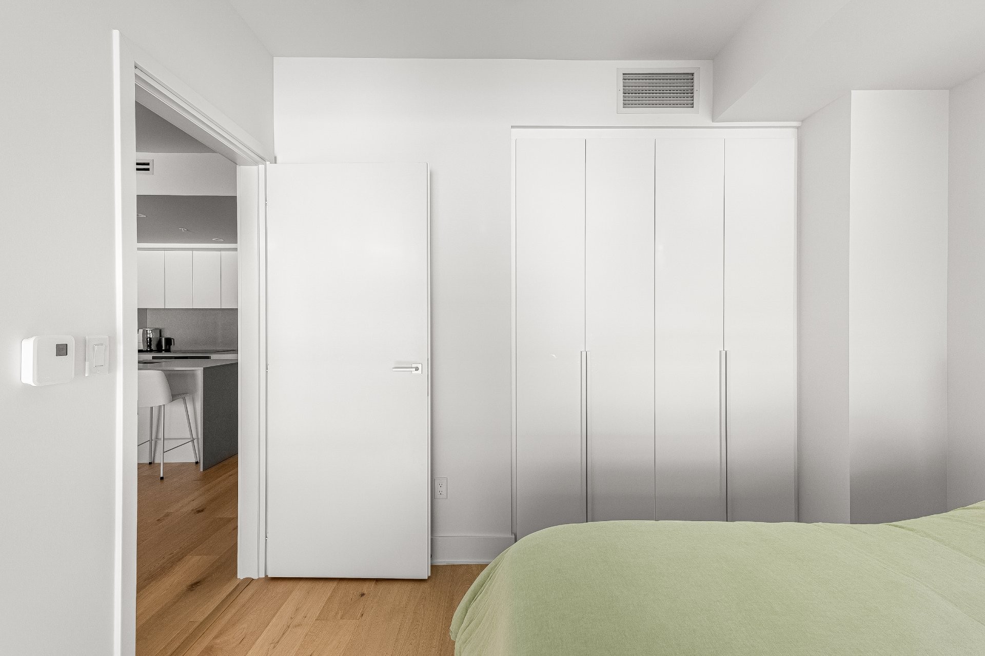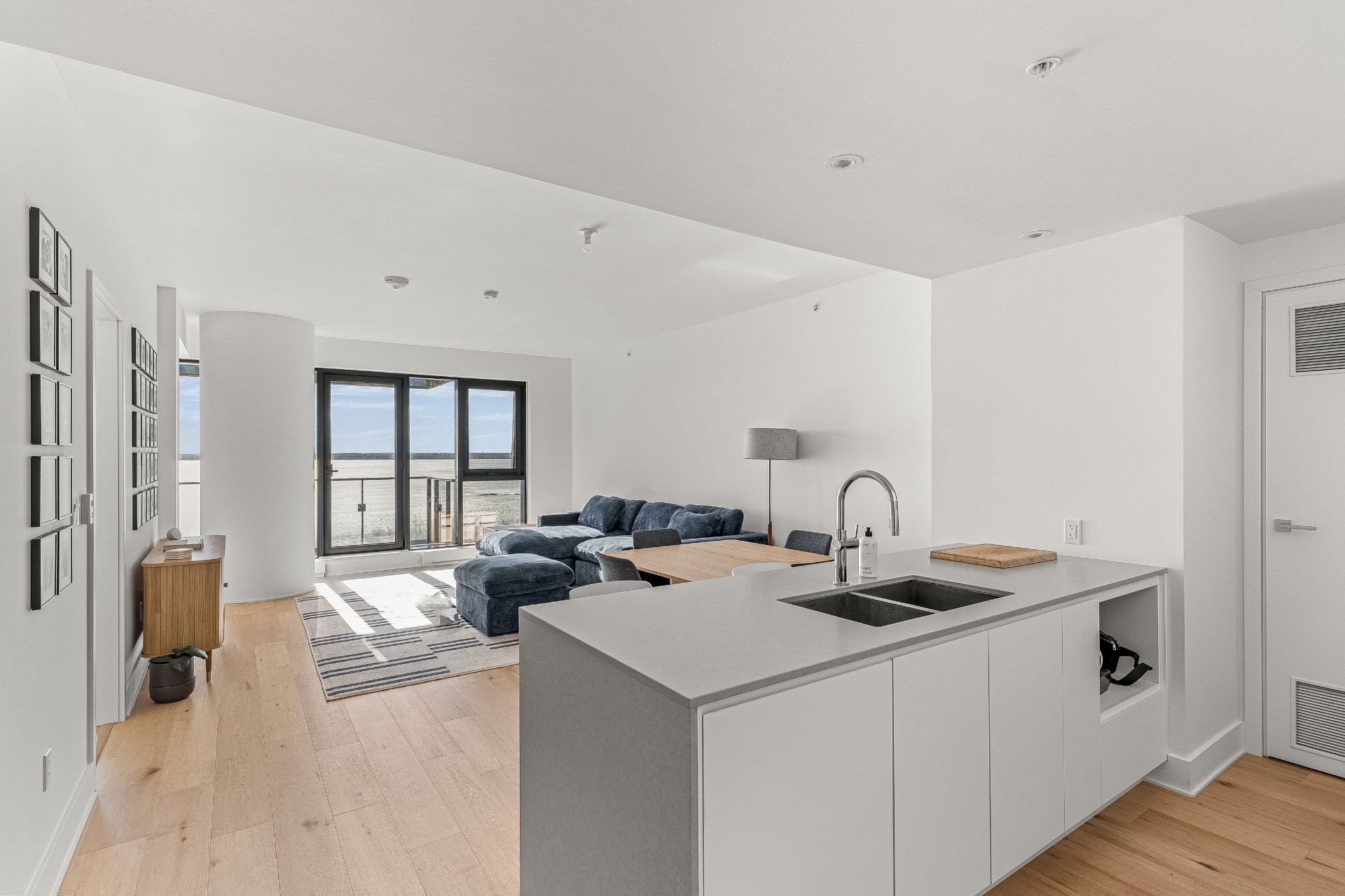 Elegant one-Bedroom condo located on the 11th floor of the brand-new Symphonia VIU (2024), offering breathtaking and unobstructed views of the St. Lawrence River from a private balcony. Refined finishes, a serene atmosphere, and exceptional soundproofing create an oasis of comfort and quiet. The building offers outstanding amenities: indoor and outdoor pools, spa, sauna, gym, yoga room, 24/7 doorman and concierge, and a guest suite available for your visitors. Direct access to bike paths and walking trails completes this ideal balance of nature and urban living.