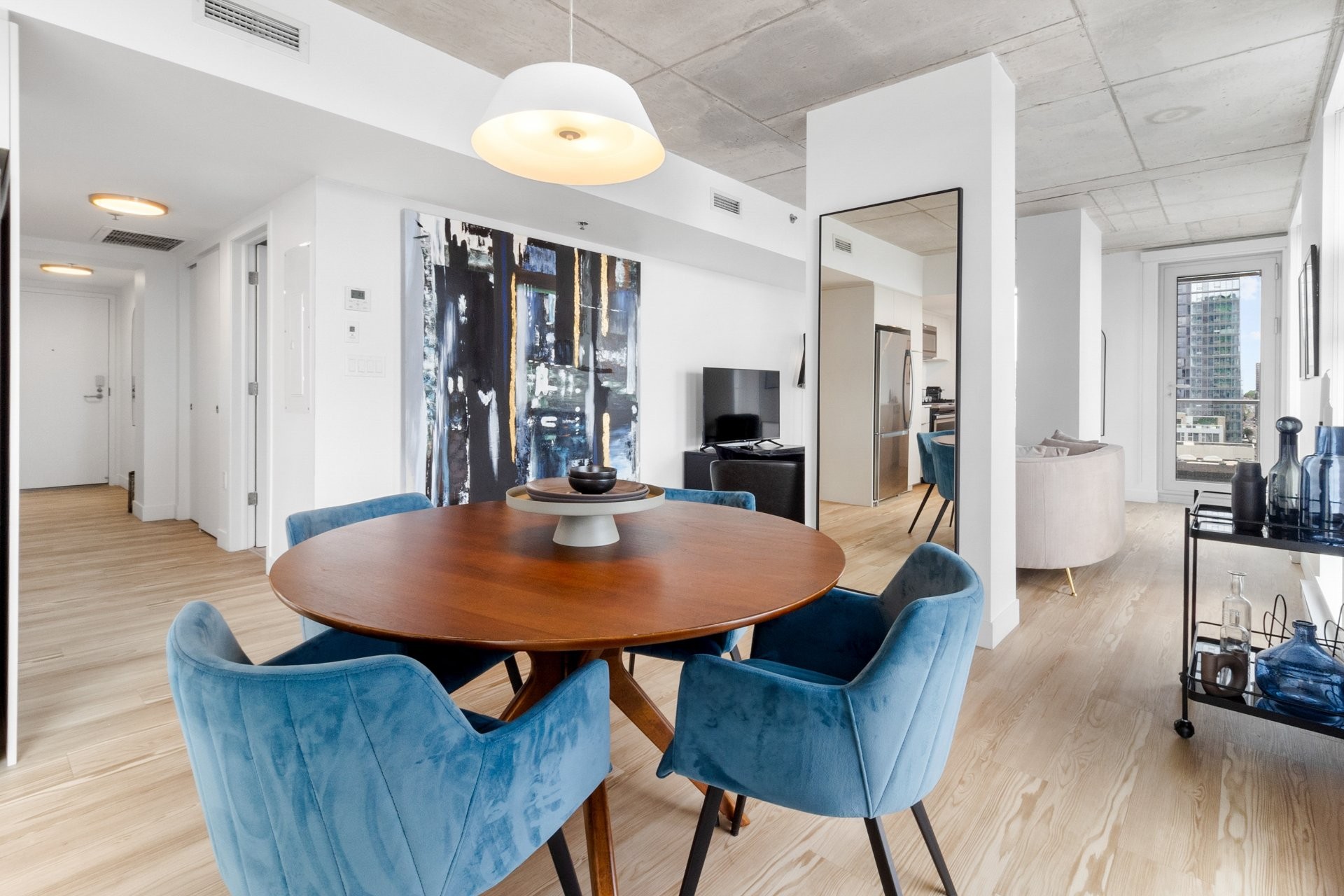 Condo haut de gamme, luxueux, 2 chambres, 2 salles de bain, unité de coin. Très lumineux et ENTIÈREMENT MEUBLÉ au milieu du centre-ville et...