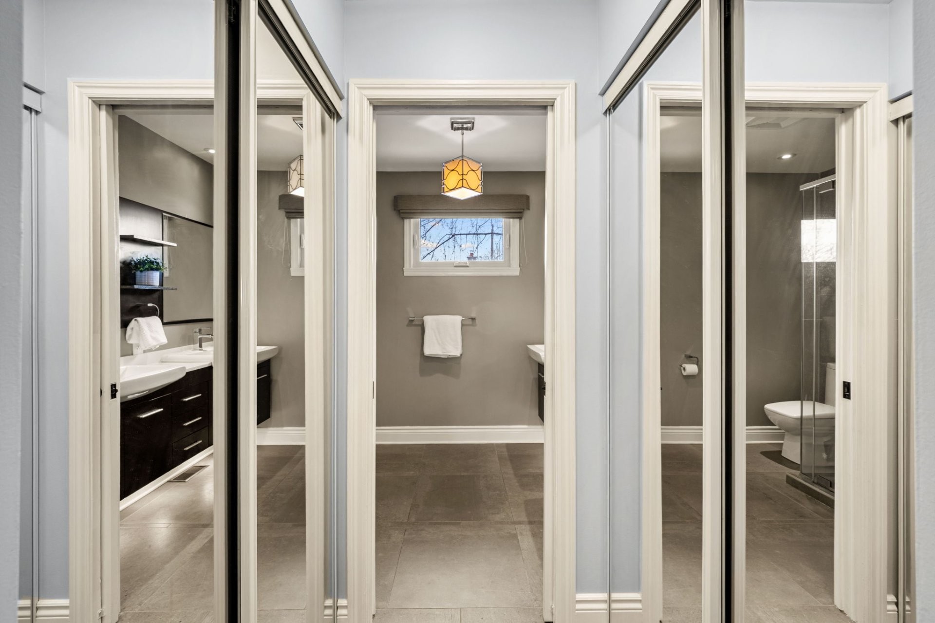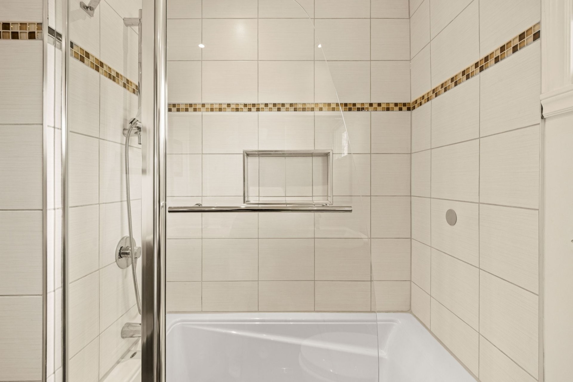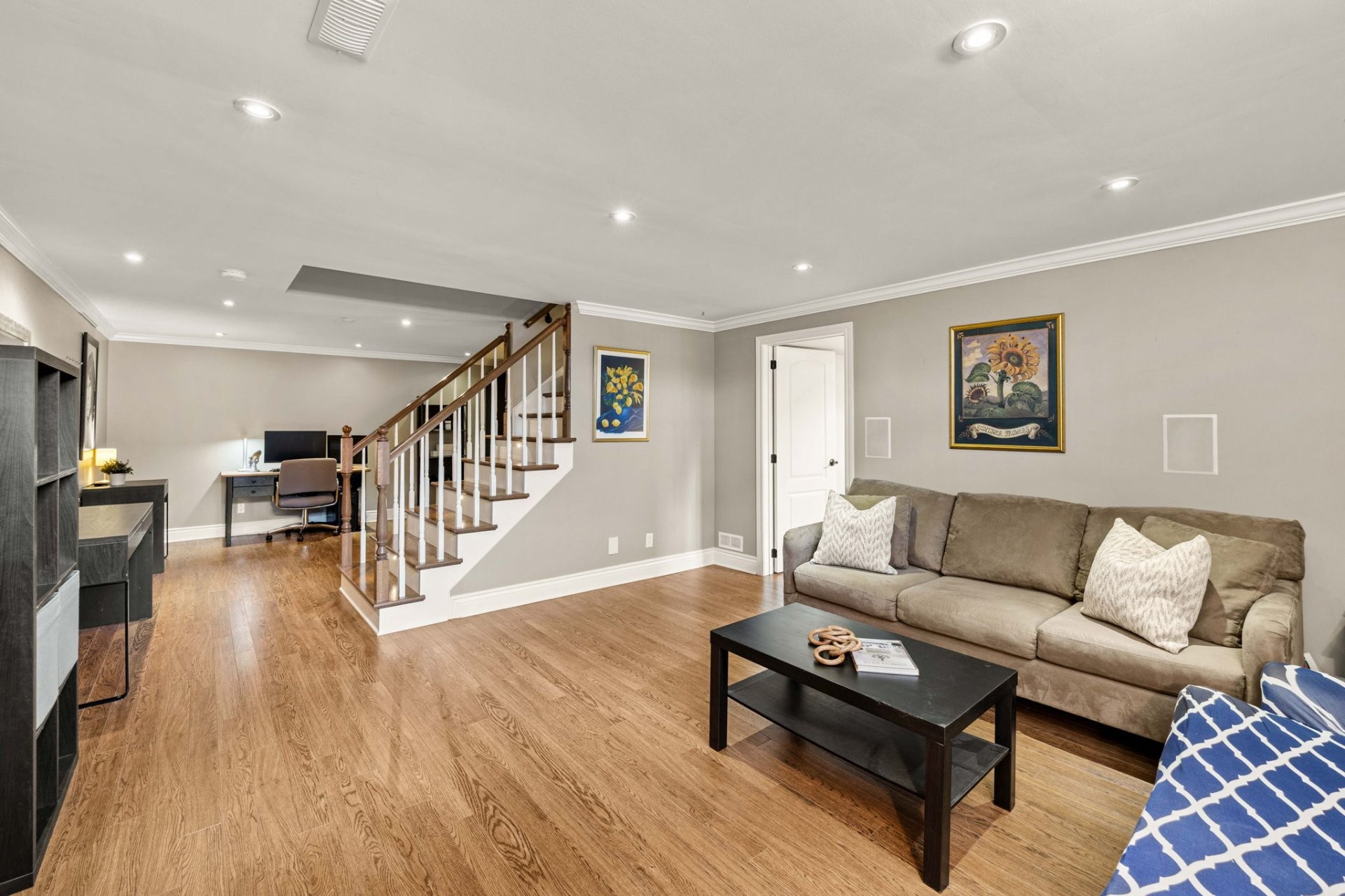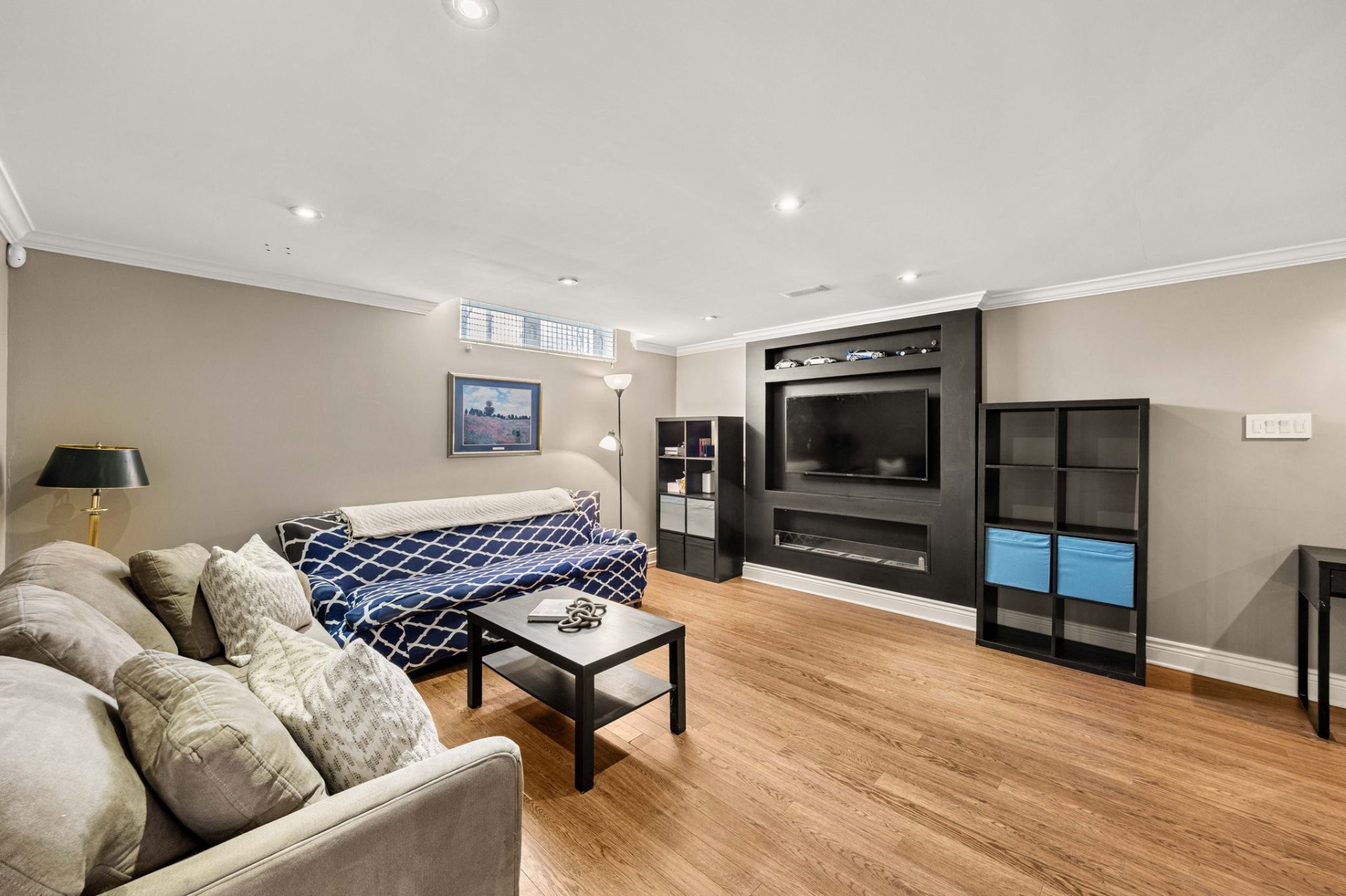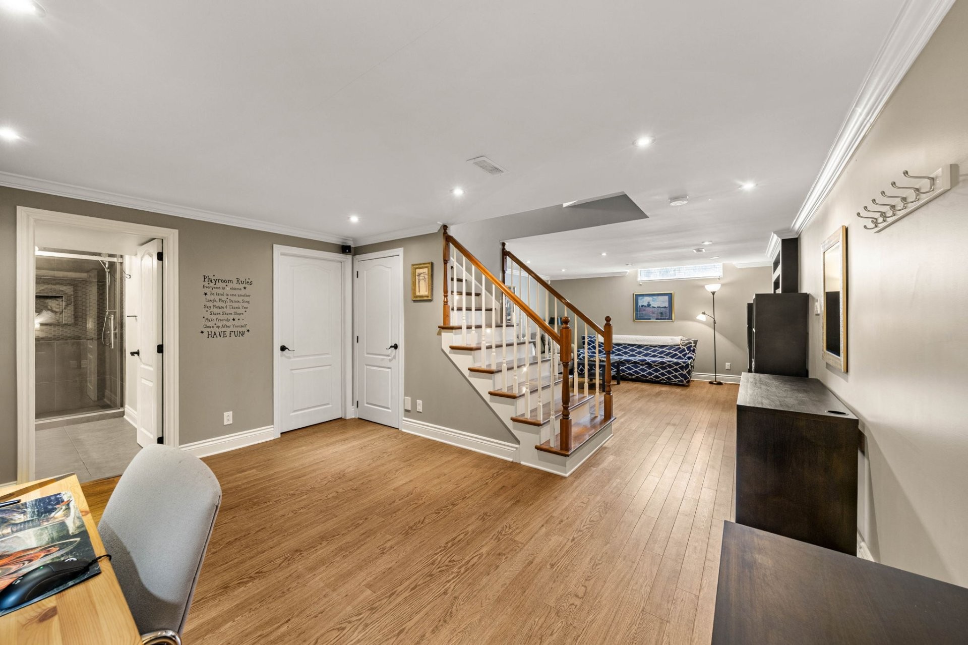 The fully finished basement provides excellent additional living space, including a large family room, an extra bedroom, space suitable for a home office, and a full bathroom with a large shower and heated floor, ideal for growing families or guests.