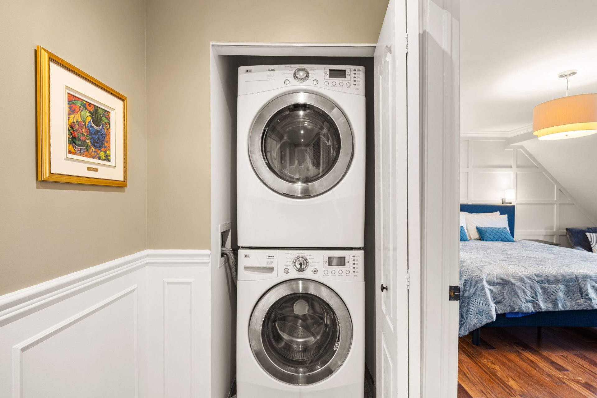 Upstairs, the spacious primary bedroom offers a cozy window seat and a private ensuite bathroom with heated floors. Two additional well-appointed bedrooms, a family bathroom also with heated floors, and a convenient laundry area complete this level.