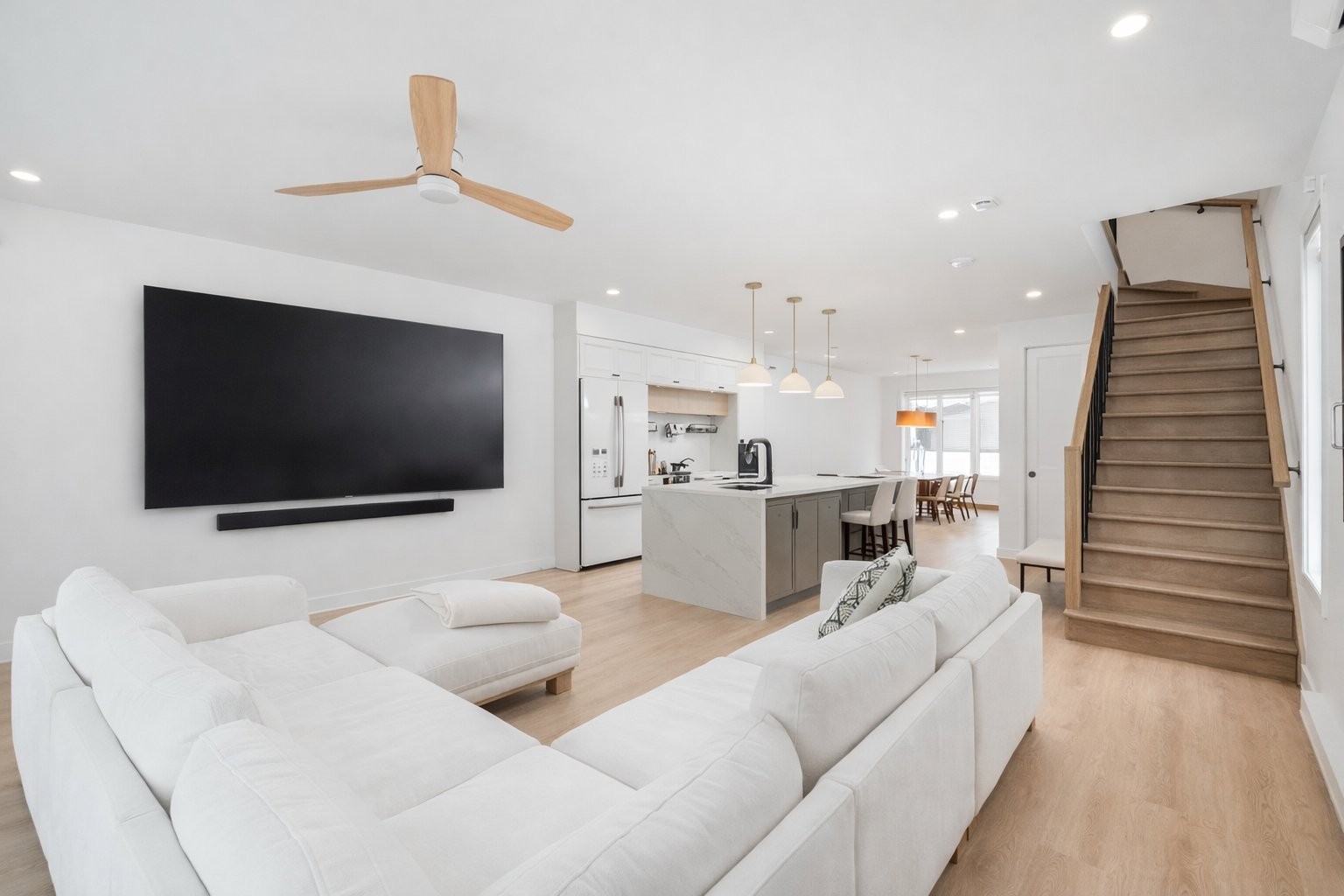 Superbe condo de 3 chambres et 2 salles de bain offrant un espace de vie à aire ouverte lumineux. Cuisine moderne avec grand îlot, finitions...