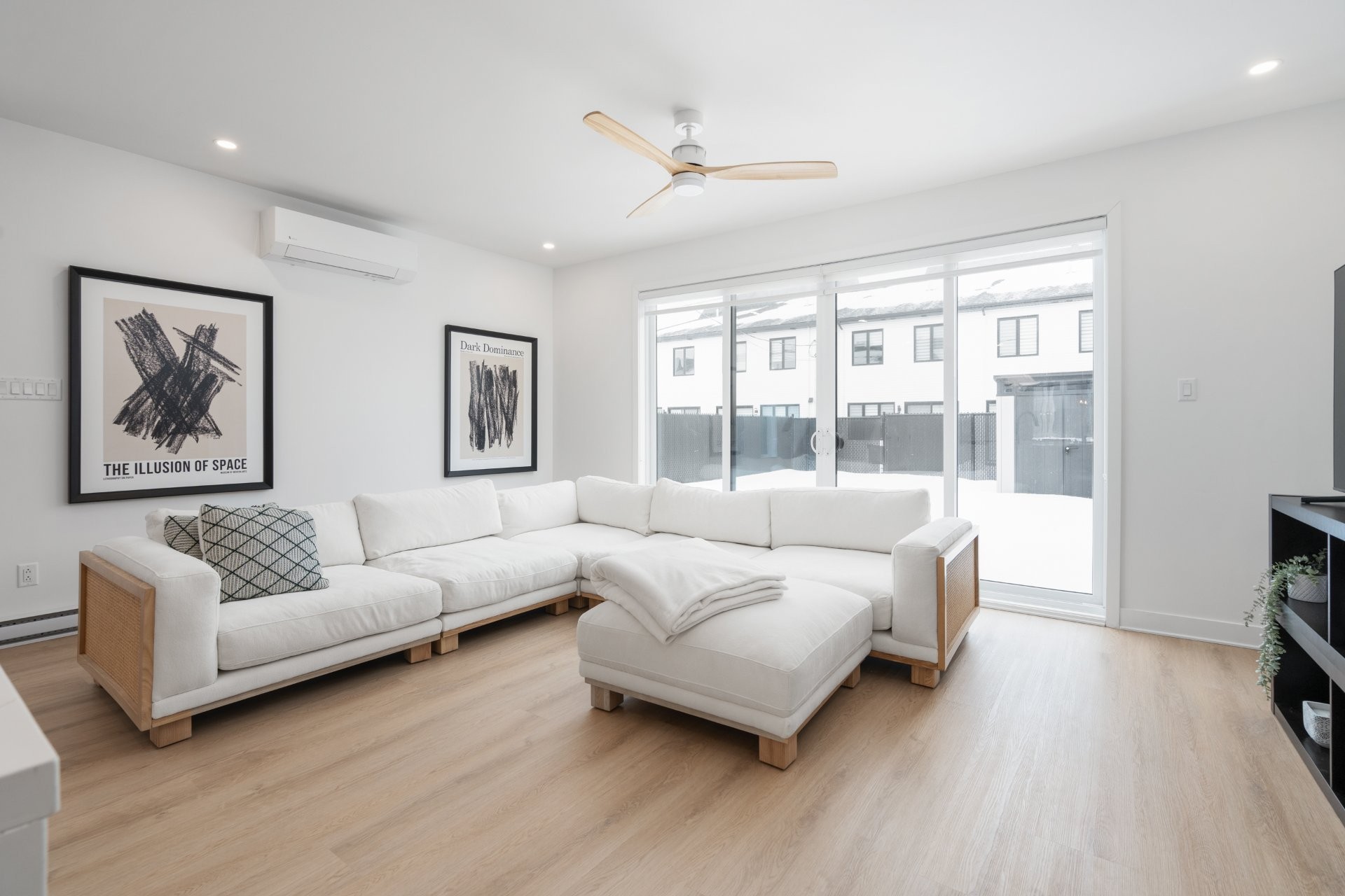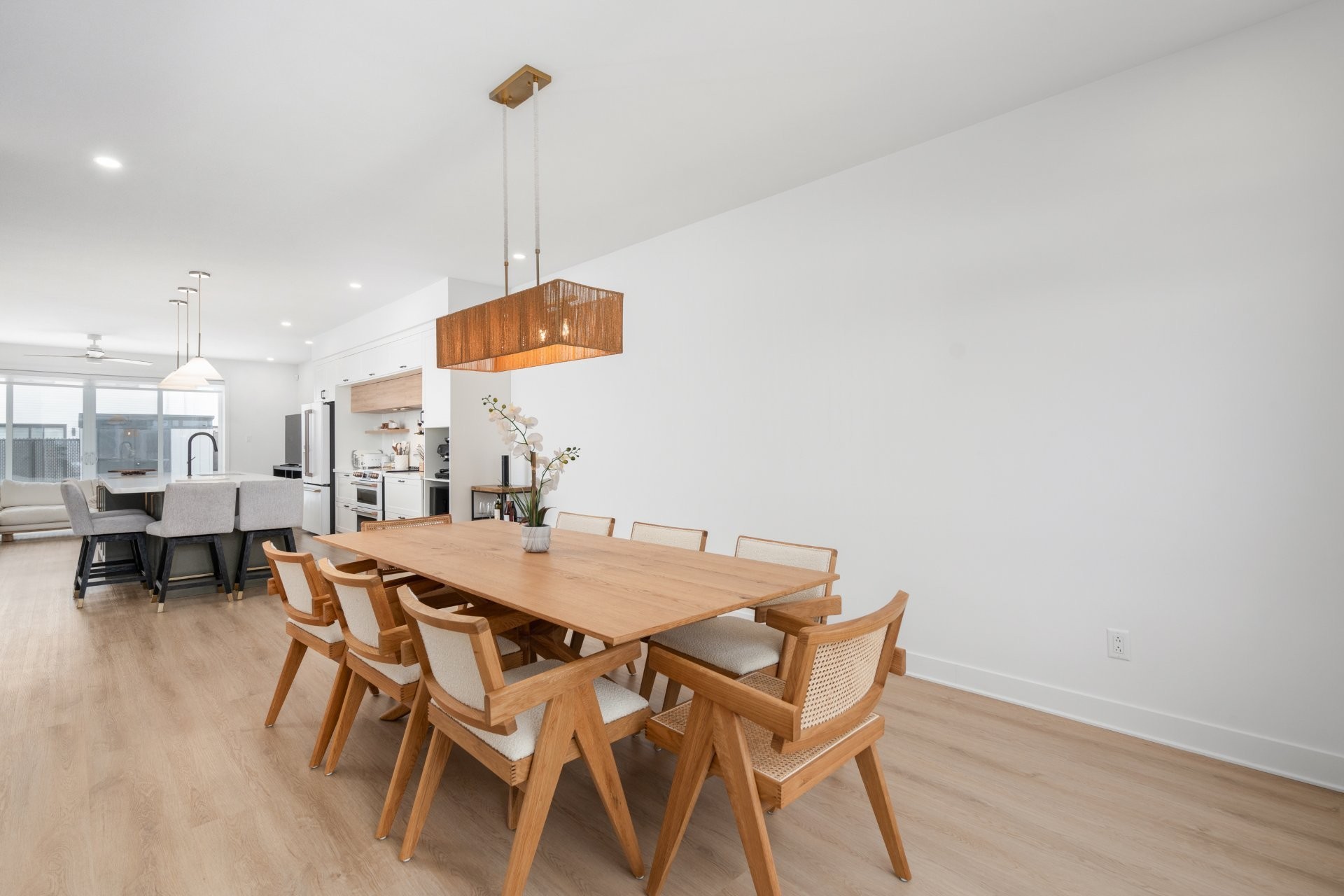 Large patio doors extend the living space outdoors, allowing natural light to flood the home while creating a seamless connection between interior living areas and the backyard.