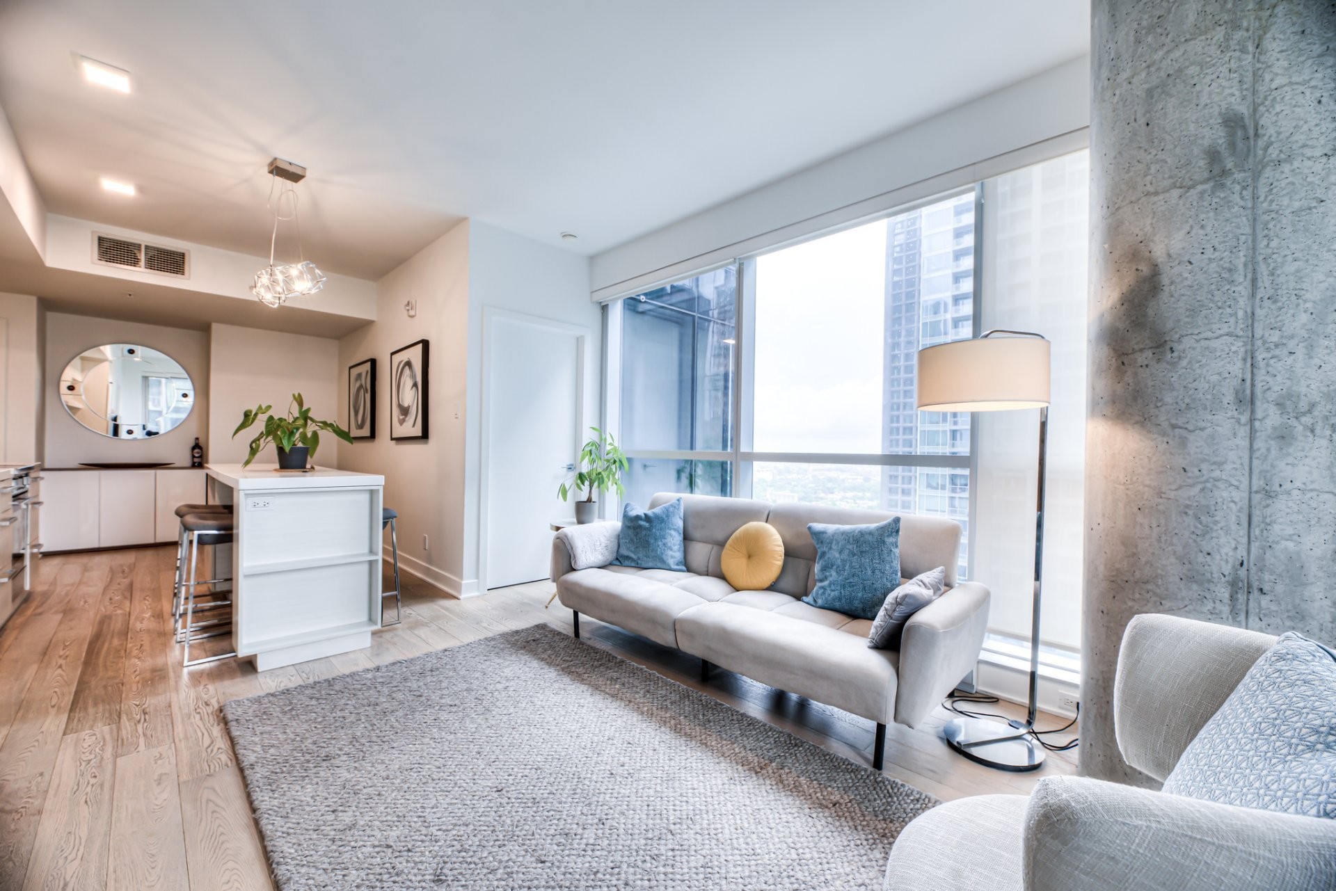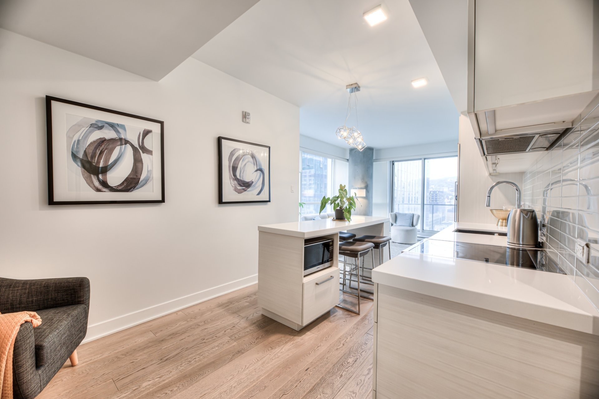Condo haut de gamme, luxueux, 2 chambres, 2 salles de bain, unité de coin. Très lumineux et ENTIÈREMENT MEUBLÉ au milieu du centre-ville et...