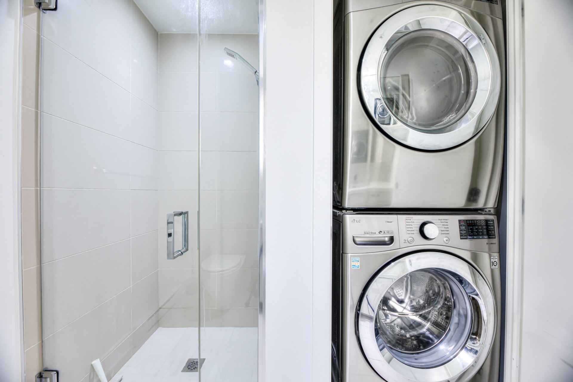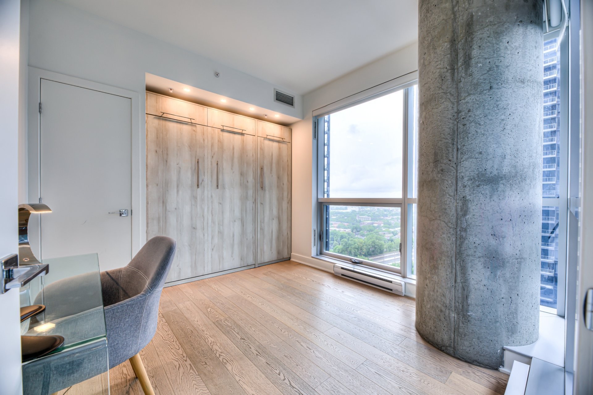 A well-laid-out 2-bedroom & 2-bathroom unit. Master suite with twp closets and an ensuite bathroom with shower/tub. The second bedroom has a murphy bed, the room can be used as an office space or a guest bedroom. Perfect unit for a working professional looking for a fully equipped and furnished unit.