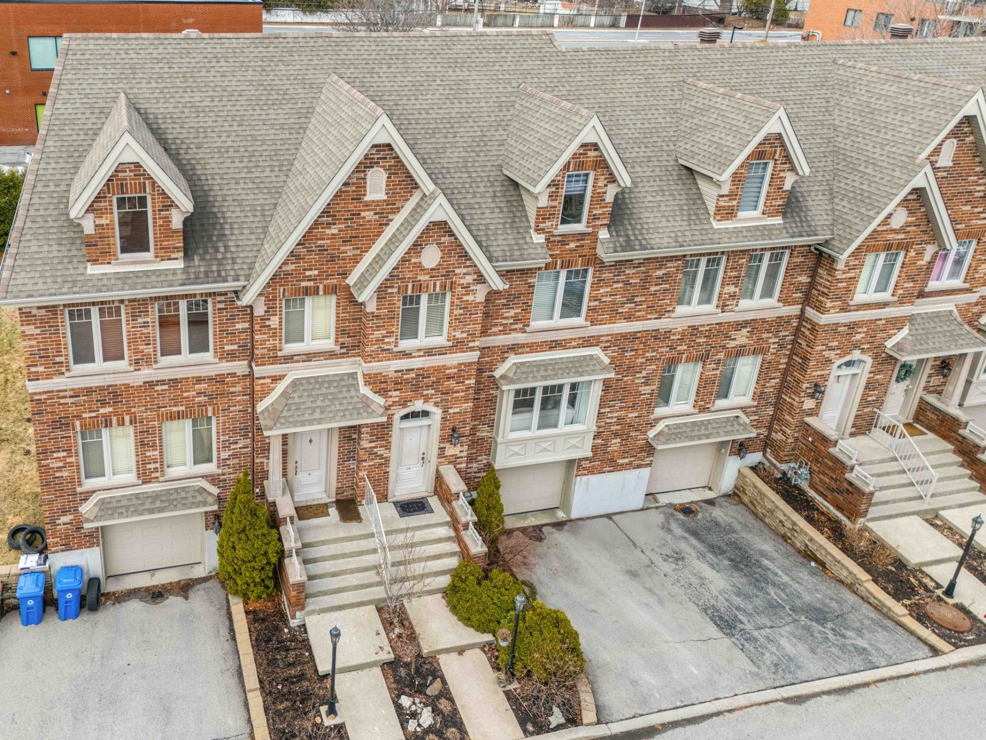 Over 2000 SF of elegant, well-maintained 2010 Grilli townhouse with upscale finishes. Open-concept living/dining, wood floors, fireplace. Gourmet kitchen with granite and built-ins, opening to fenced yard. 3 bedrooms on upper level, luxury bath. Bright mezzanine with full bath (office/family room or 4th bedroom). Finished basement (playroom or 5th bedroom with closet/window), laundry, storage, garage. Condo fees include snow, landscaping, maintenance. Prime: 2 stops to St-Jean, 5 min to Hwy 40 E/W.