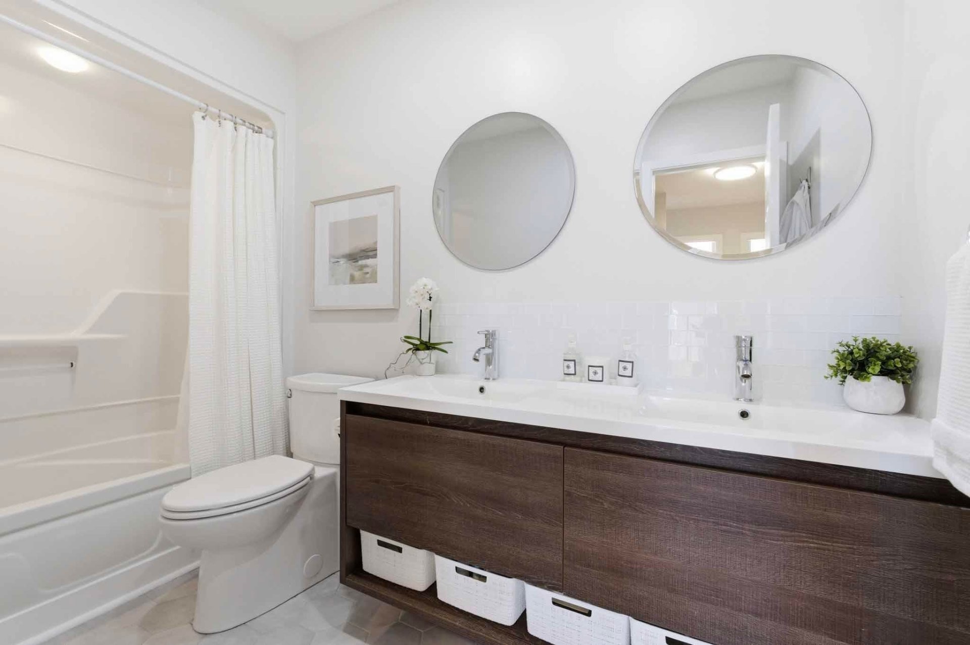 Bosch dishwasher (2025), mirrors in bathrooms, white square night tablets in second bedroom, shelving in basement