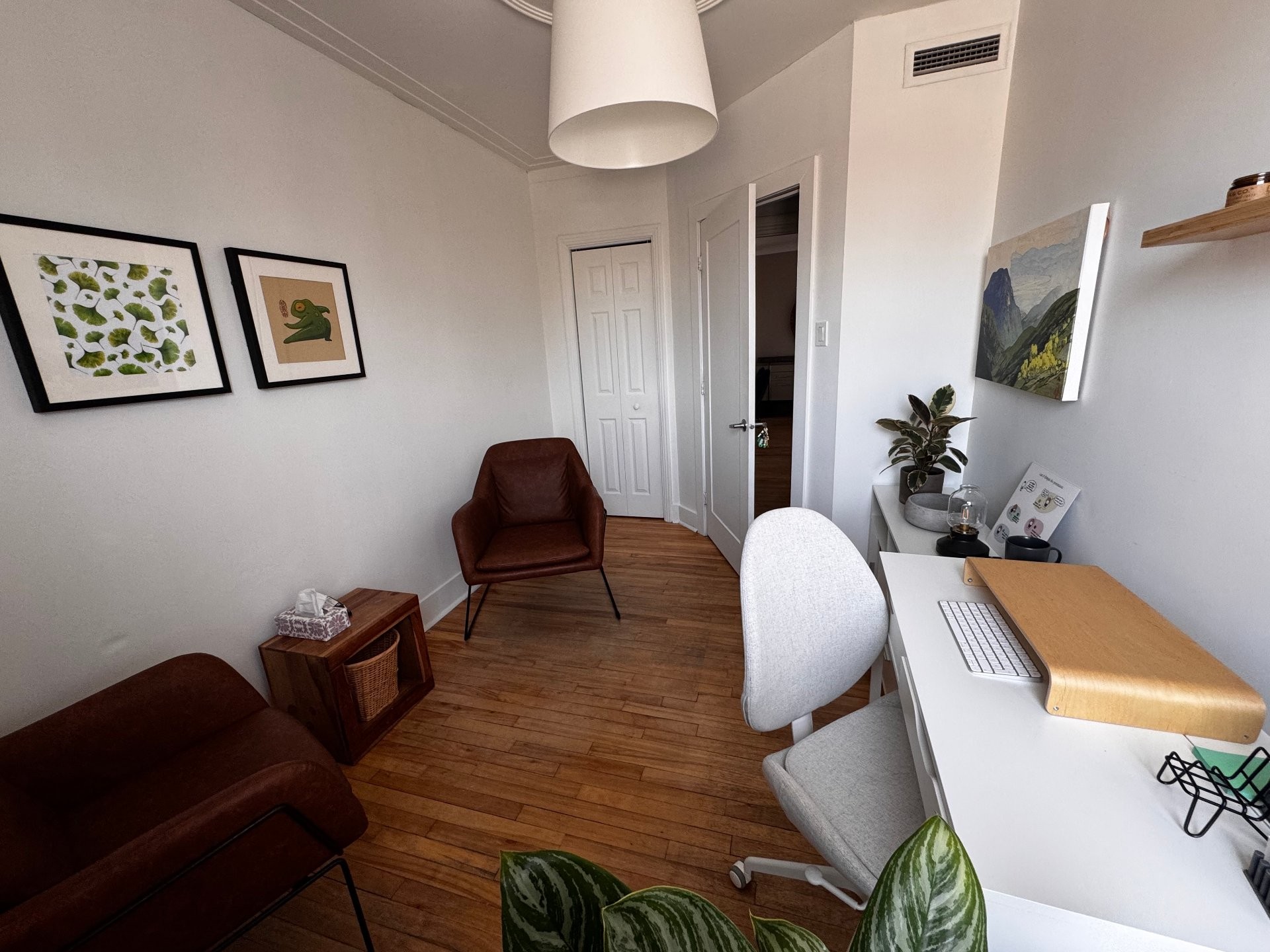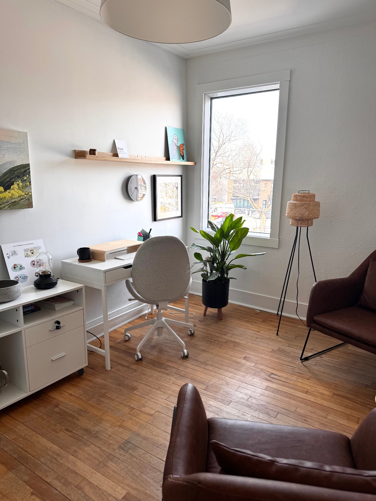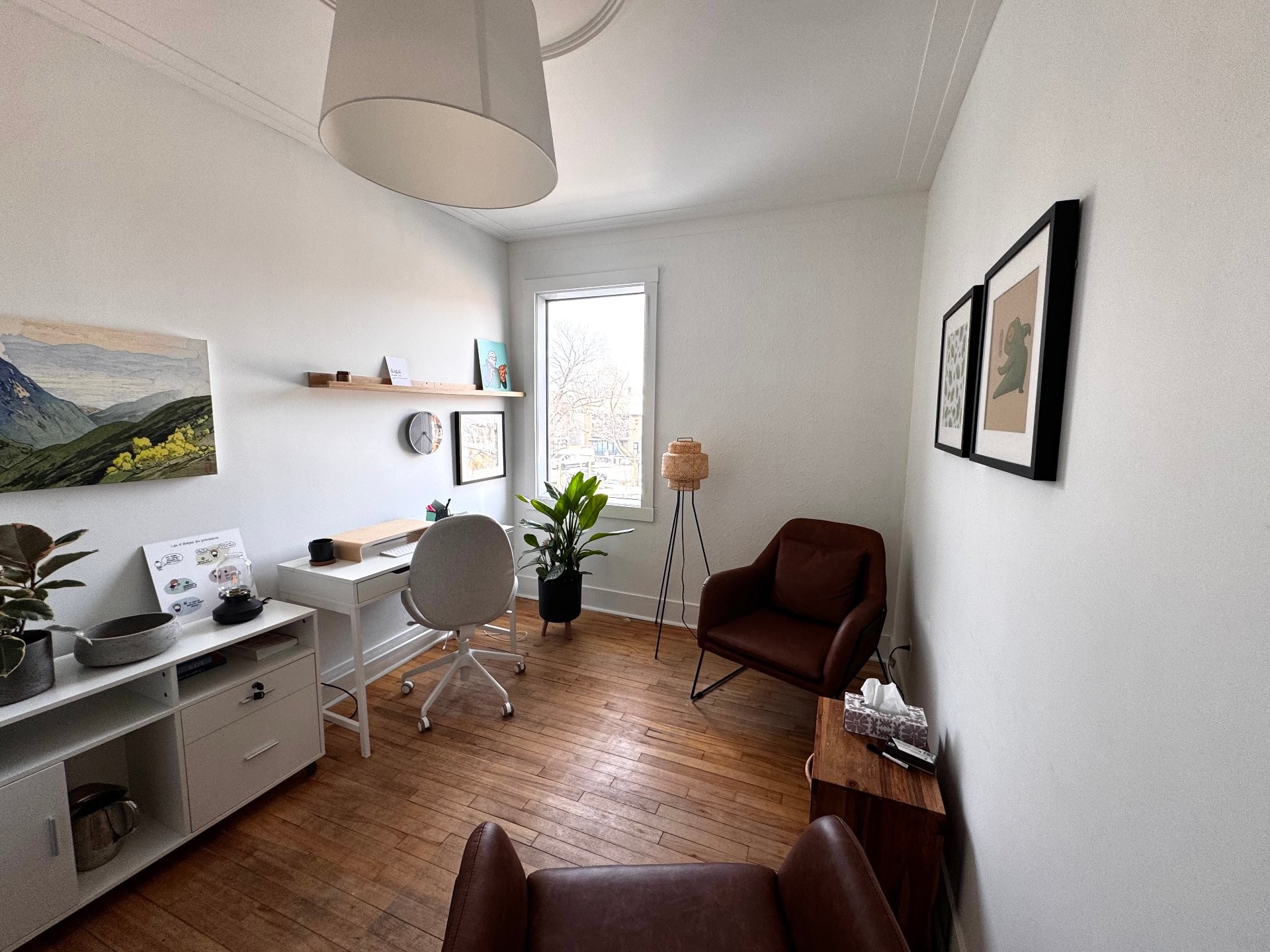 Turnkey office for rent at the core of Vieux-Longueuil in a charming building right in front of St-Mark Park. Give your company great exposure at an affordable price. This space offers an abundance of natural light. Perfect for an office space, retail, storage or a service center. Co-Work Style with modern common areas (waiting room, conference room, terrace).