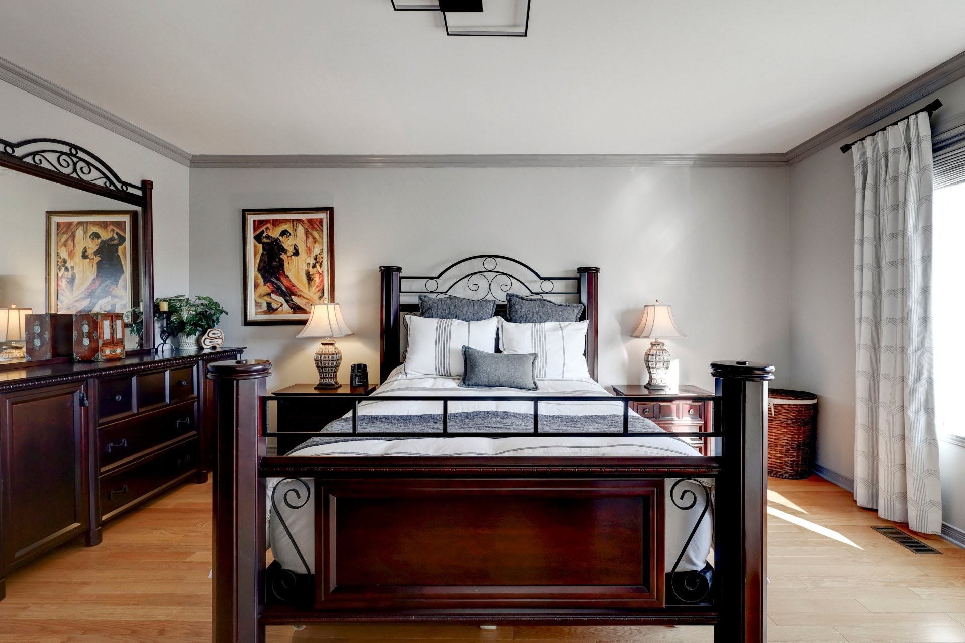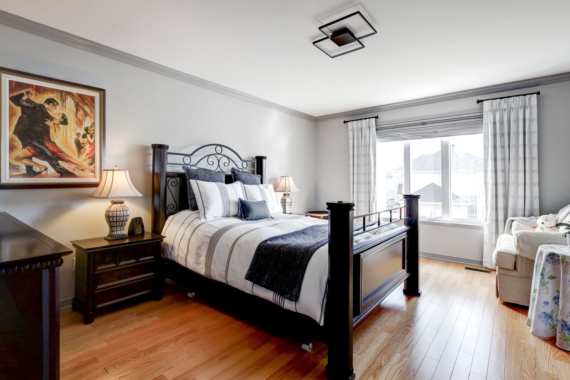 Turnkey brick beauty backing on to a green space. The property features 4+2 bedrooms, 3.5 bathrooms, fully loaded kitchen with granite counters open to you spacious dinette, main floor family room with fireplace, the upper level features a large landing and four bedrooms. One of which is on its own level. The finished basement is comprised of a large playroom, full bathroom and two bedrooms. Meticulously landscaped with a paviuni patio and large deck with covered pergola overlooking a green space. Live on a family friendly street within walking distance to the REM. Proudly maintained by the original owners.