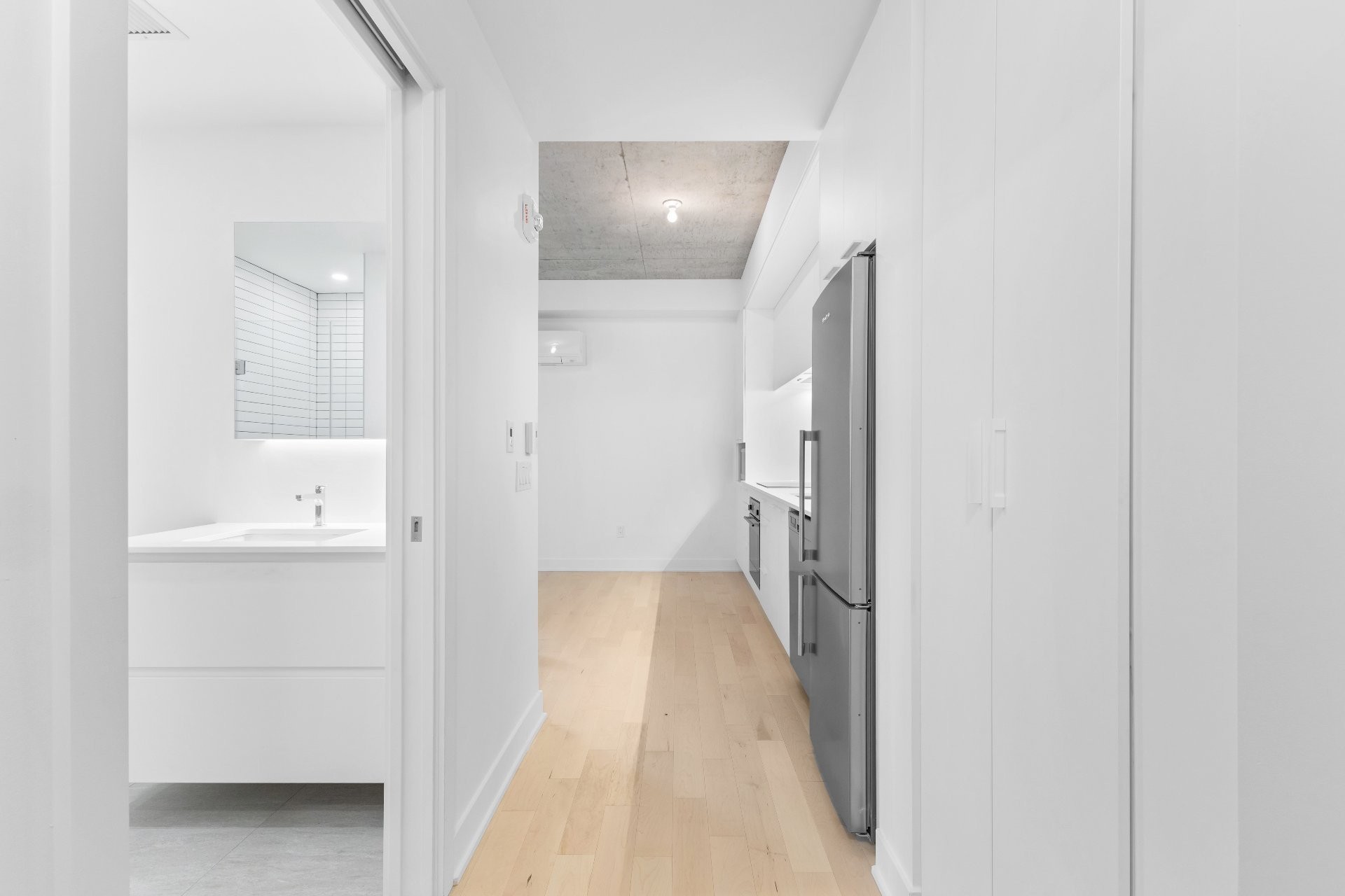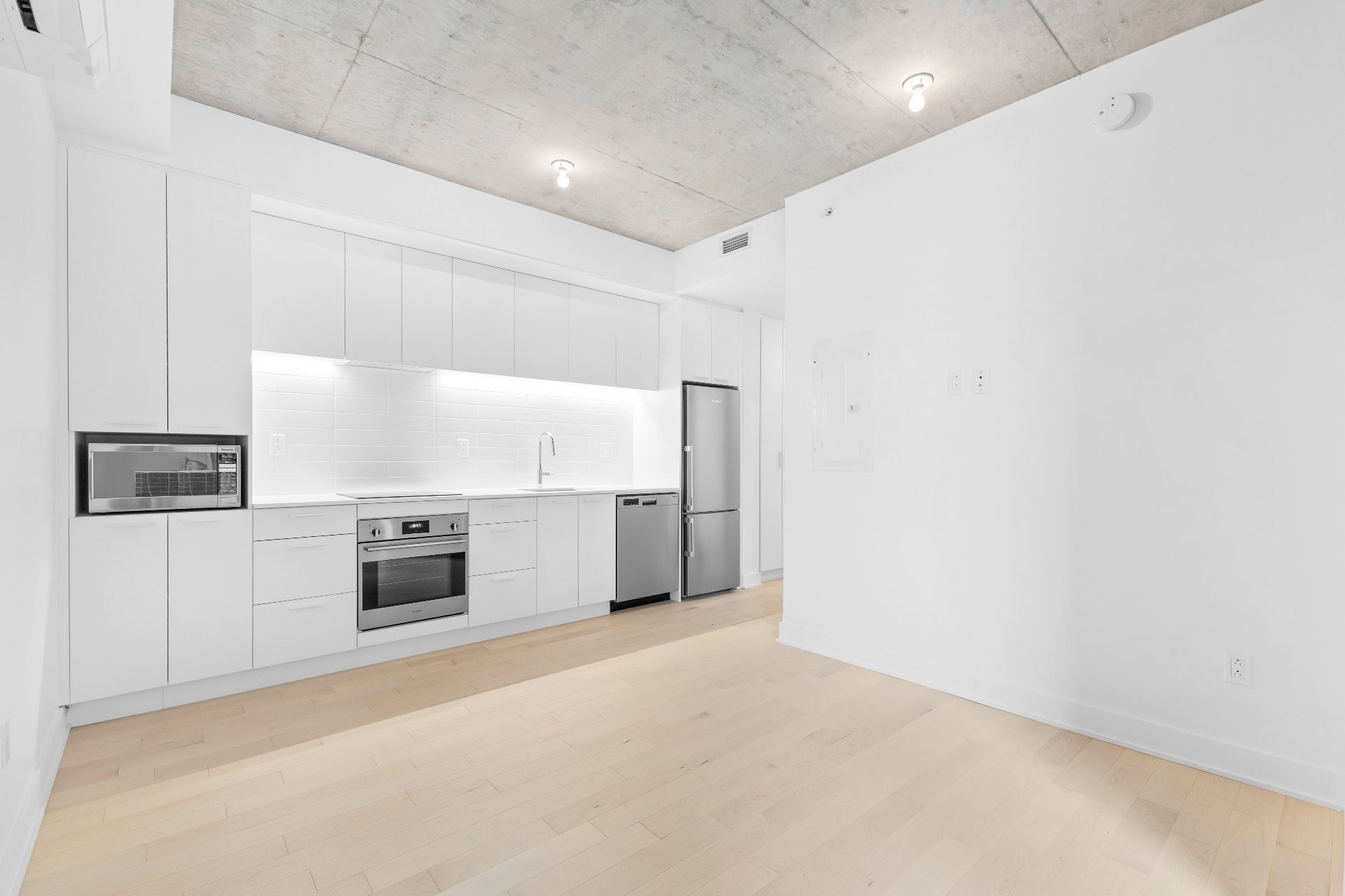 Discover this bright studio with modern, well-finished interiors, located in one of the towers of the Auguste & Louis project, in the heart of the Quartier des Lumières in Ville-Marie.