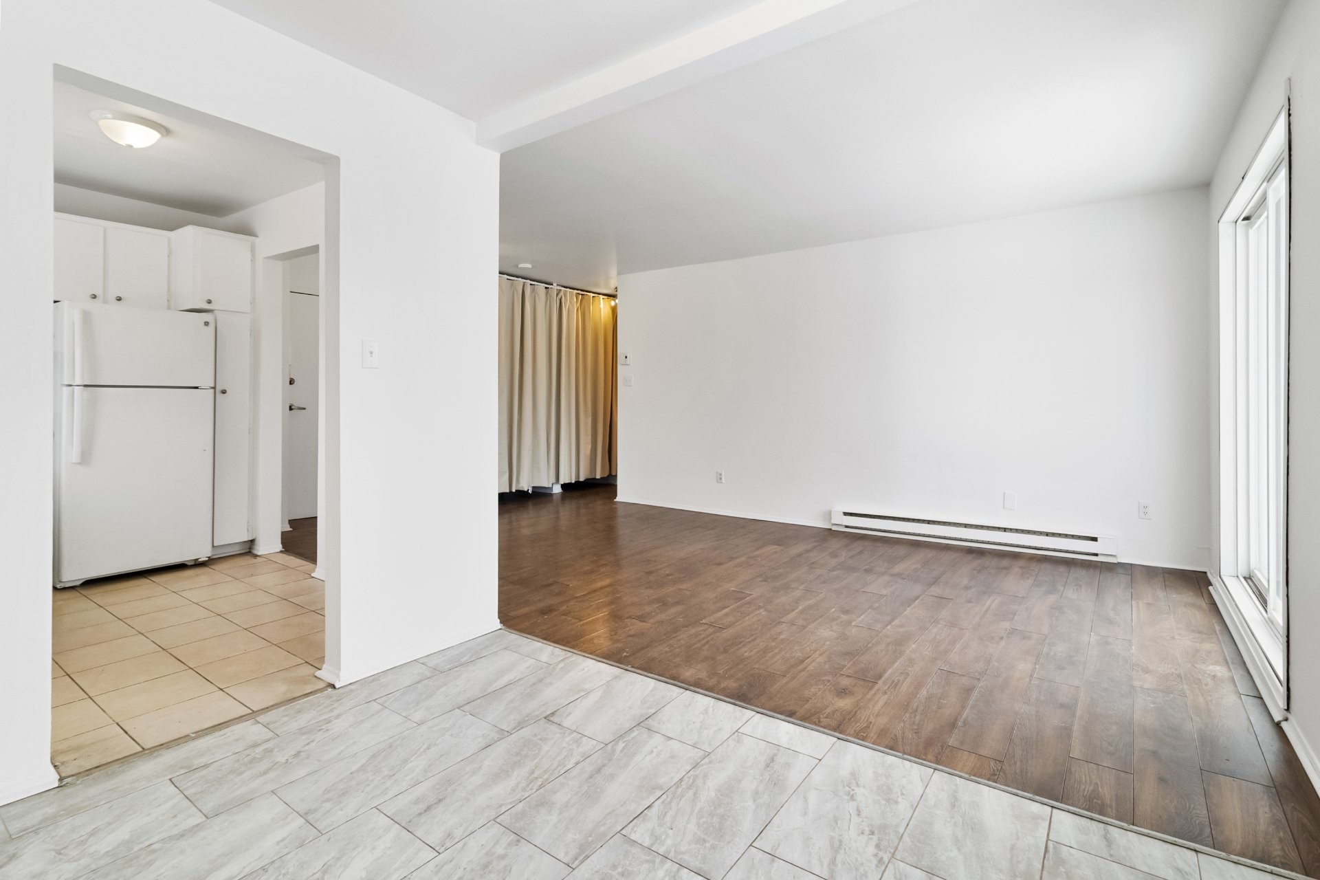Ideally located one-bedroom, one-bath apartment featuring a separate kitchen, dining, and living areas. All utilities included (heating, electricity, hot water). Optional parking available for an extra $60 per month. Steps from shops, restaurants, groceries, public transit, the REM, and more.