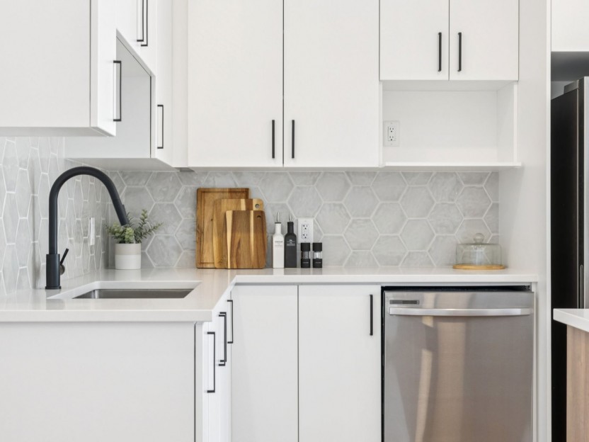 *Full-height ceramic kitchen backsplash