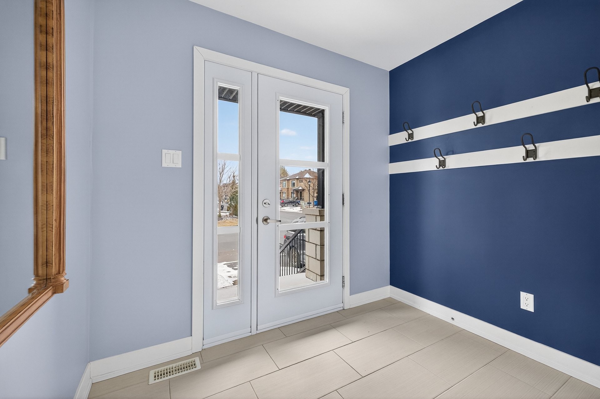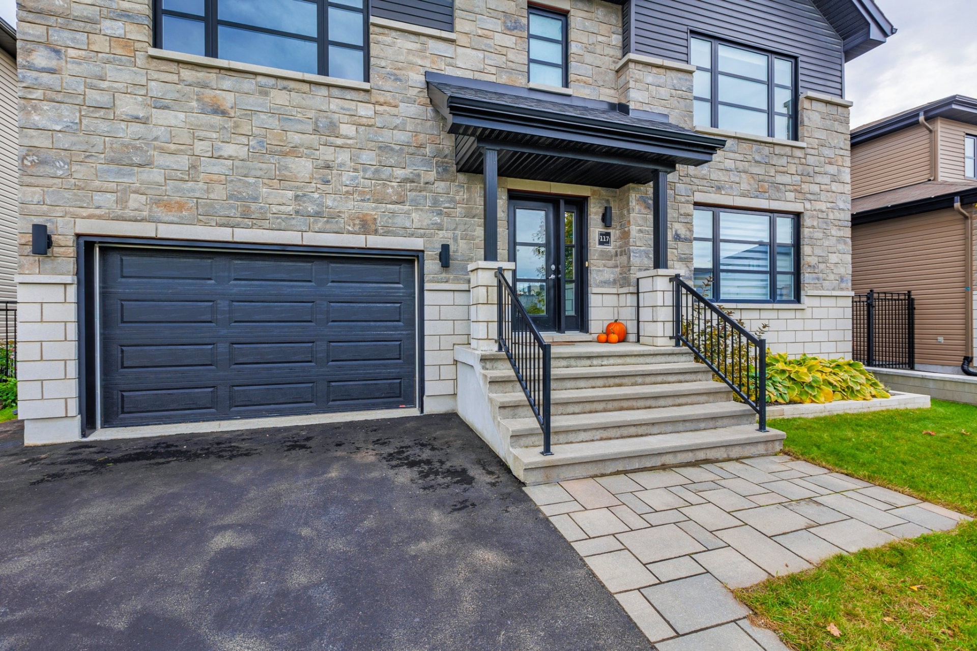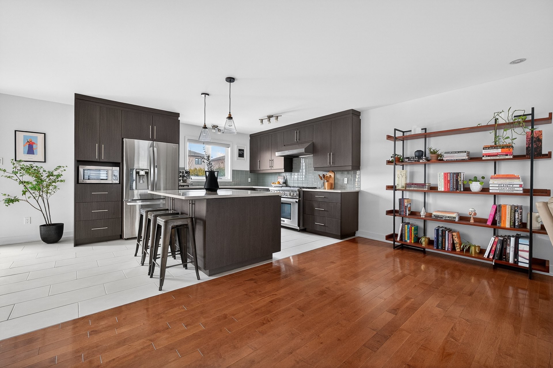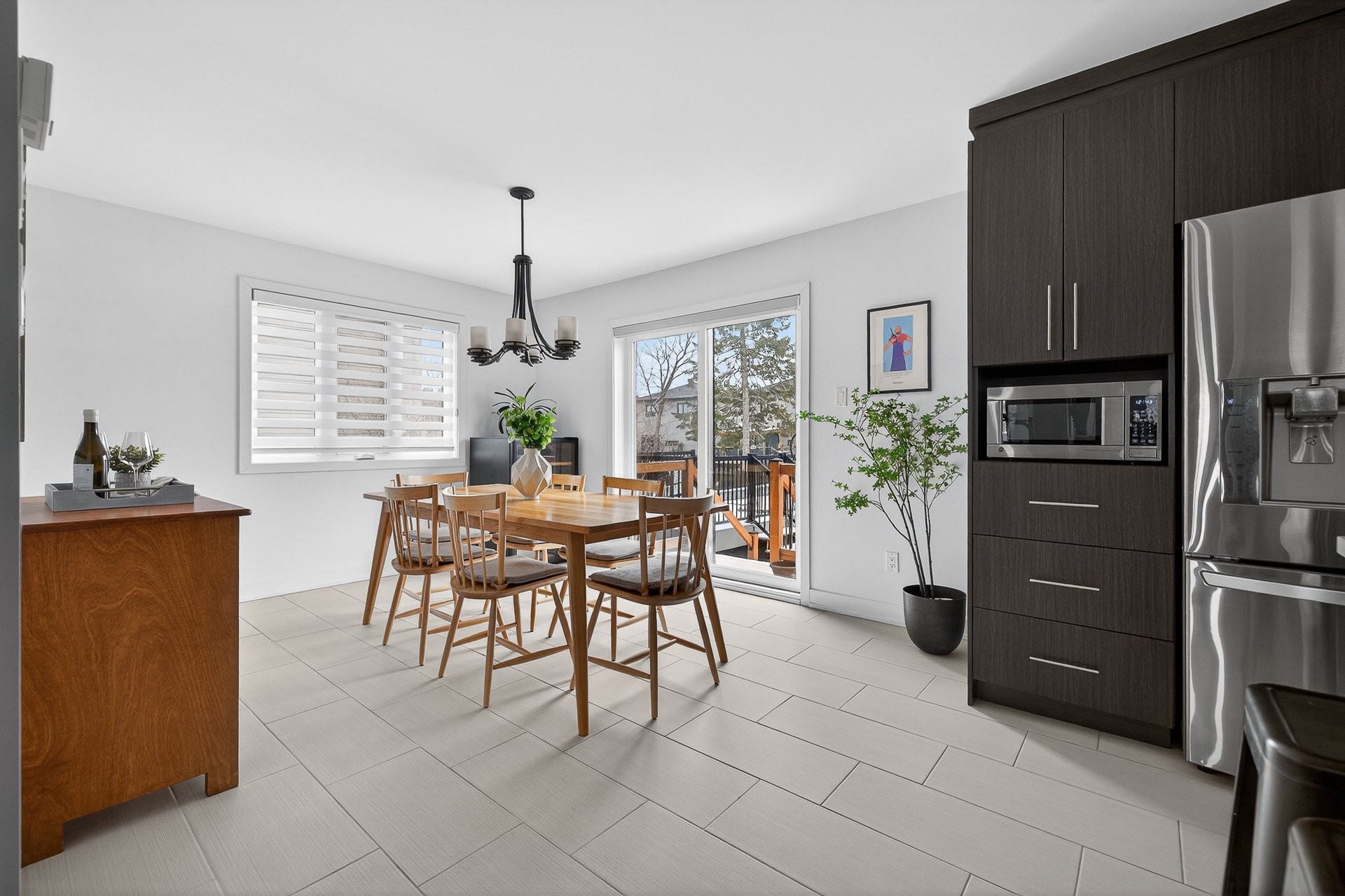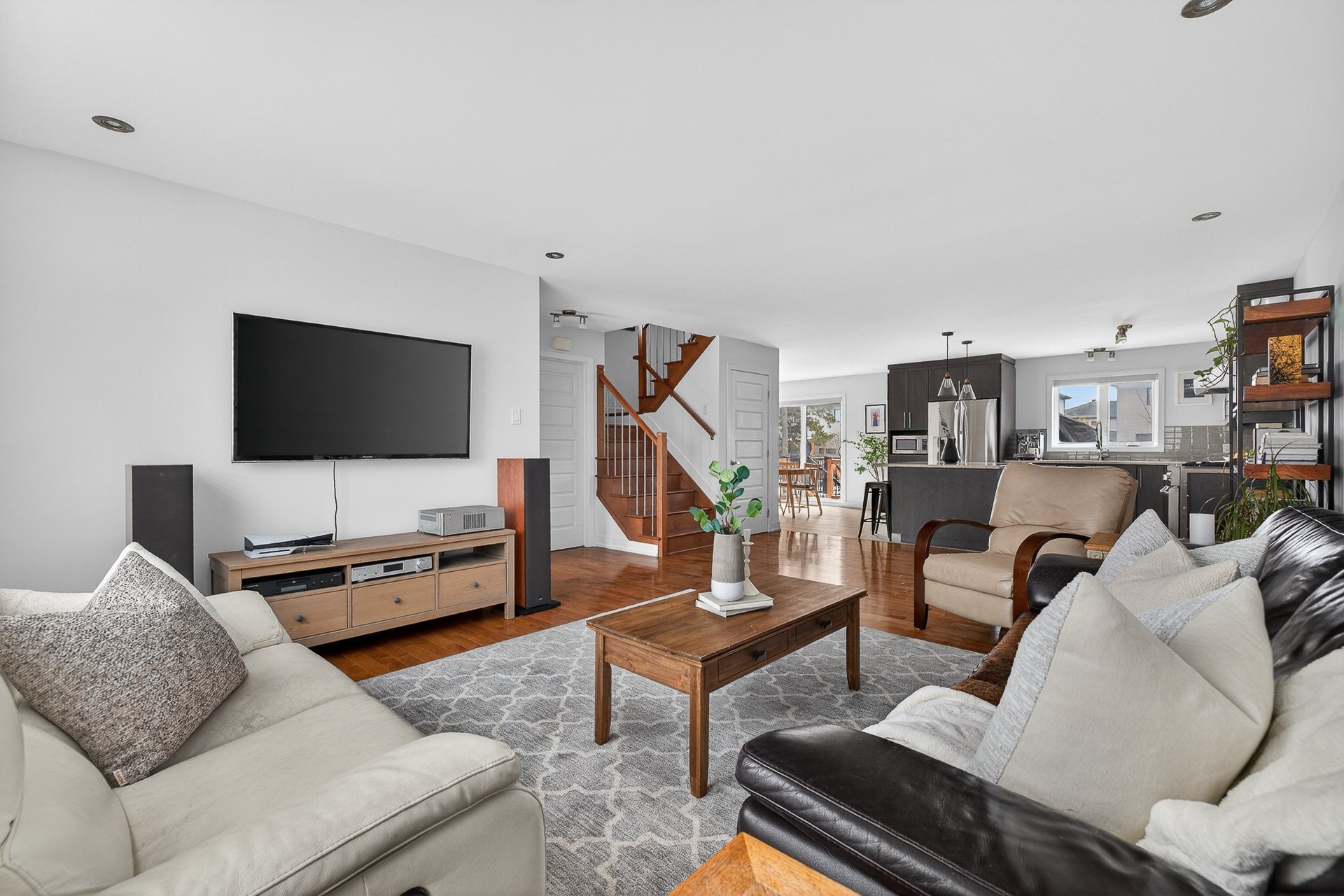 Stunning two-story home offering space, light, and comfort for the whole family! From the moment you enter, a foyer with beautiful French doors floods the space with natural light. The main floor features an open and inviting living area: a spacious, light-filled living room, a corner kitchen with floor-to-ceiling cabinetry, an elegant ceramic backsplash, and an impressive central island that seats three, all opening onto a dining room with patio doors leading to the backyard. A powder room completes this level.