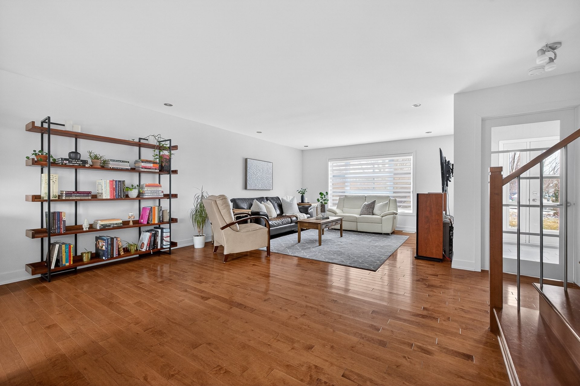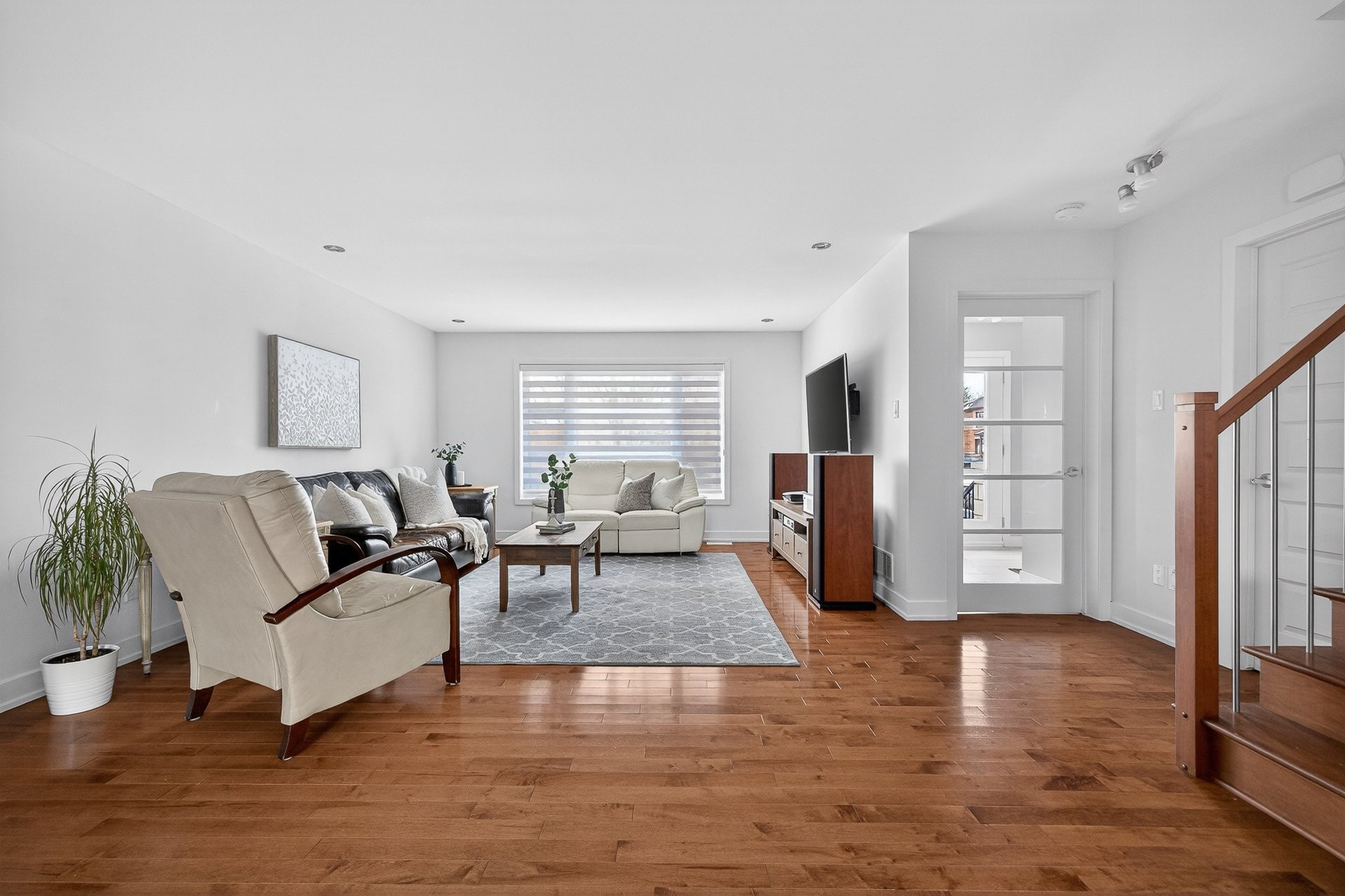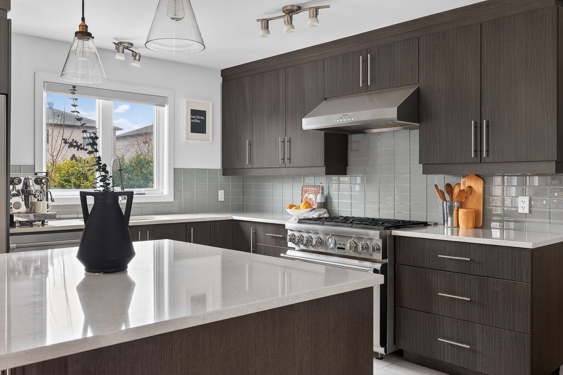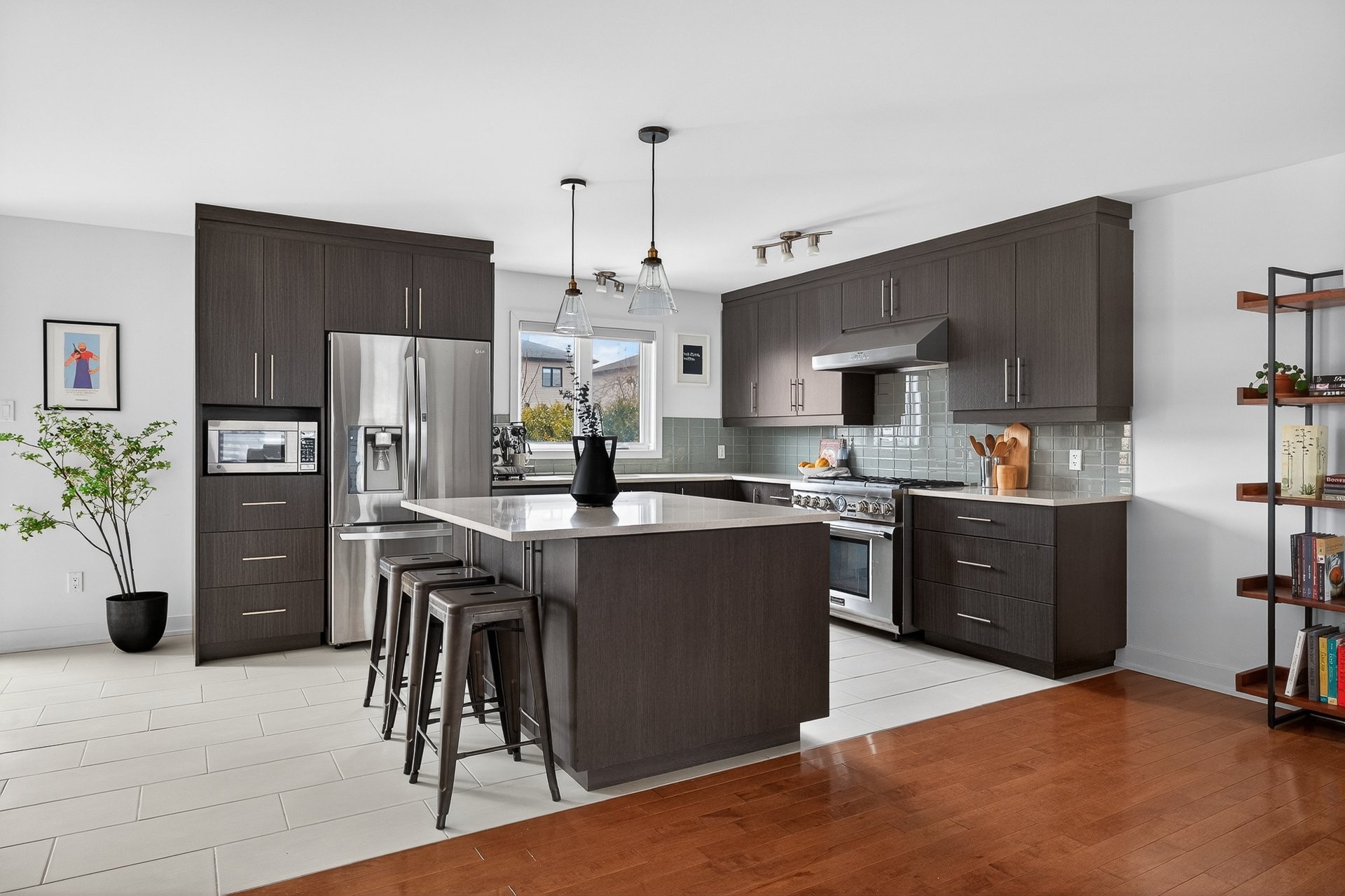 Stunning two-story home offering space, light, and comfort for the whole family! From the moment you enter, a foyer with beautiful French doors floods the space with natural light. The main floor features an open and inviting living area: a spacious, light-filled living room, a corner kitchen with floor-to-ceiling cabinetry, an elegant ceramic backsplash, and an impressive central island that seats three, all opening onto a dining room with patio doors leading to the backyard. A powder room completes this level.