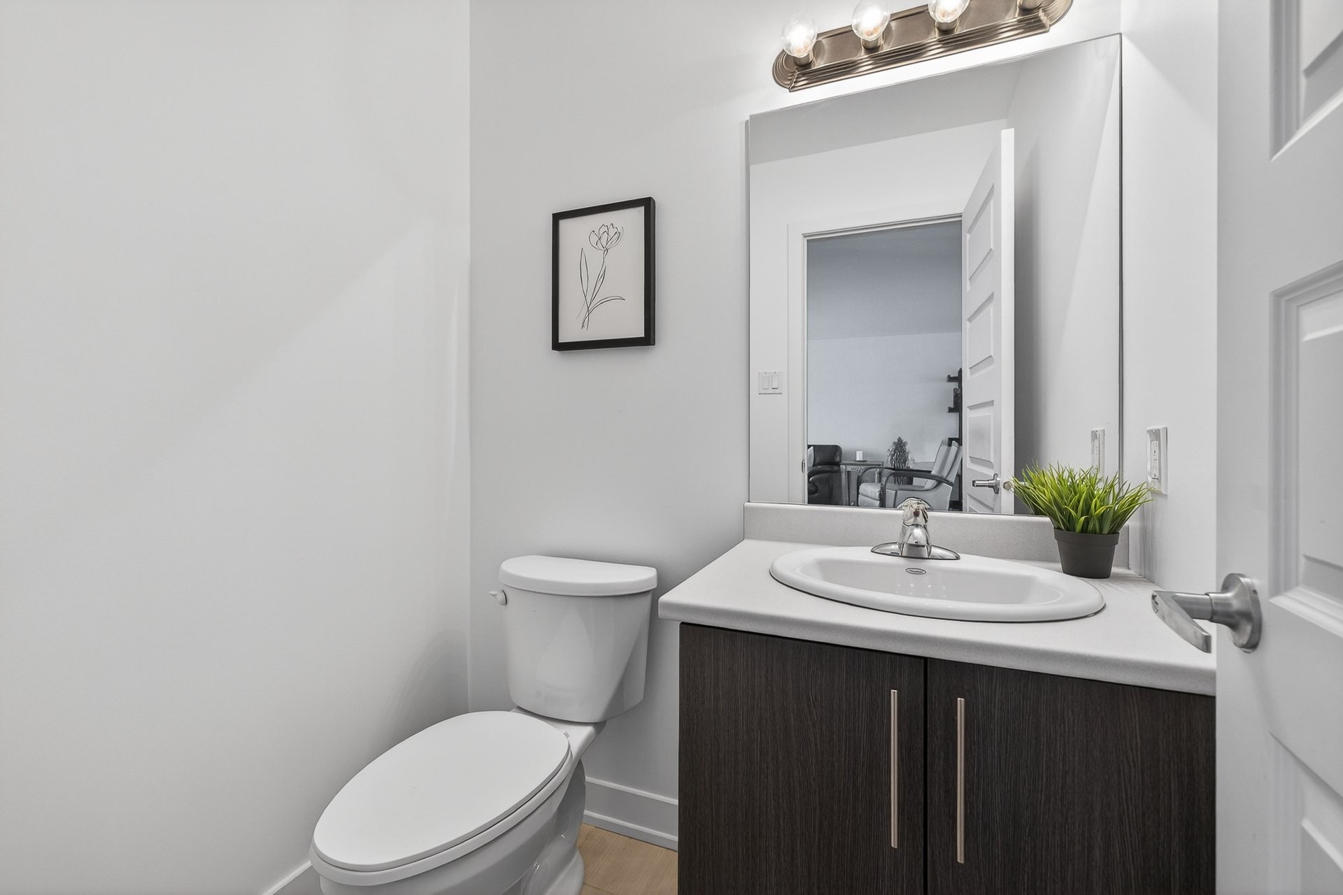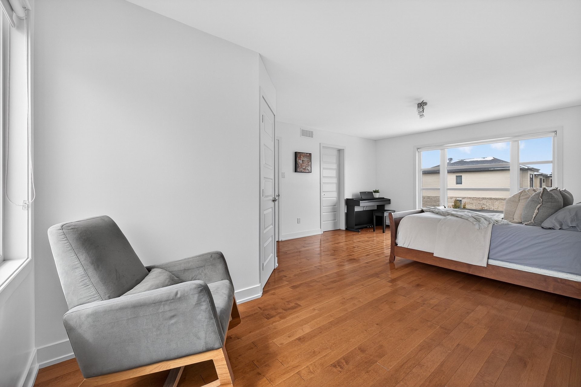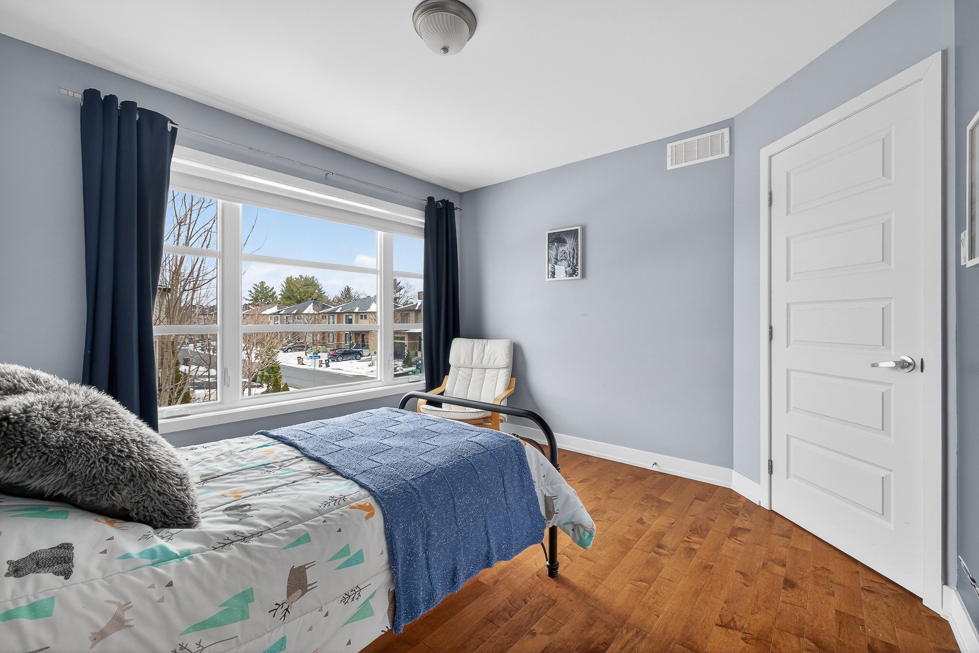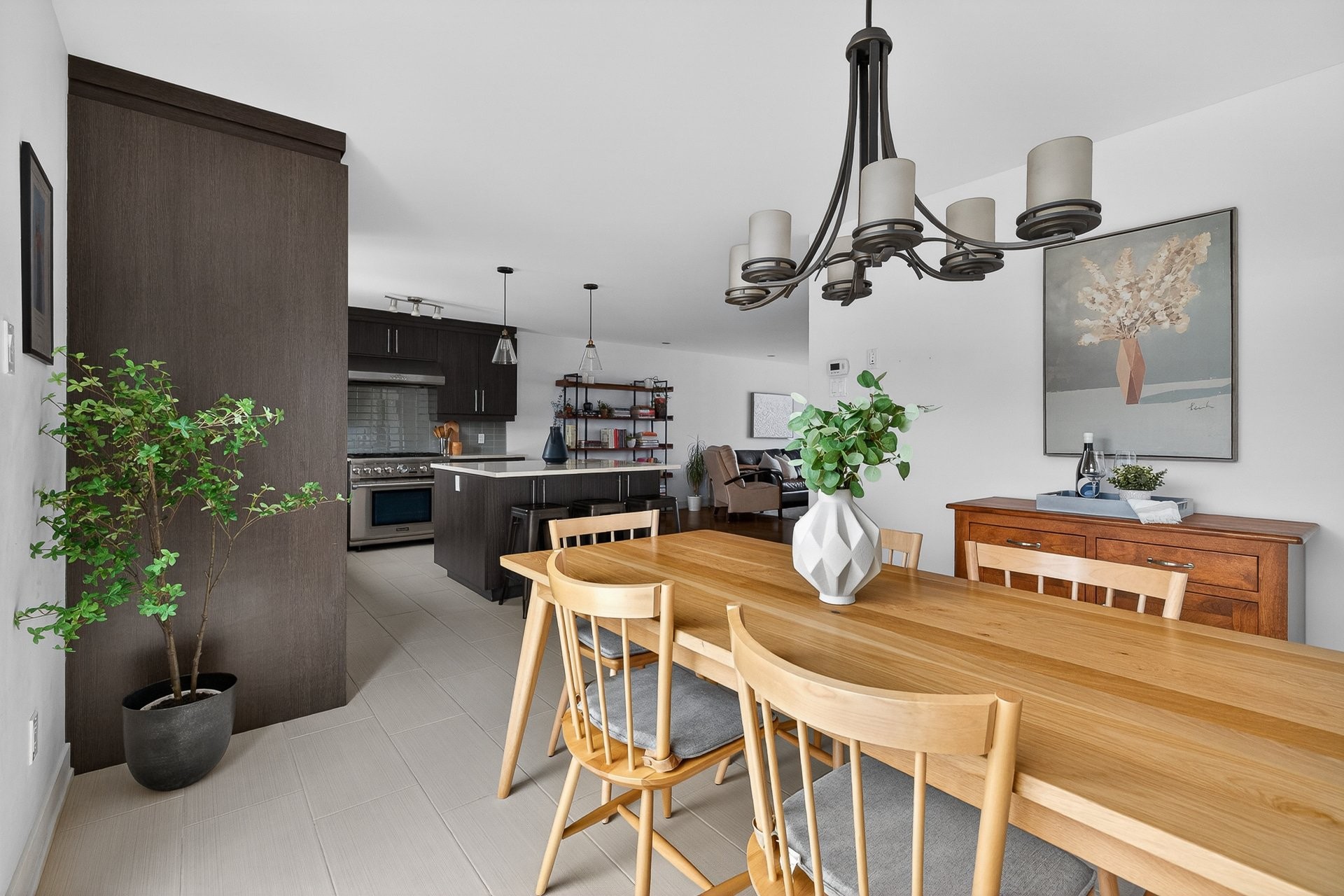 Stunning two-story home offering space, light, and comfort for the whole family! From the moment you enter, a foyer with beautiful French doors floods the space with natural light. The main floor features an open and inviting living area: a spacious, light-filled living room, a corner kitchen with floor-to-ceiling cabinetry, an elegant ceramic backsplash, and an impressive central island that seats three, all opening onto a dining room with patio doors leading to the backyard. A powder room completes this level.