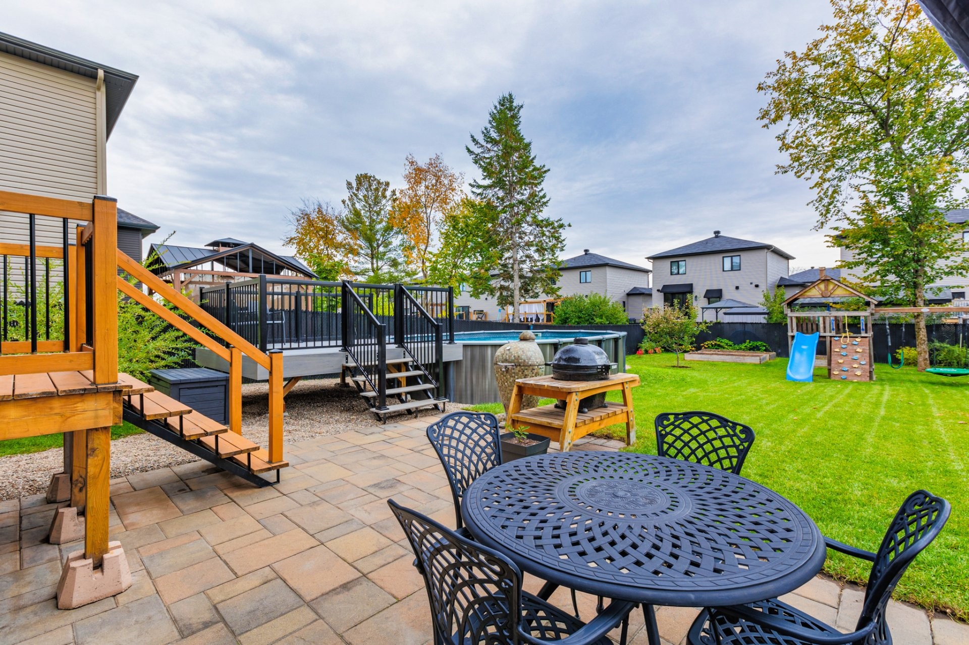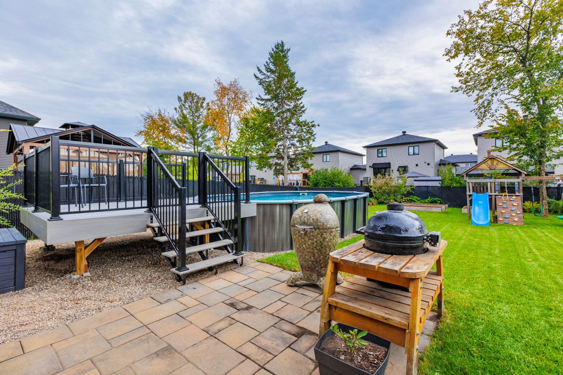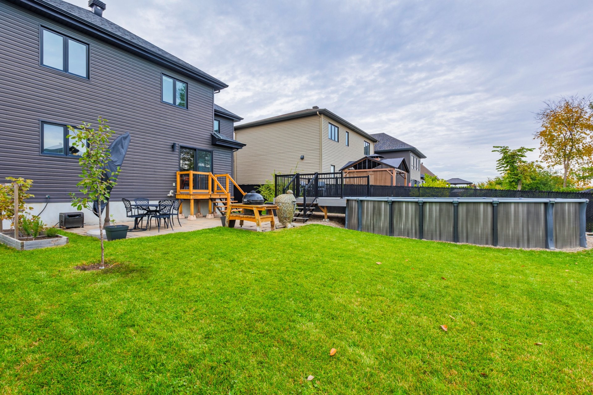 Outside, the fully fenced backyard will charm you with its paved area ideal for dining and BBQs, its semi-inground pool with deck, and several landscaping possibilities: fire pit, play area, or garden. A true haven to fully enjoy the warmer months!