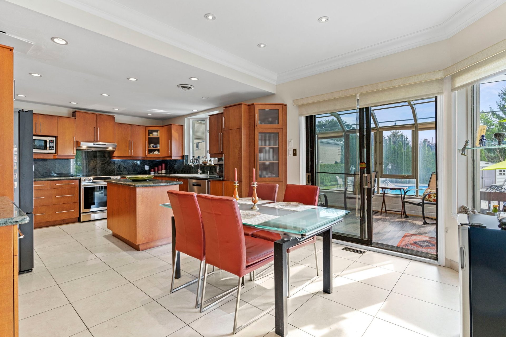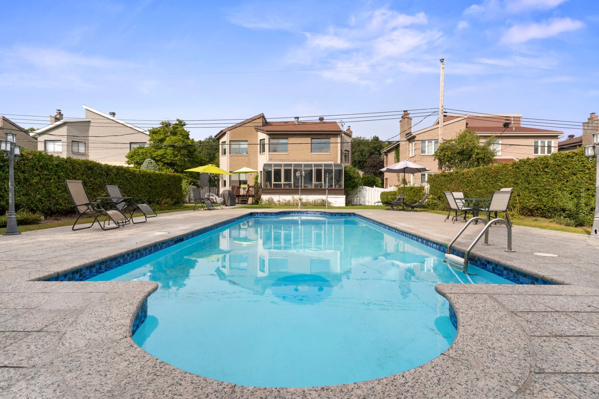 First time on the market in nearly 40 years, spacious 4+1 bedroom home, perfectly situated on a sprawling south-west facing 12,150 sq. ft. double lot. This property boasts a classic kitchen that seamlessly flows into a sun-lit 3-season solarium, perfect for relaxing and entertaining. The backyard is your very own private oasis with an oversized inground 43'x16' saltwater pool with an outdoor shower, bordered by mature hedges for complete privacy. Enjoy a fully finished basement with an additional bedroom, bathroom and wine cellar. Includes a new furnace and heatpump. Don't delay!