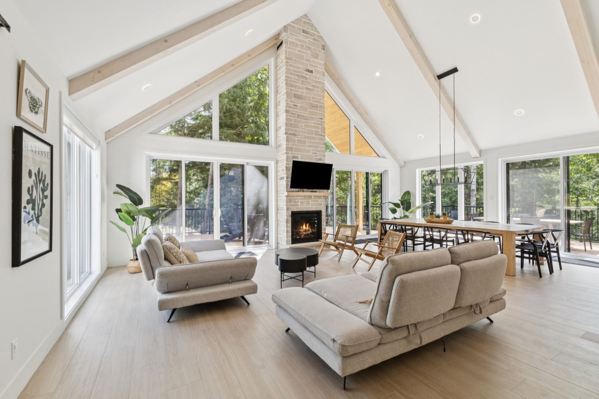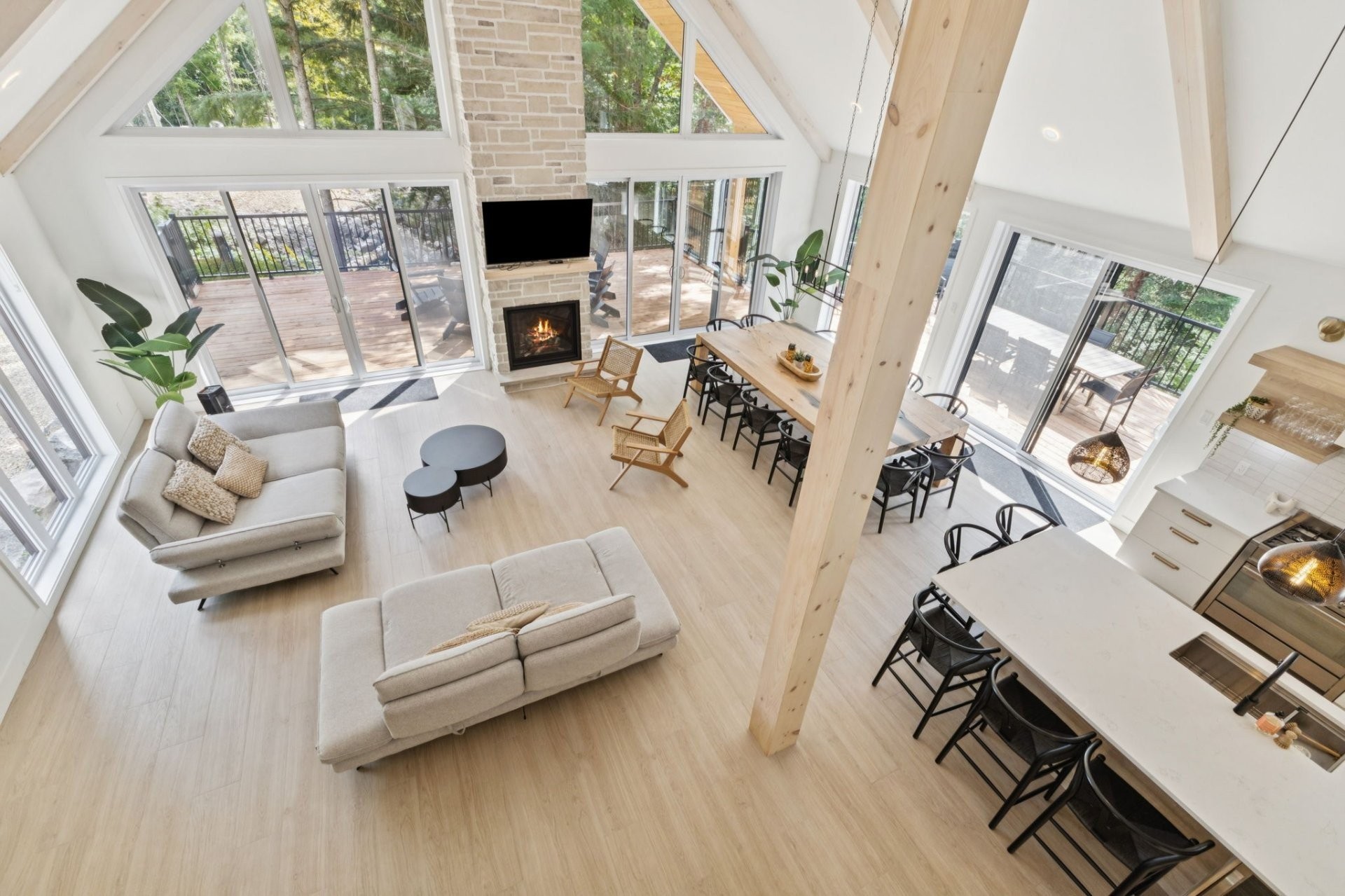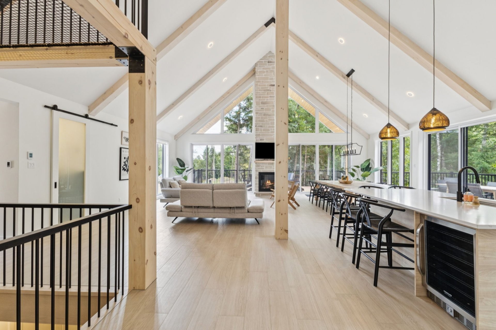 * Living area with impressive cathedral ceilings