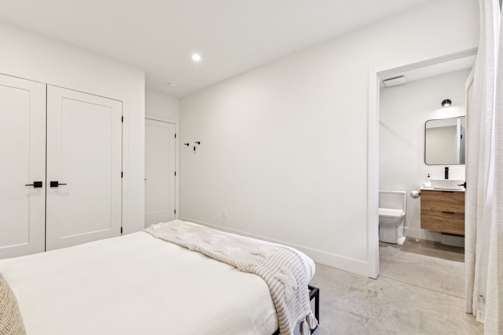 * Quartz countertops and heated concrete floors (on the garden level)