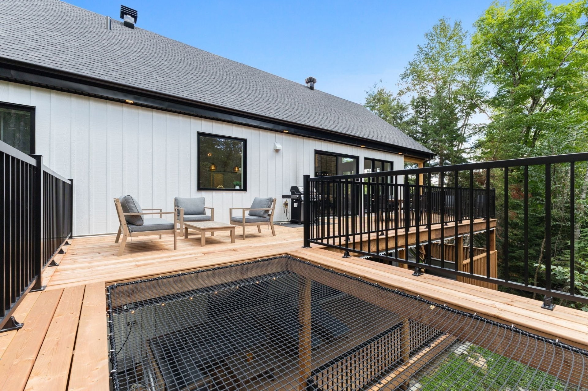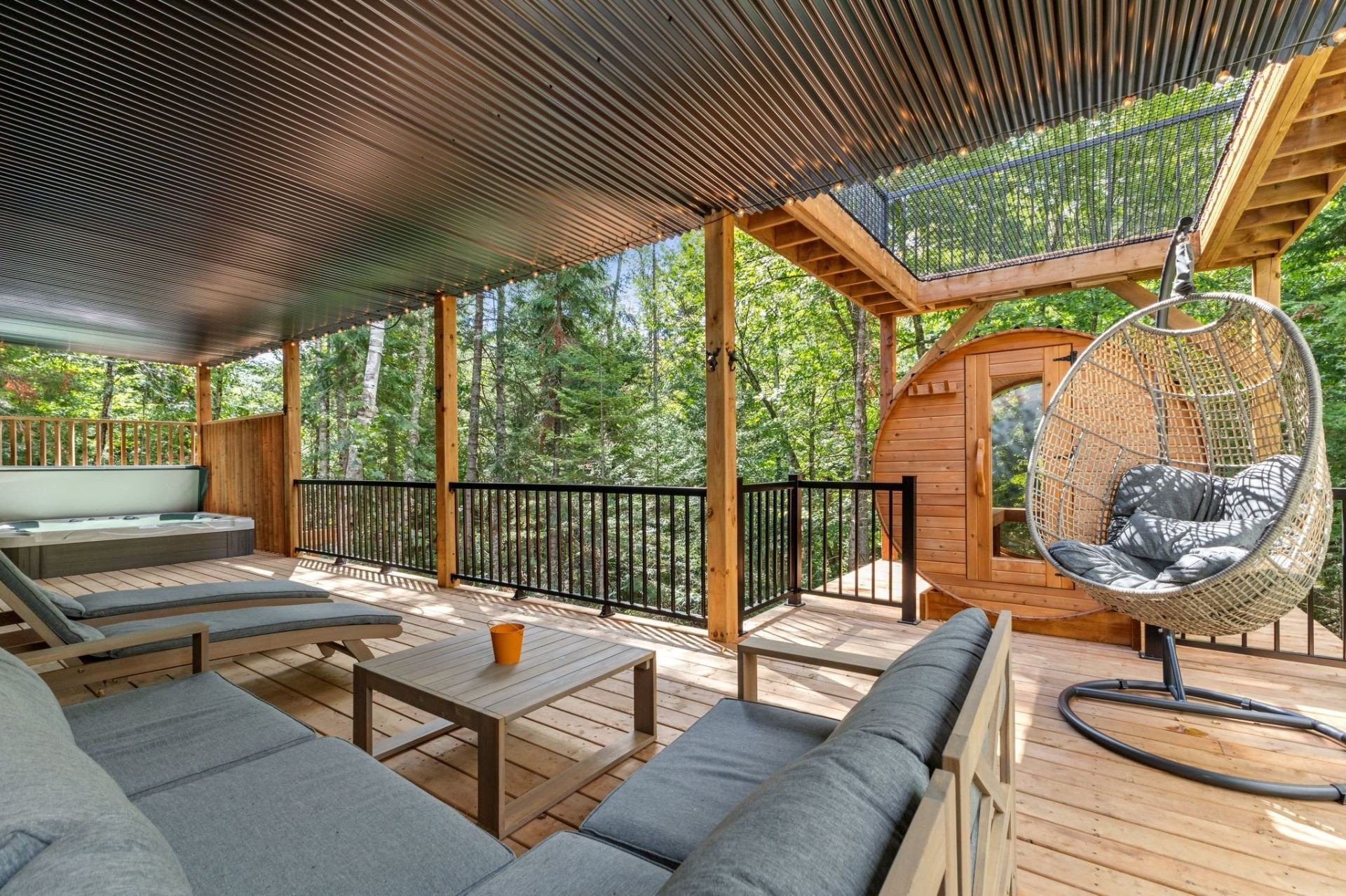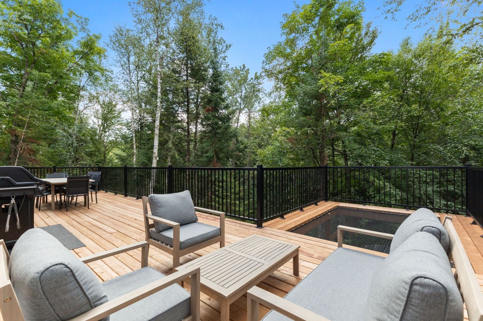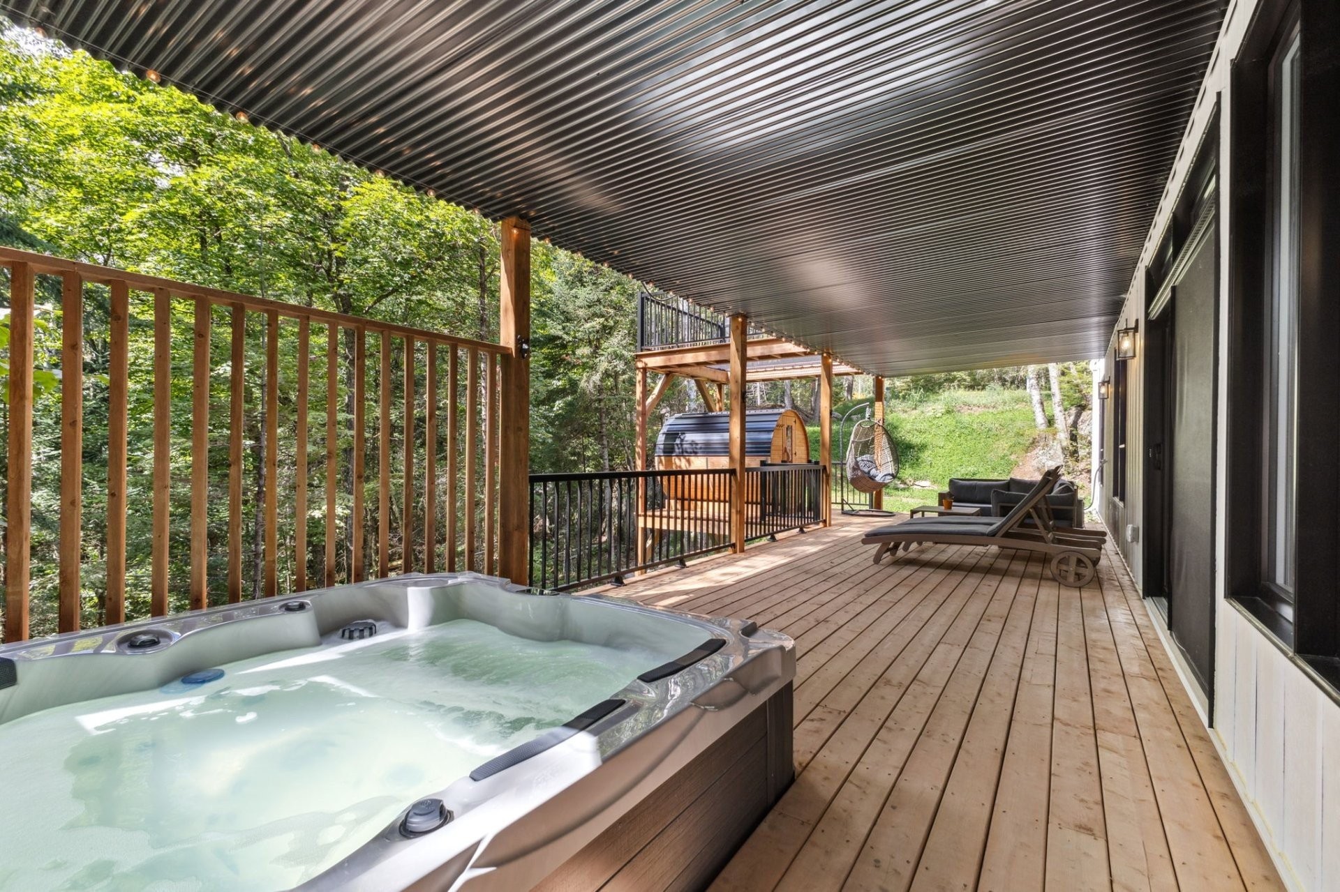 Jacuzzi, 1 wall-mounted heat pump, wooden deck, cathedral ceiling, outlet for electric cars.