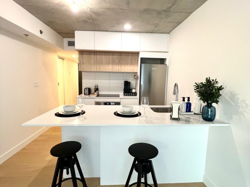 Condo haut de gamme, luxueux, 2 chambres, 2 salles de bain, unité de coin. Très lumineux et ENTIÈREMENT MEUBLÉ au milieu du centre-ville et...