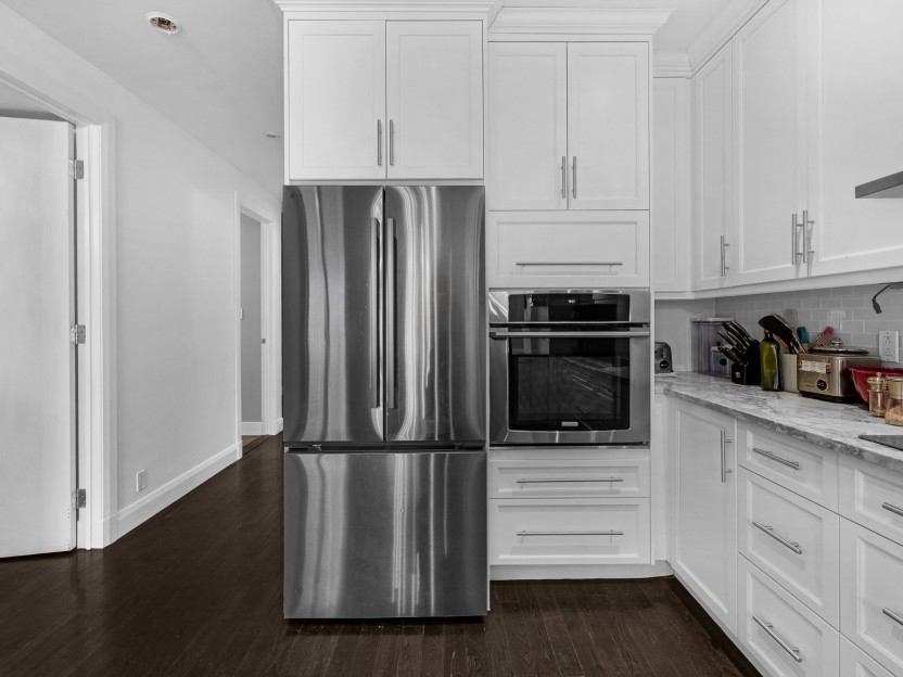 Fabulous 1-bedroom condo located in a boutique New York-style building in the heart of Shaughnessy Village. This bright and quiet unit offers high ceilings, superior soundproofing, and quality construction throughout. Large windows flood the living area with natural light, with nearly a full wall of windows, and generous windows in the bedroom as well. Features include a designer kitchen with quartz countertops, a spacious bathroom with a bathtub, two large closets, and a uniquely upgraded flooring found nowhere else in the building. The building has an elevator and offers timeless architectural charm with modern peace of mind.