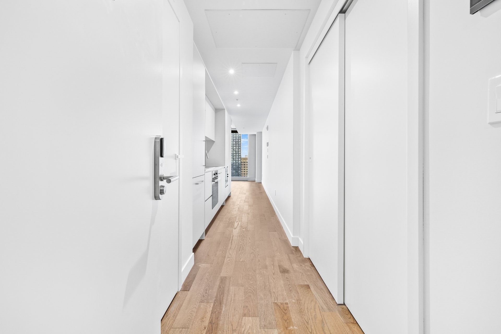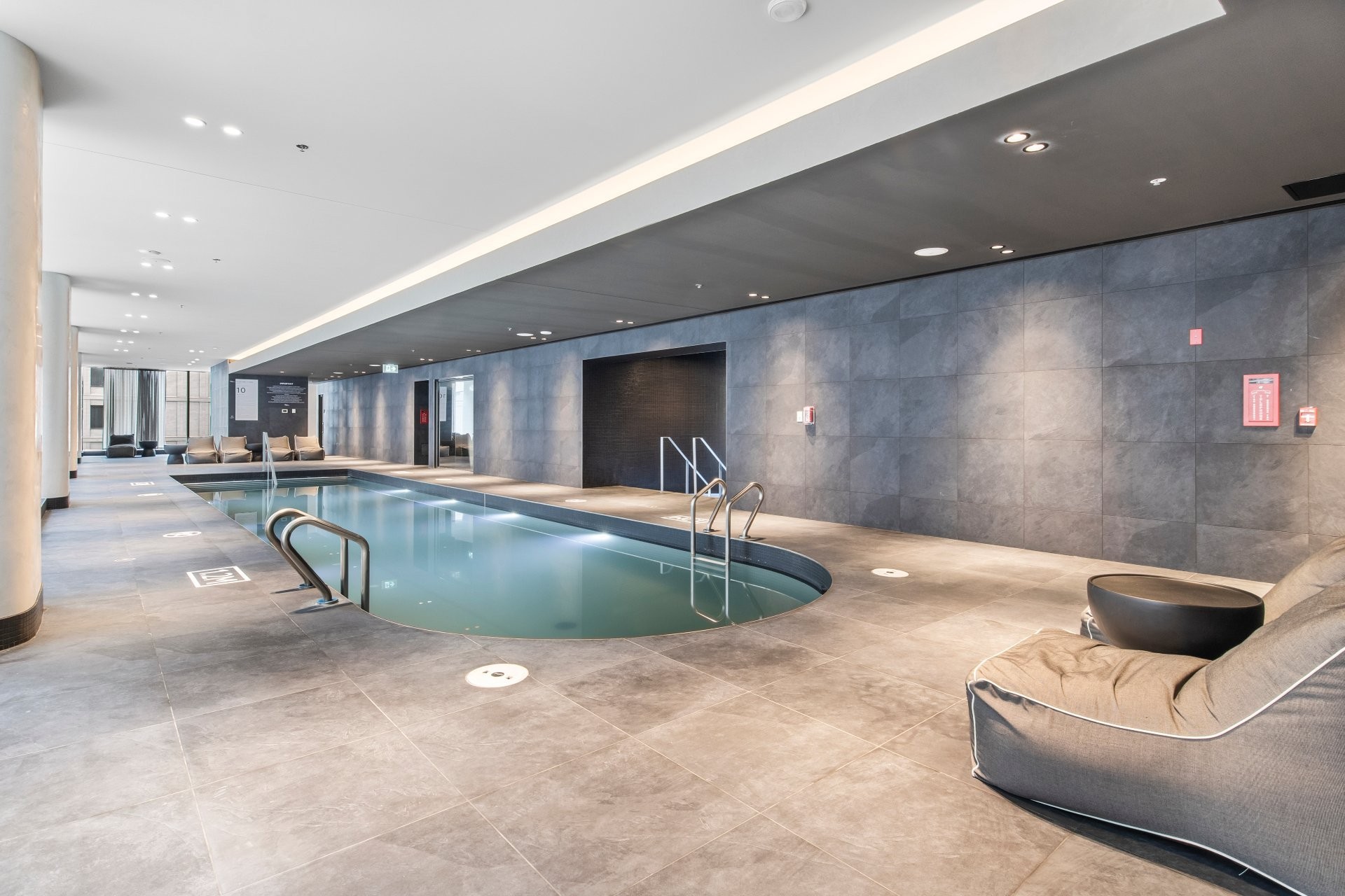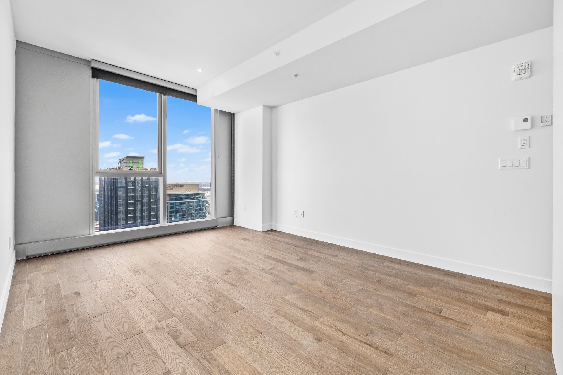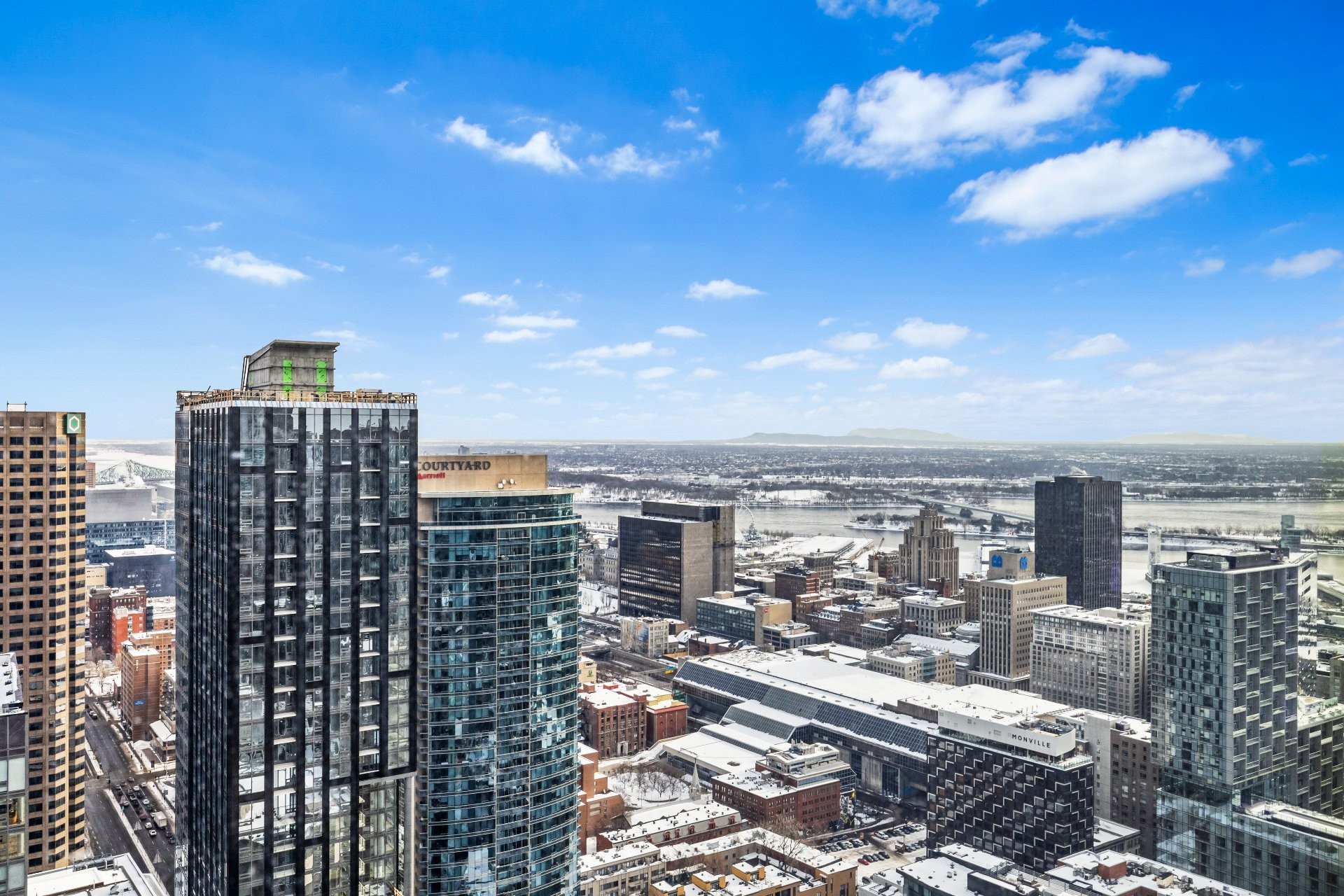 Welcome to 1 Square Phillips, the tallest residential tower in downtown Montreal! This studio on the 43rd floor offers breathtaking views of the city, the Saint Lawrence River, and Montreal's skyline through floor-to-ceiling windows. Enjoy high-end finishes, a modern kitchen with premium appliances, and a heated bathroom floor. Includes a private locker. Residents benefit from luxury amenities: gym, indoor pool, spa, rooftop terrace, cinema, co-working spaces & 24/7 concierge. Steps from McGill, Eaton Centre & metro. Book your visit today!