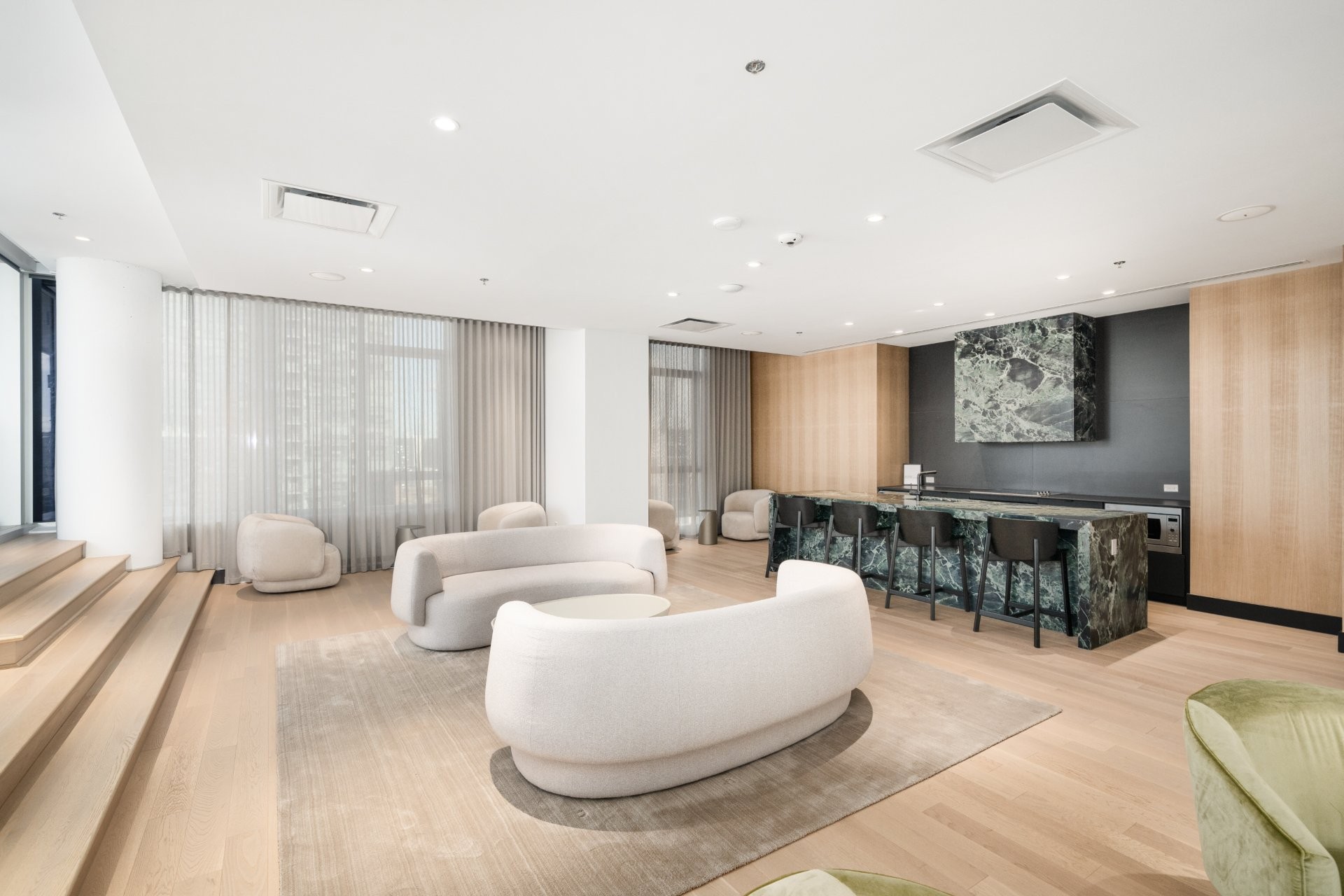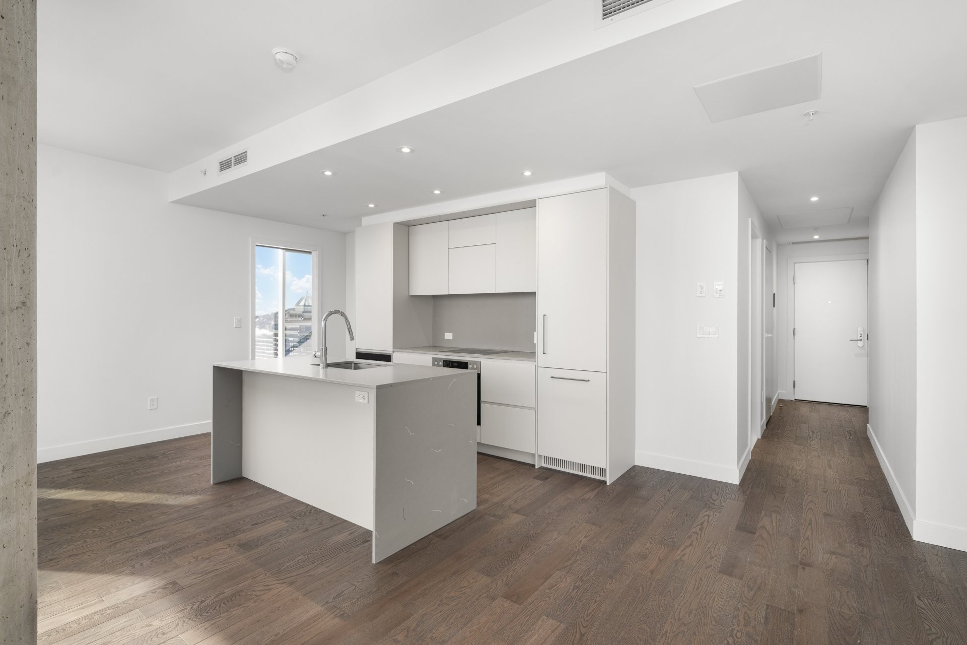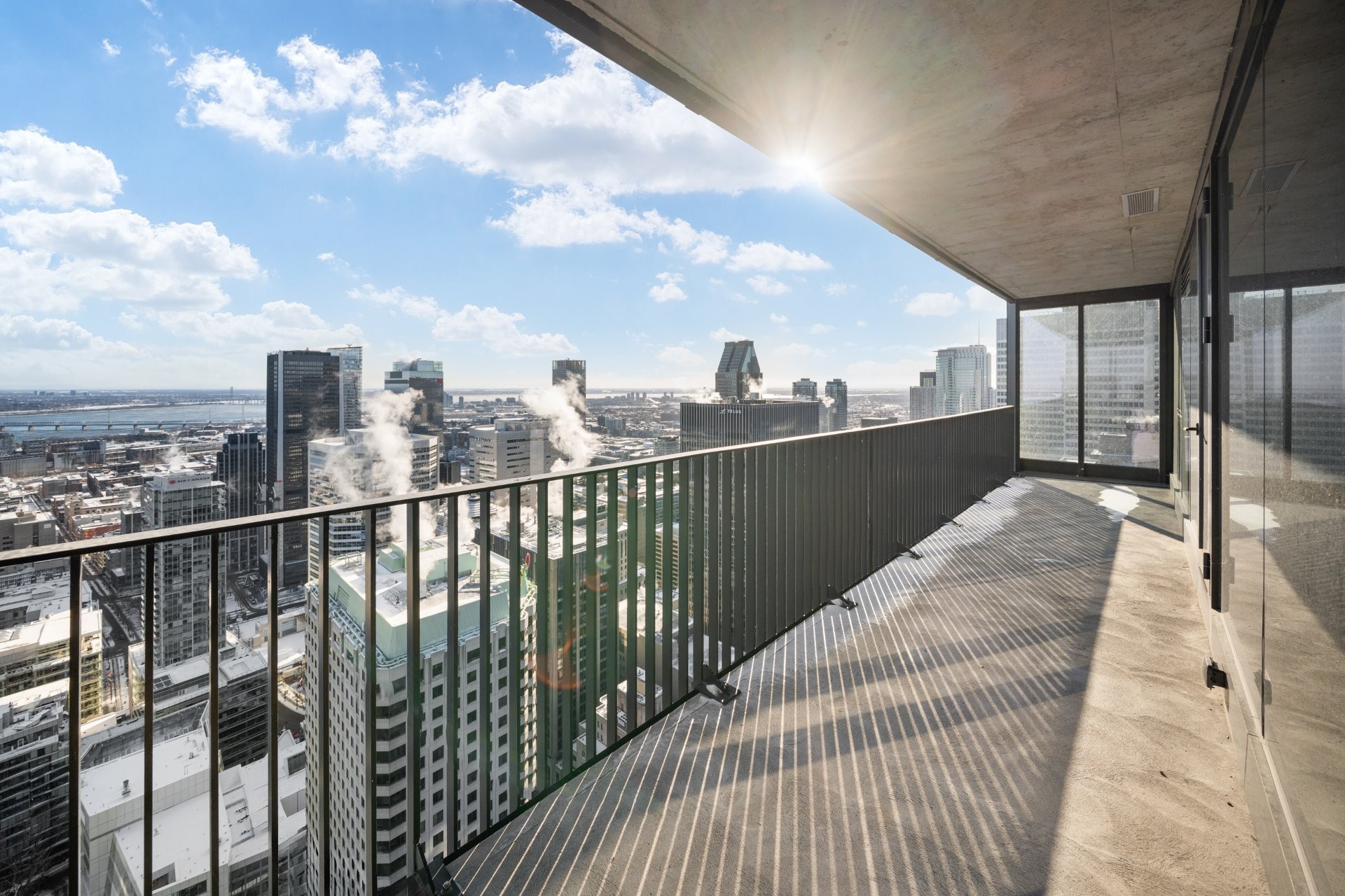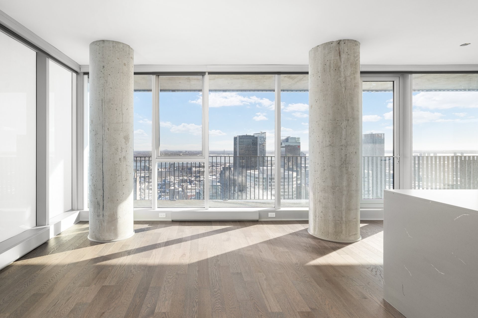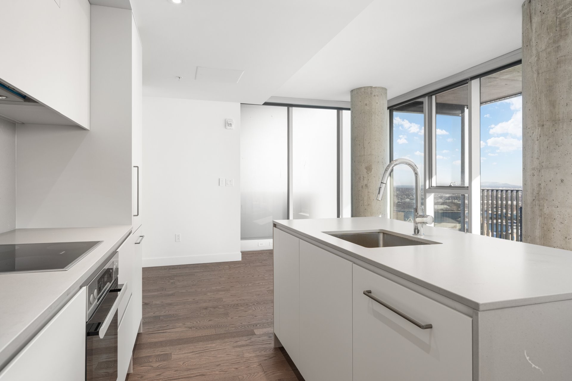 Designed by renowned architect Anik Shooner, senior partner at MSDL Architectes, this condo embodies modern elegance with high ceilings and floor-to-ceiling windows that frame breathtaking panoramic views of the city. Sleek, modern kitchen equipped with top-of-the-line Miele appliances and exquisite quartz countertops.