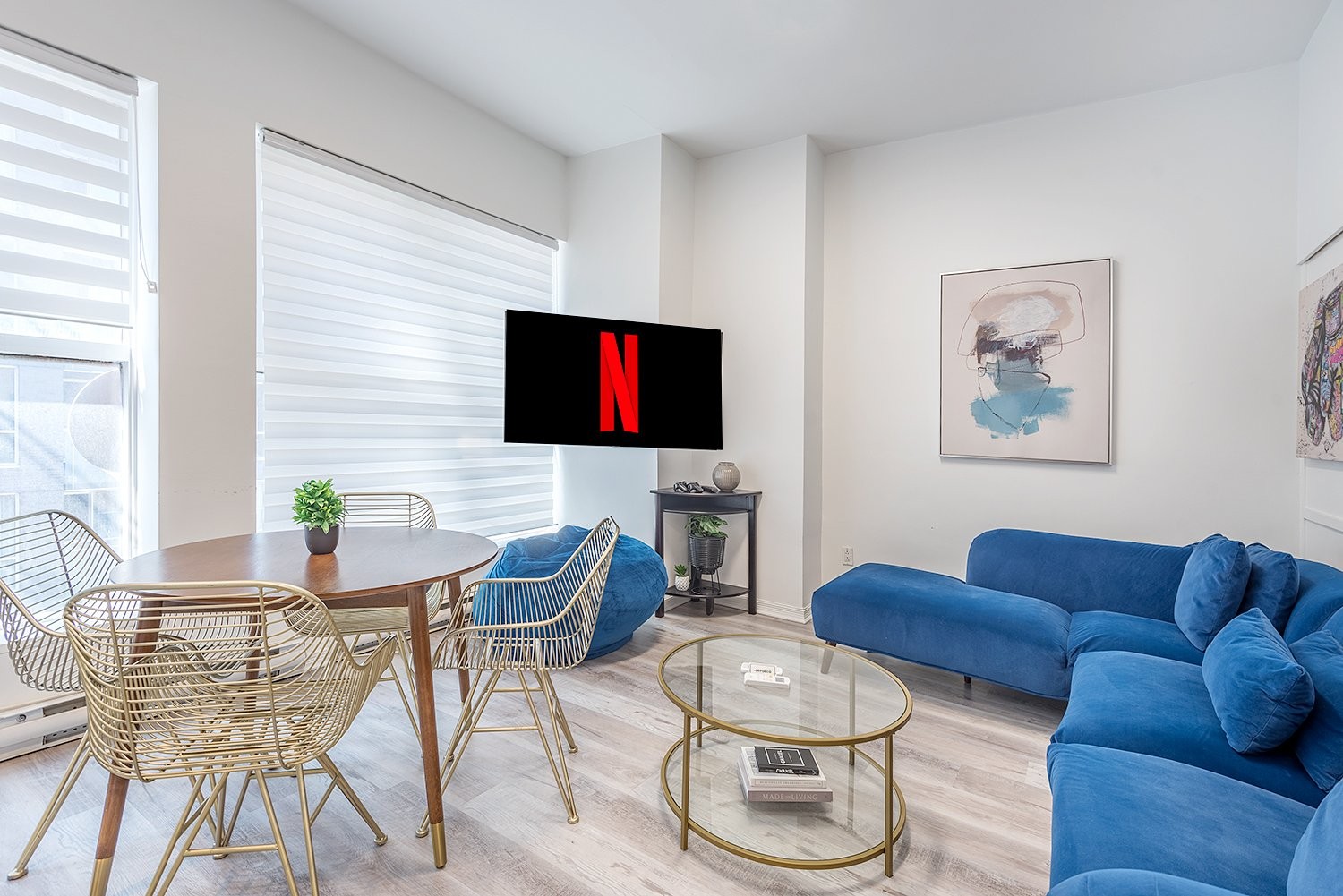 Amazing fully furnished 3-bedroom luxury condo located in the heart of downtown Montreal, in one of the most sought-after areas, directly in front of a beautiful park. Offering over 1,250 sq. ft. of bright, open-concept living space with high-end finishes, modern kitchen, elegant bathrooms, and large windows with stunning views. Enjoy comfort, style, and convenience with proximity to restaurants, shops, universities, and public transport. A rare opportunity for refined urban living!
