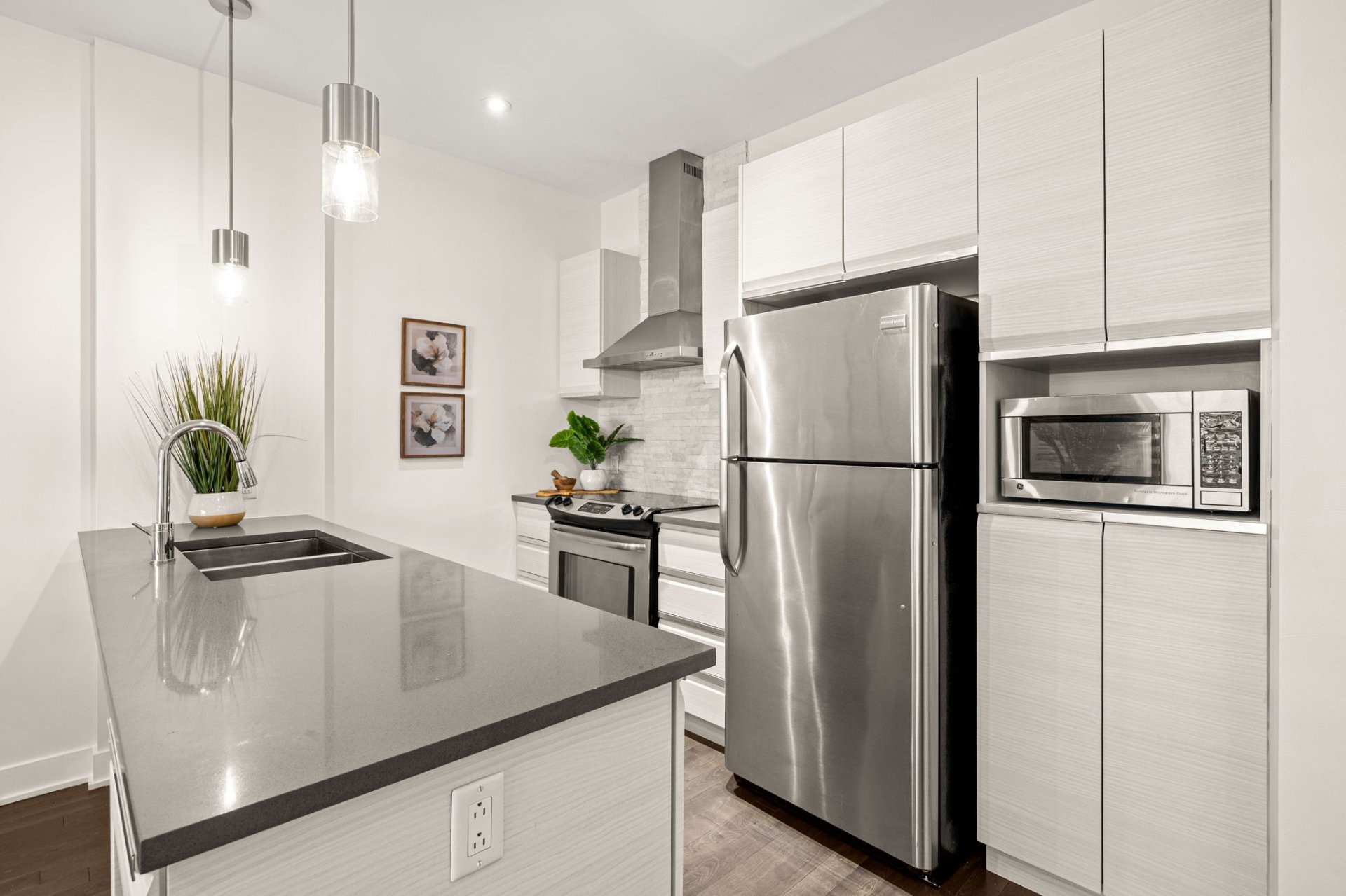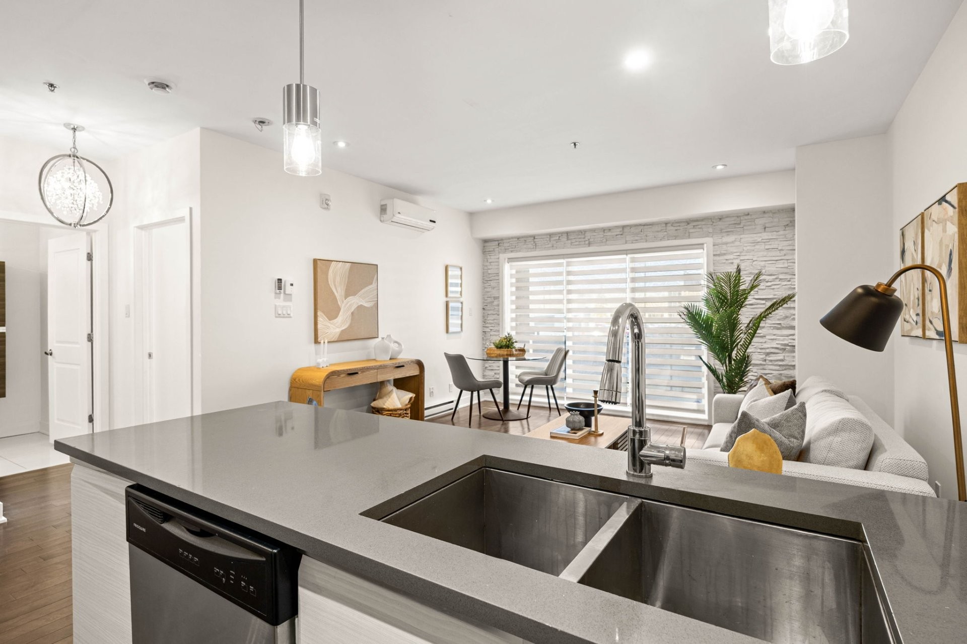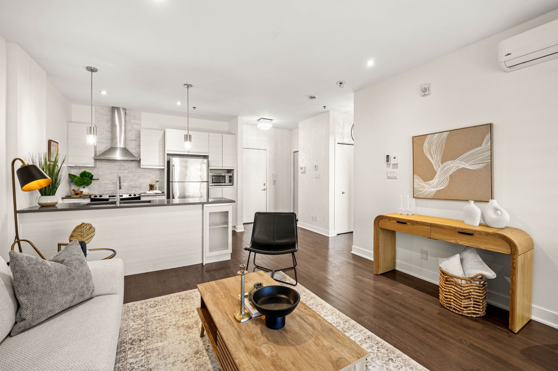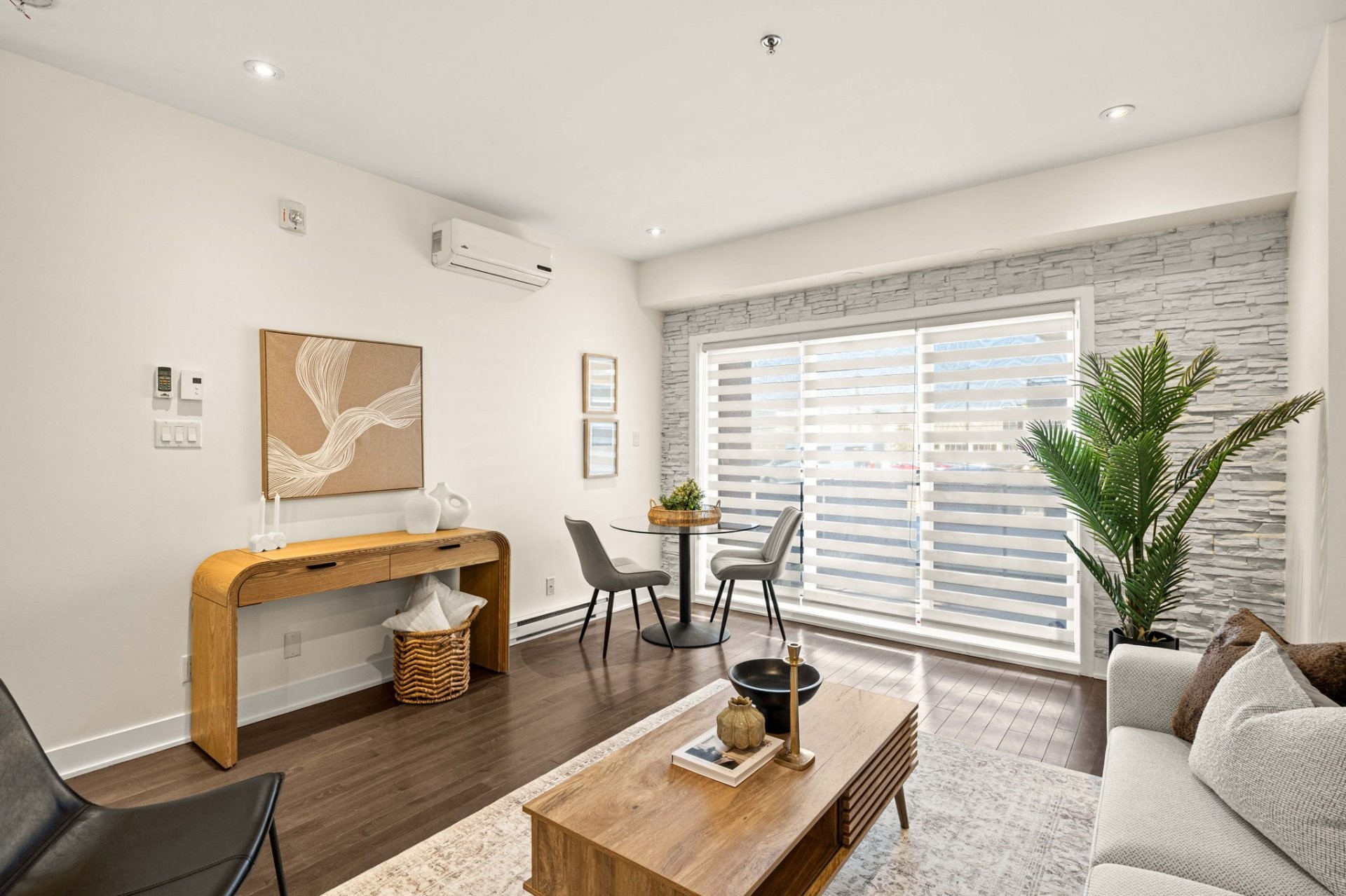 Welcome to 122 Hymus in the heart of Pointe-Claire--a modern and well-maintained building built in 2015, part of the sought-after H1 Harmonie Urbaine project. This charming ground-floor 1-bedroom condo offers approximately 600 sq. ft. of well-designed living space, perfect for first-time buyers, downsizers, or investors. Step inside to discover a bright open-concept layout featuring a comfortable living and dining area seamlessly connected to a functional kitchen. Large windows provide great natural light, while the closed bedroom offers privacy and good storage space.
